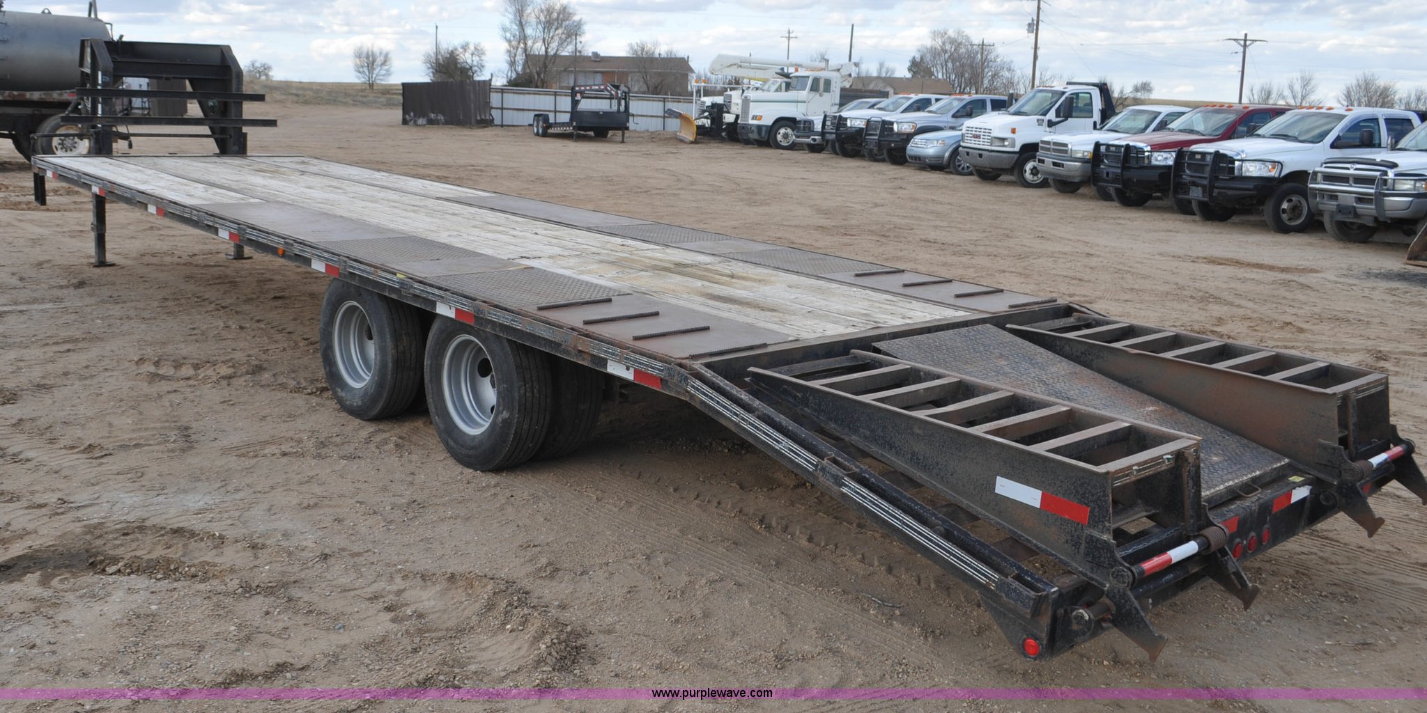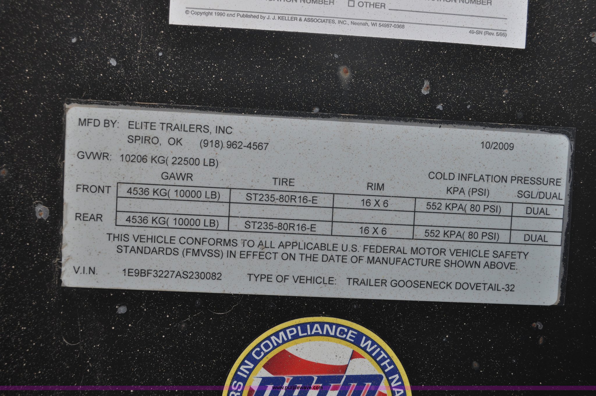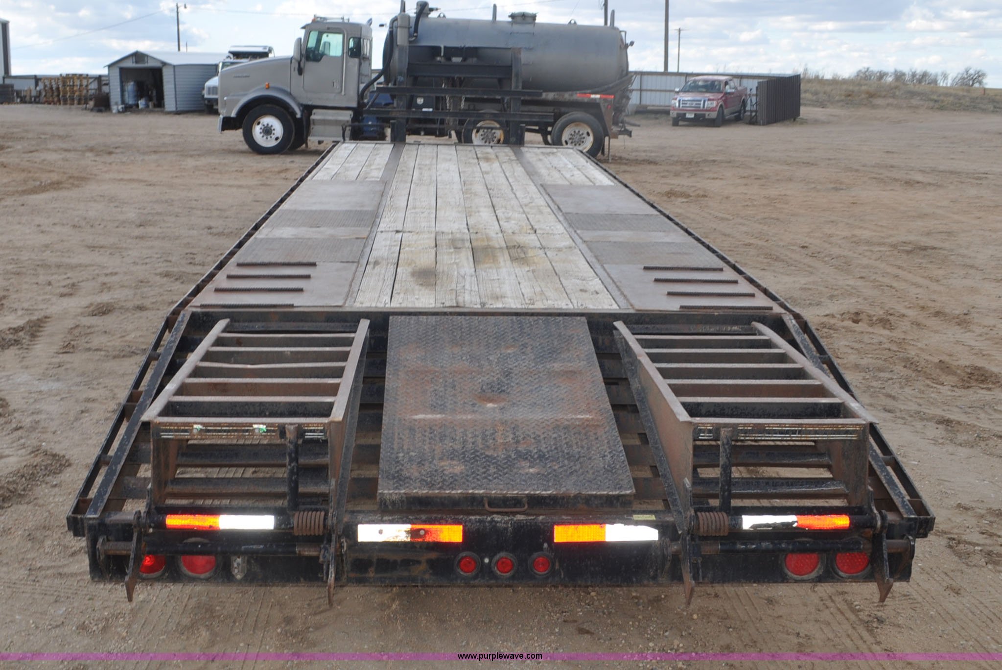 Purple Wave is selling a used Enclosed Cargo Trailer in Colorado. This item is a 2010 Elite GN equipment trailer with the following: 27'L x 102"W deck, 5'L beaver tail, 5'L x 23"W ramps, Dual jack stands, Toolbox, Flex control, Electric brakes, 235/85R16 tires, GVWR 22,500 lbs, FAWR 10,000 lbs, RAWR 10,000 lbs, Straps, boomers, and chains will be removed prior to auction