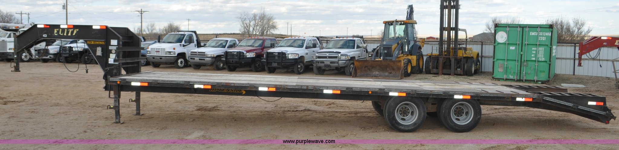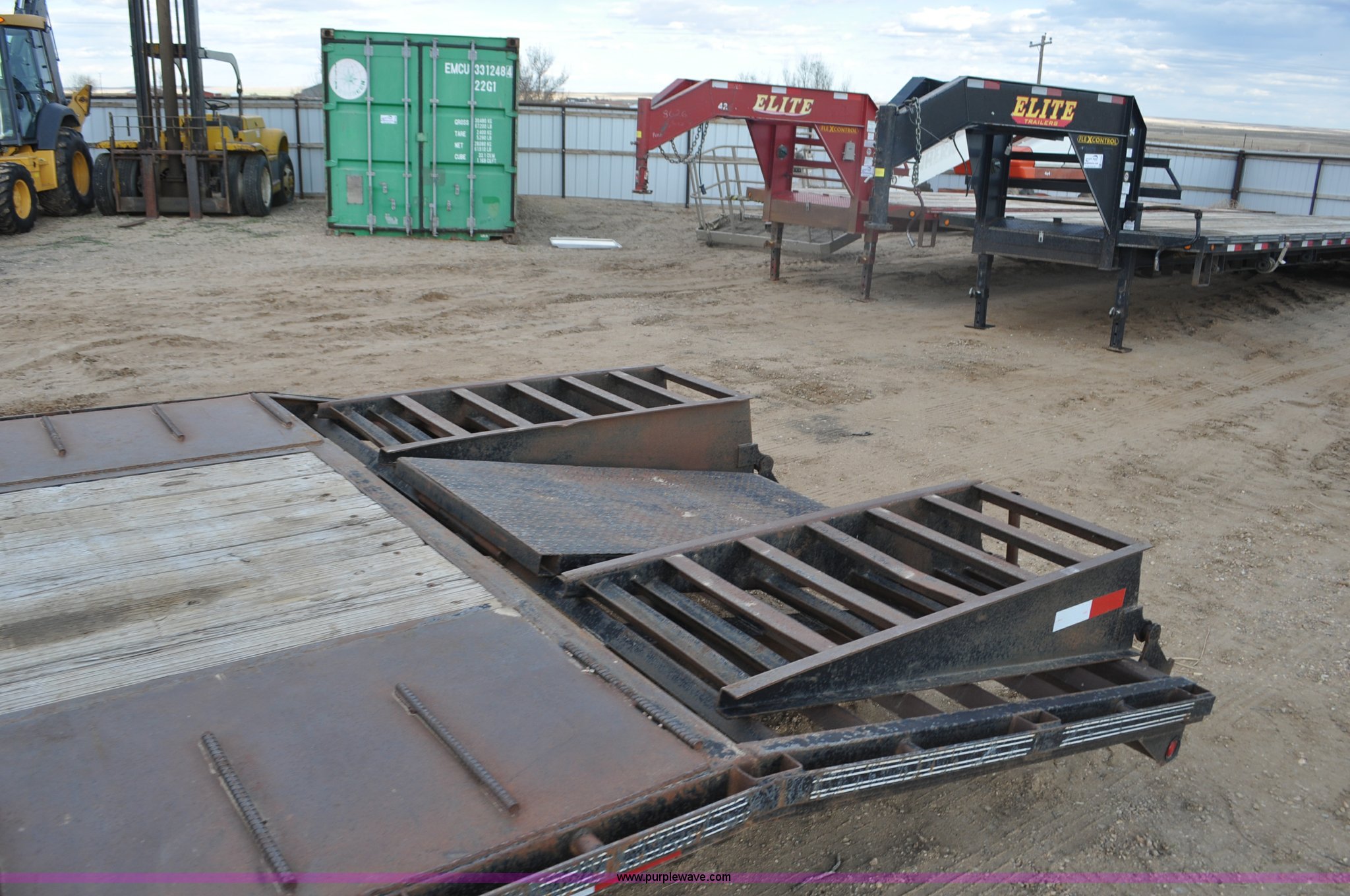 2010 Elite GN equipment trailer. 27'L x 102"W deck, 5'L beaver tail, 5'L x 23"W ramps, Dual jack stands, Toolbox, Flex control, Electric brakes , 235/85R16 tires, GVWR 22,500 lbs, FAWR 10,000 lbs, RAWR 10,000 lbs, Straps, boomers, and chains will be removed prior to auction. 1E9BF3227AS230082. 25696 County Road 40. Kersey, CO 80644