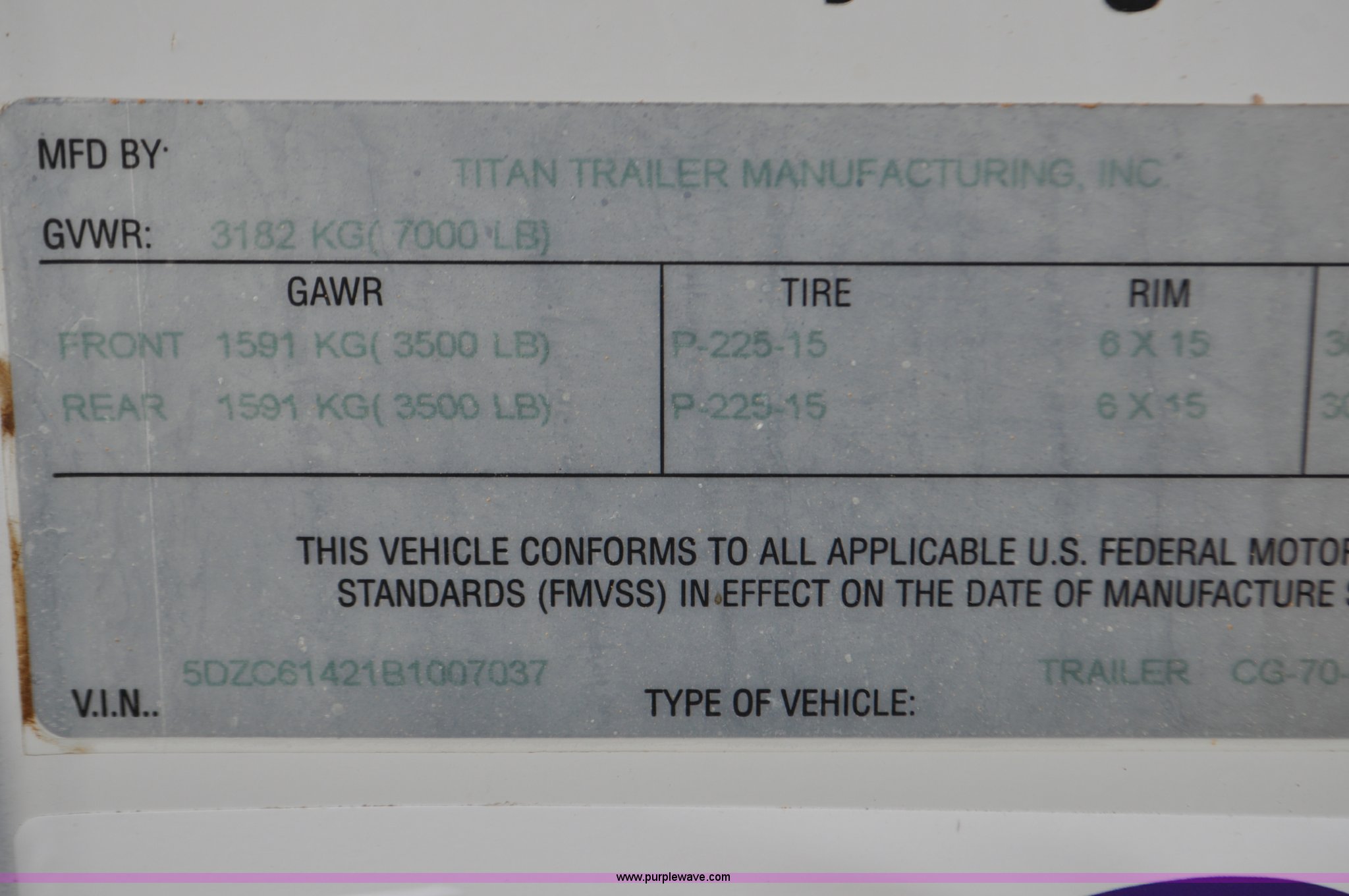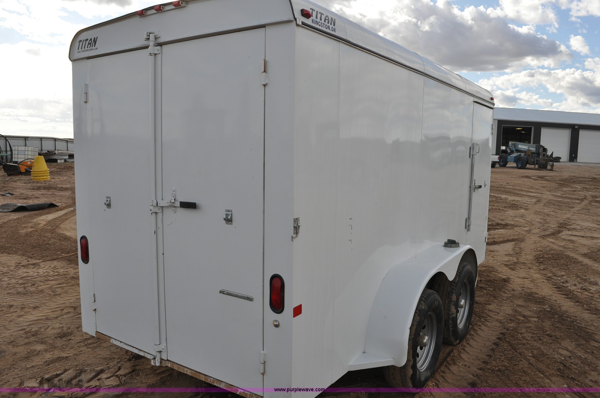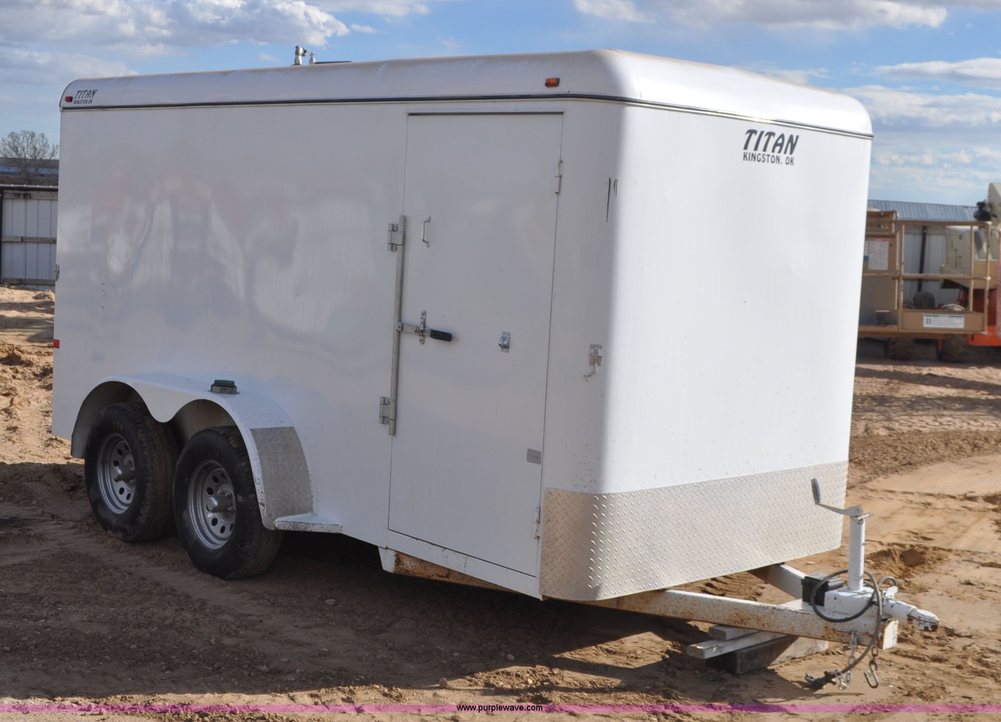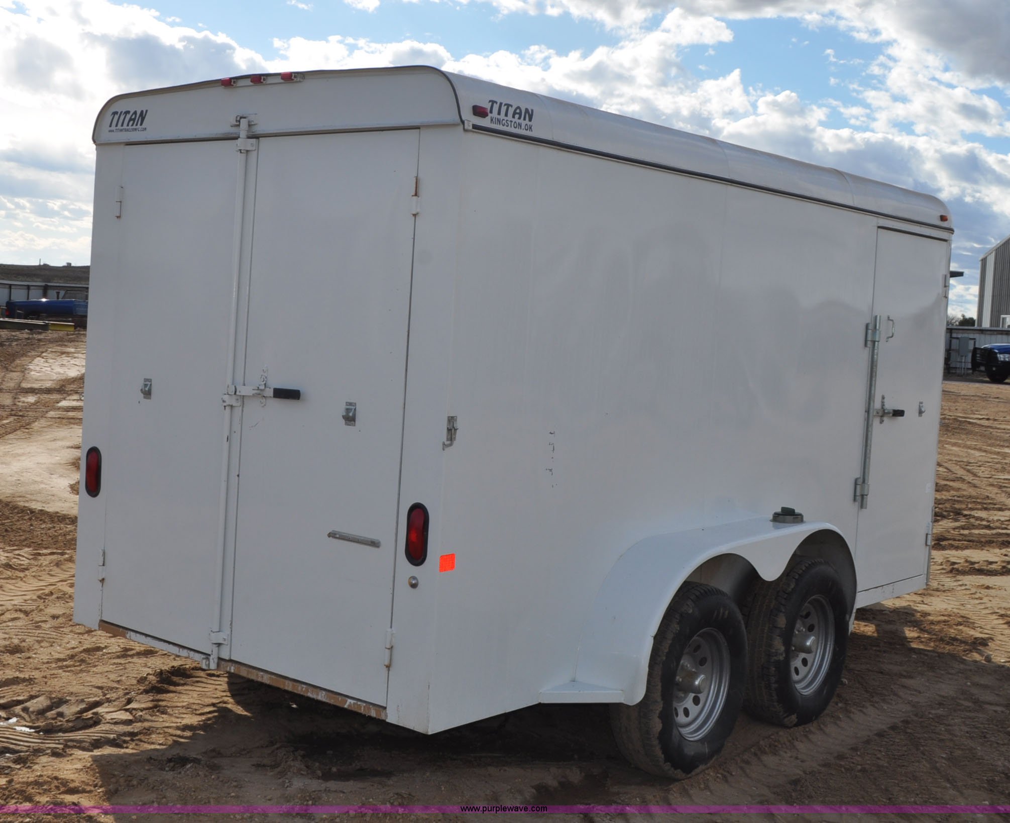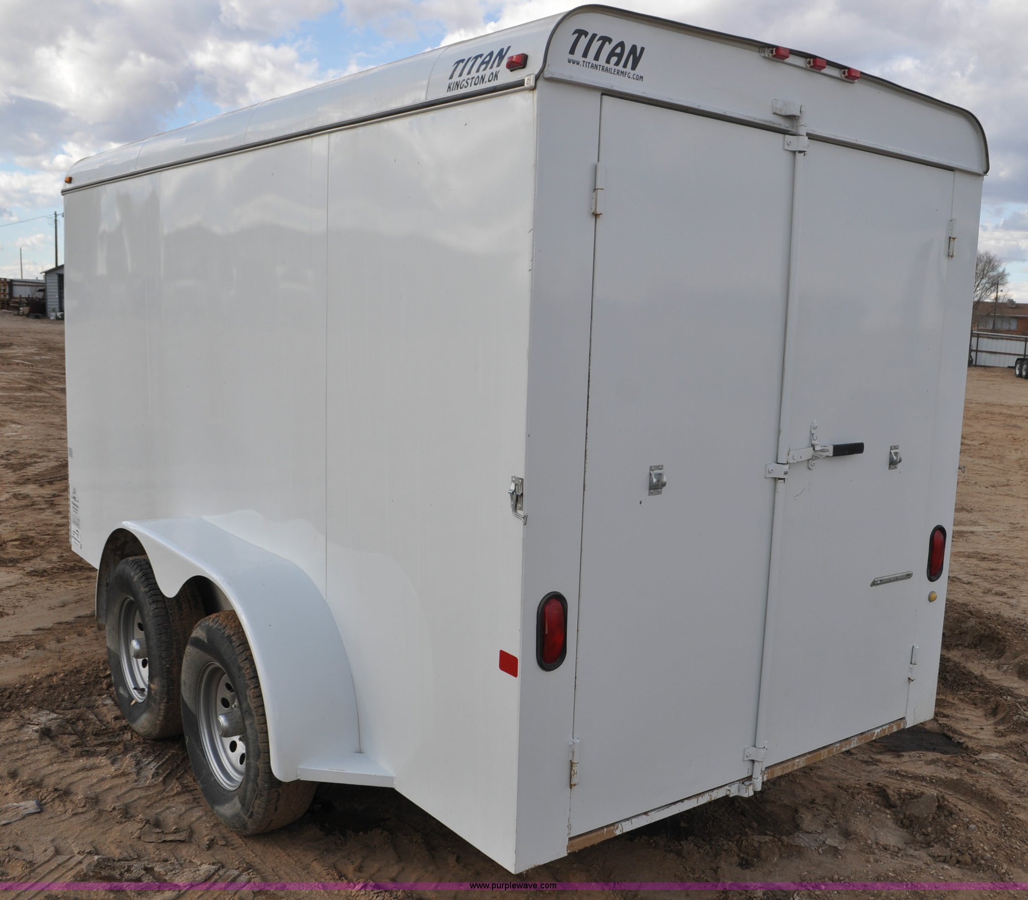 Purple Wave is selling a used Enclosed Cargo Trailer in Colorado. This item is a 2011 Titan enclosed trailer with the following: 14'L x 6'W, Side and rear doors, Toolbox and stands inside, 2" ball hitch, Torsion suspension, 225/75R15 tires, GVWR 7,000 lbs, FAWR 3,500 lbs, RAWR 3,500 lbs