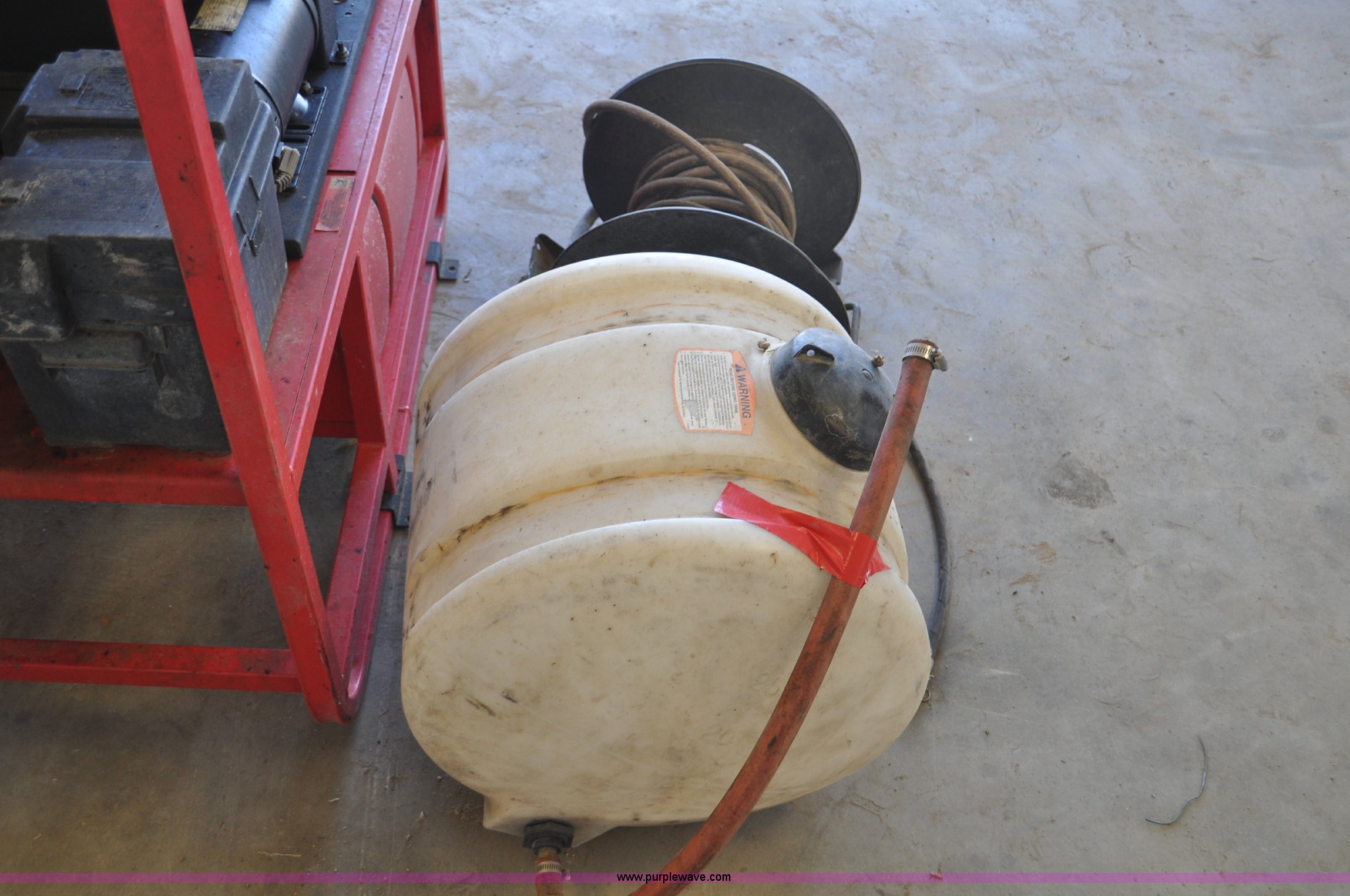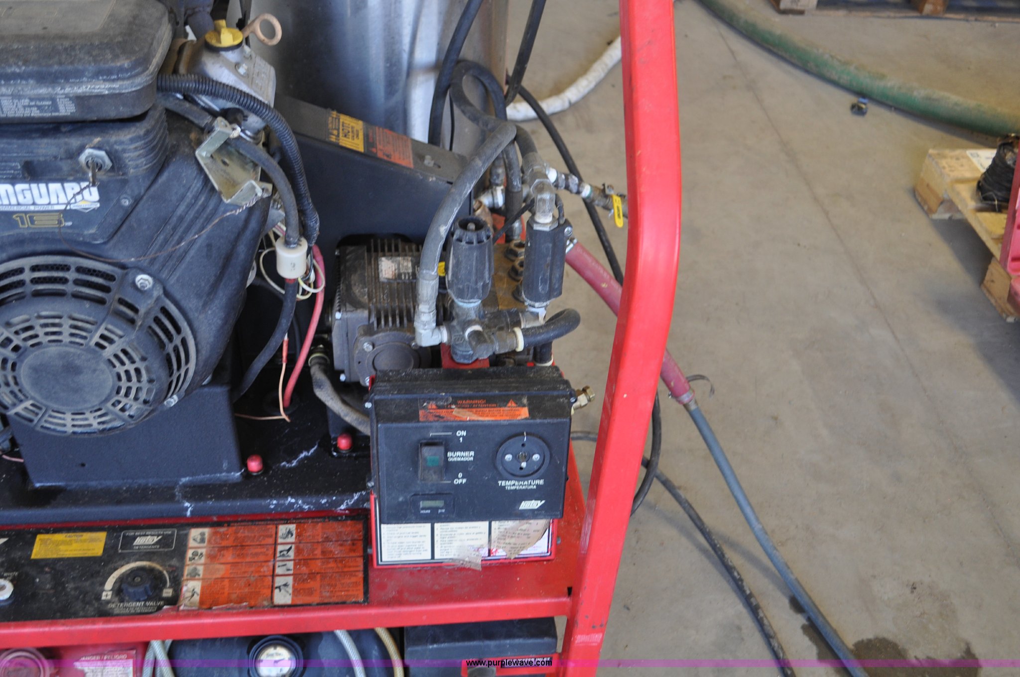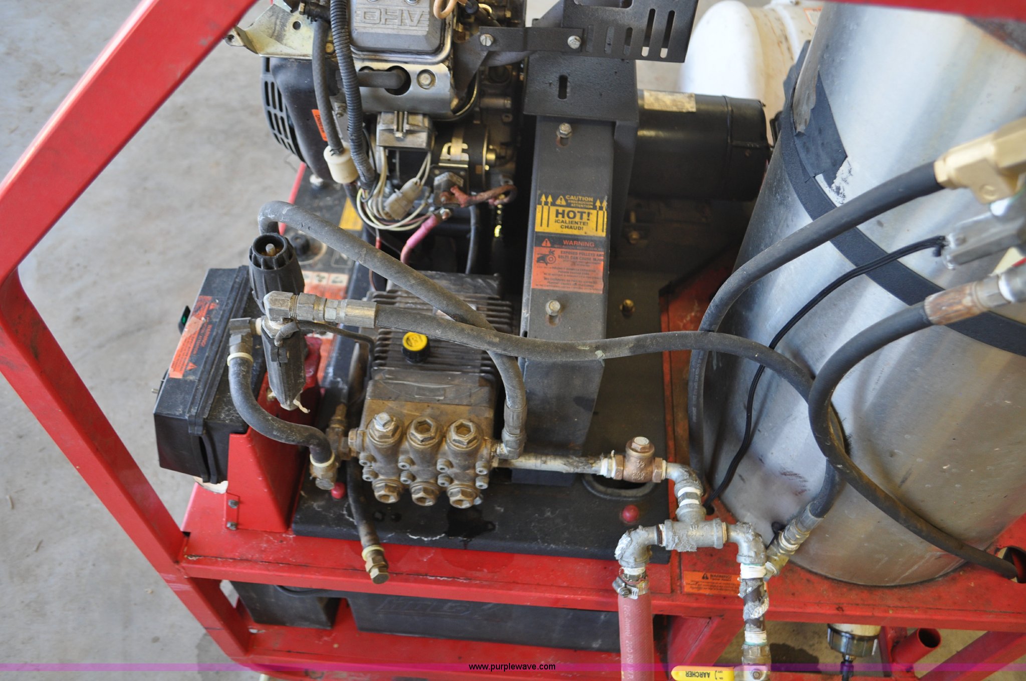 Purple Wave is selling a used Pressure Washer in Colorado. This item is a Hotsy pressure washer with the following: Briggs & Stratton Vanguard V-twin gas engine, 16 HP, 110V generator, Diesel fired burner, Hose reel, 3,000 psi, 4.3 gallon per minute capacity, 398,400 BTU, 30 gallon poly winterization tank, 1,000 gallon poly water tank, Wands, Serial 11105350-162200