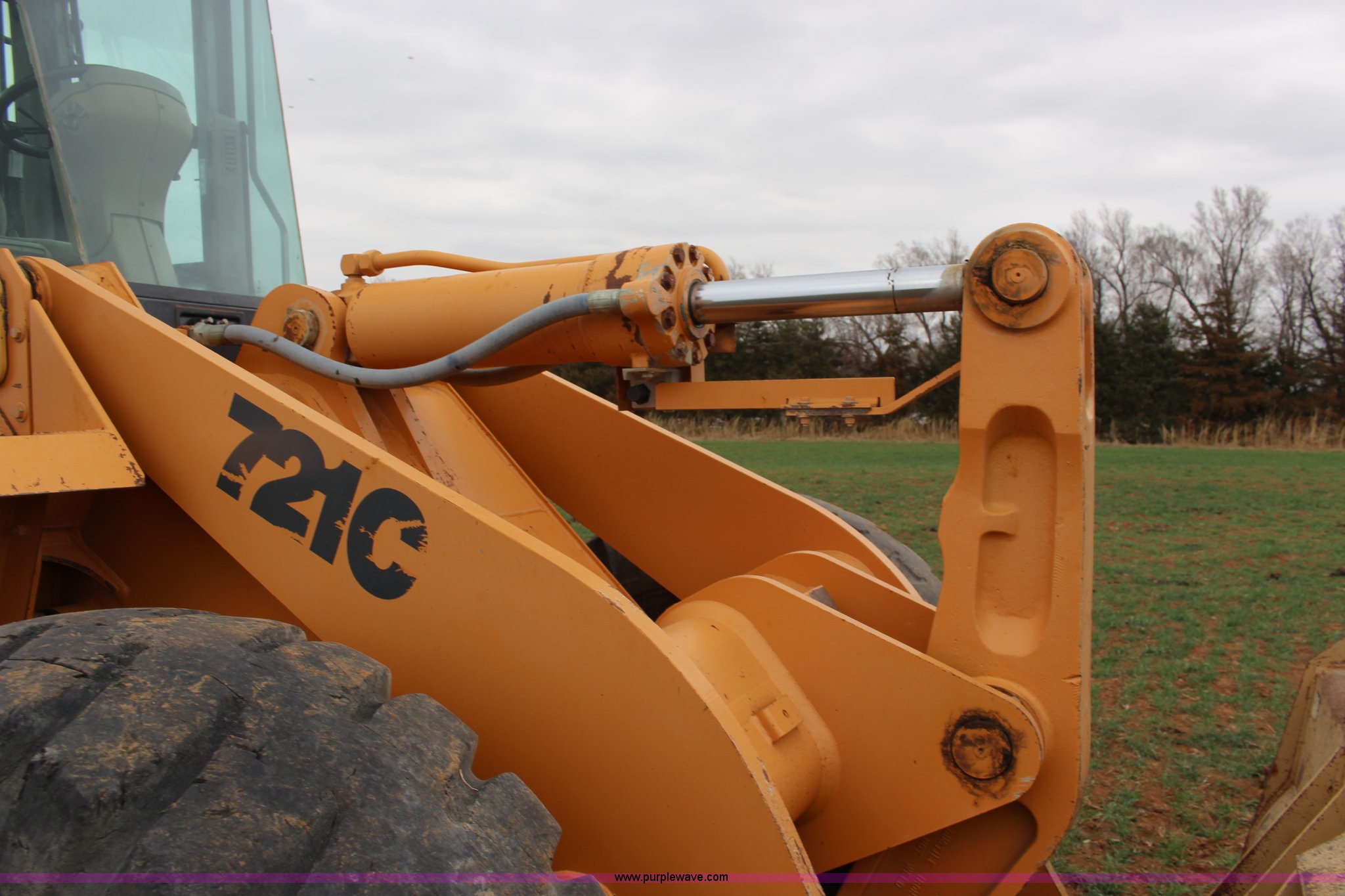 Purple Wave is selling a used Wheel Loader in Kansas. This item is a 2001 Case 721C wheel loader with the following: 892 hours on meter, Six cylinder diesel engine, 165 HP, 4F-3R gears, Enclosed cab, AC and heat, Suspension seat, Joystick loader controls, 101"W bucket, 3.25 cubic yard capacity, 20.5-25 tires, 29,630 lbs. base operating weight, Seal kit in hydraulic pump replaced, Hour meter replaced at 5,825 hours, Recently rebuilt left rear planetary, Serial JEE0125161