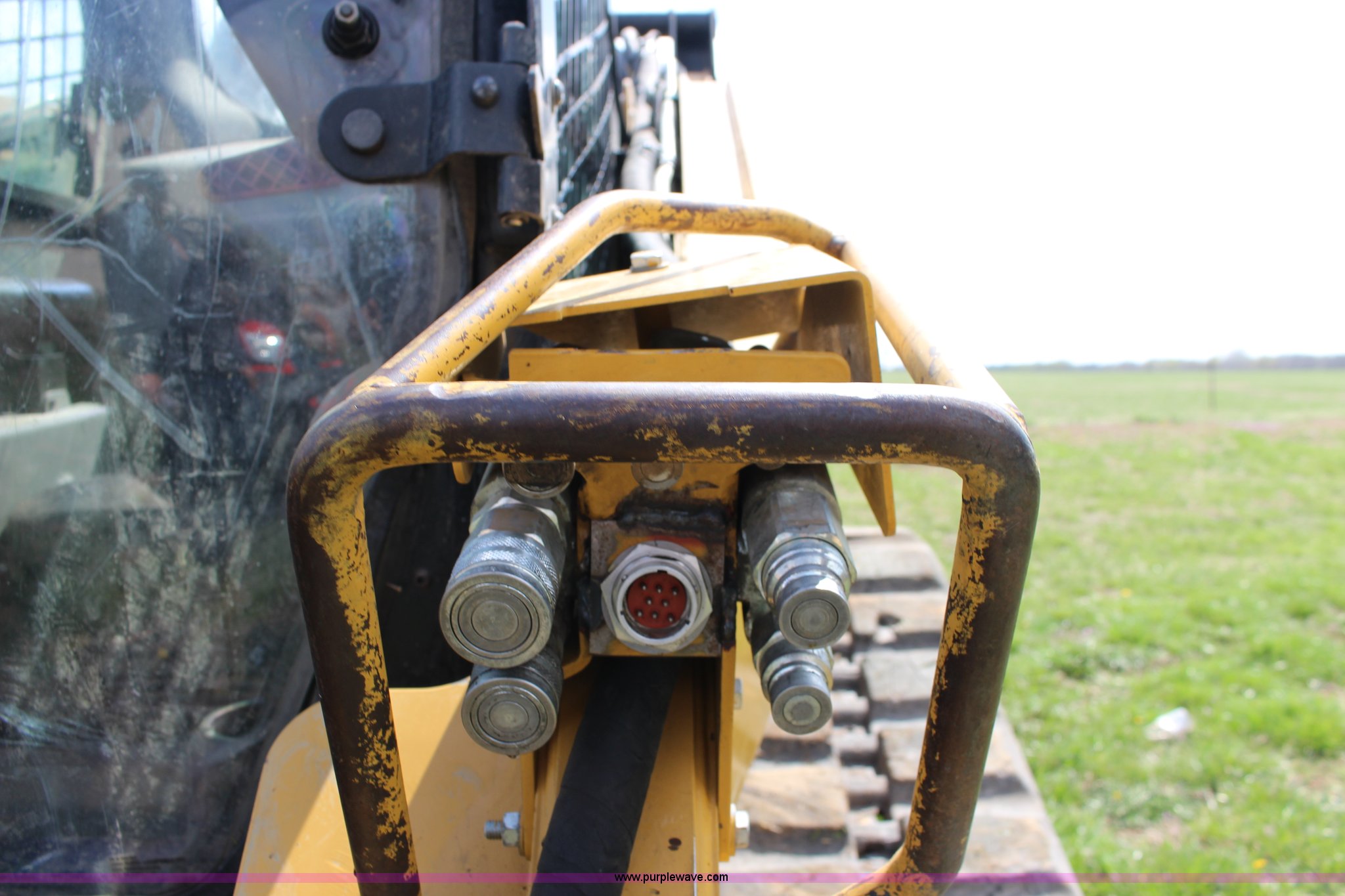 Purple Wave is selling a used Tracked Skid Steer Loader in Kansas. This item is a 2012 Caterpillar 289C tracked skid steer with the following: 1,368 hours on meter, Caterpillar C3.4 four cylinder diesel engine, 82 HP, Two speed hydrostatic transmission, Enclosed cab, AC and heat, AM/FM/CD, Air suspension seat, Joystick loader controls, Backup alarm, High Flow XPS hydraulics with AMIX system, Hydraulic quick attach, (2) hydraulic remotes, 25 gallon fuel tank, Duroforce 18"W rubber tracks, 10,365 lbs. base operating weight, Serial CAT0289CKJMP02786