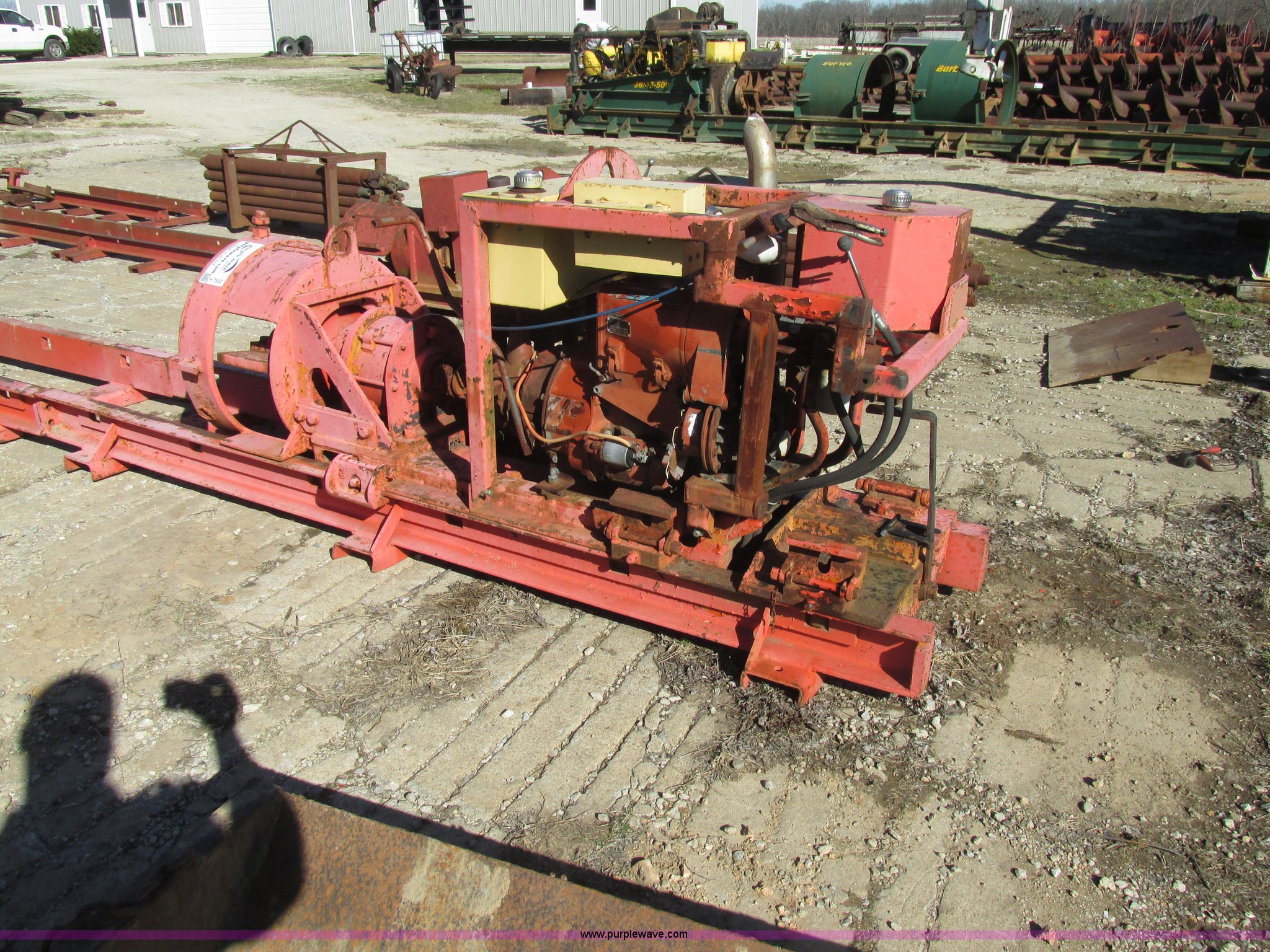 Purple Wave is selling a used Directional Boring Unit in Missouri. This item is a Allied Auto Bore 24 directional boring machine with the following: Duetz two cylinder air cooled diesel engine, Three speed manual transmission, 24" diameter, 2 1/4" hex coupler, 30'L track, Hydraulic ram release, 24" or 6 SS, Lifting eye, Serial 035