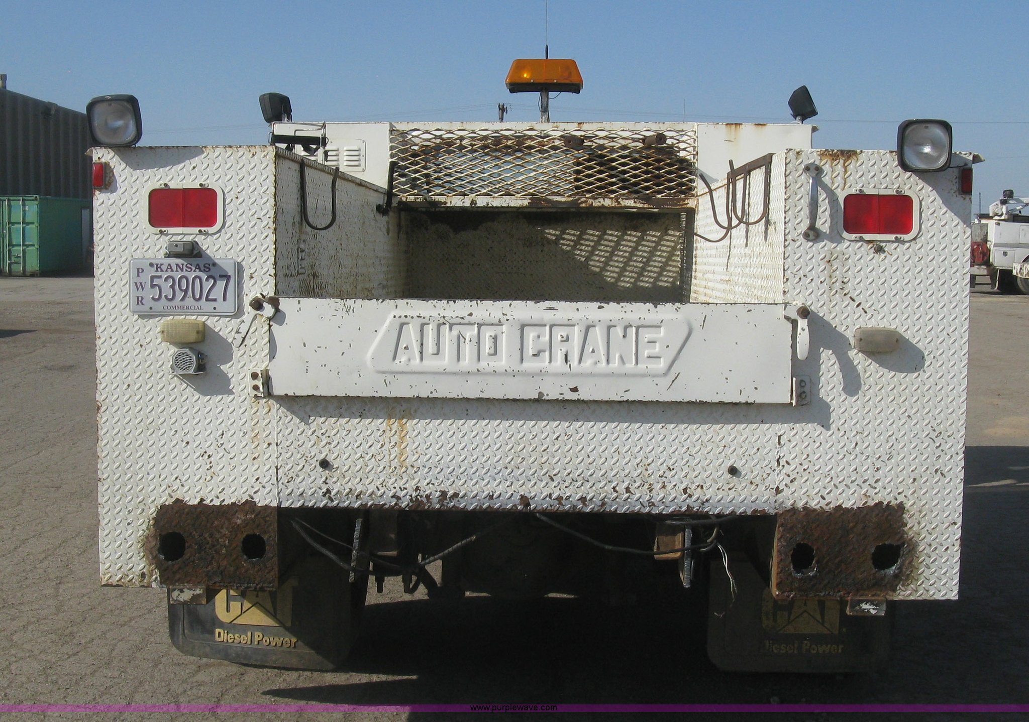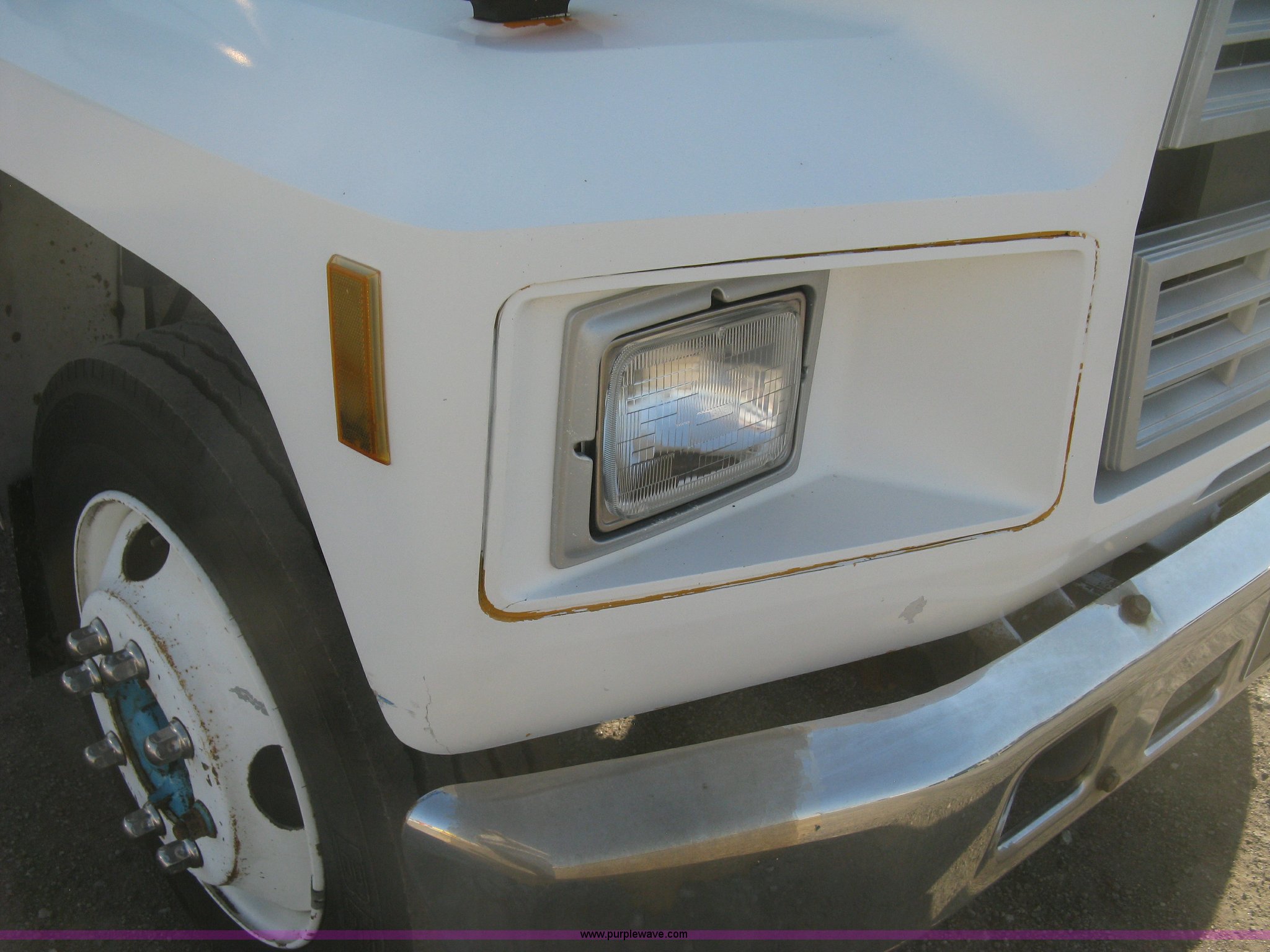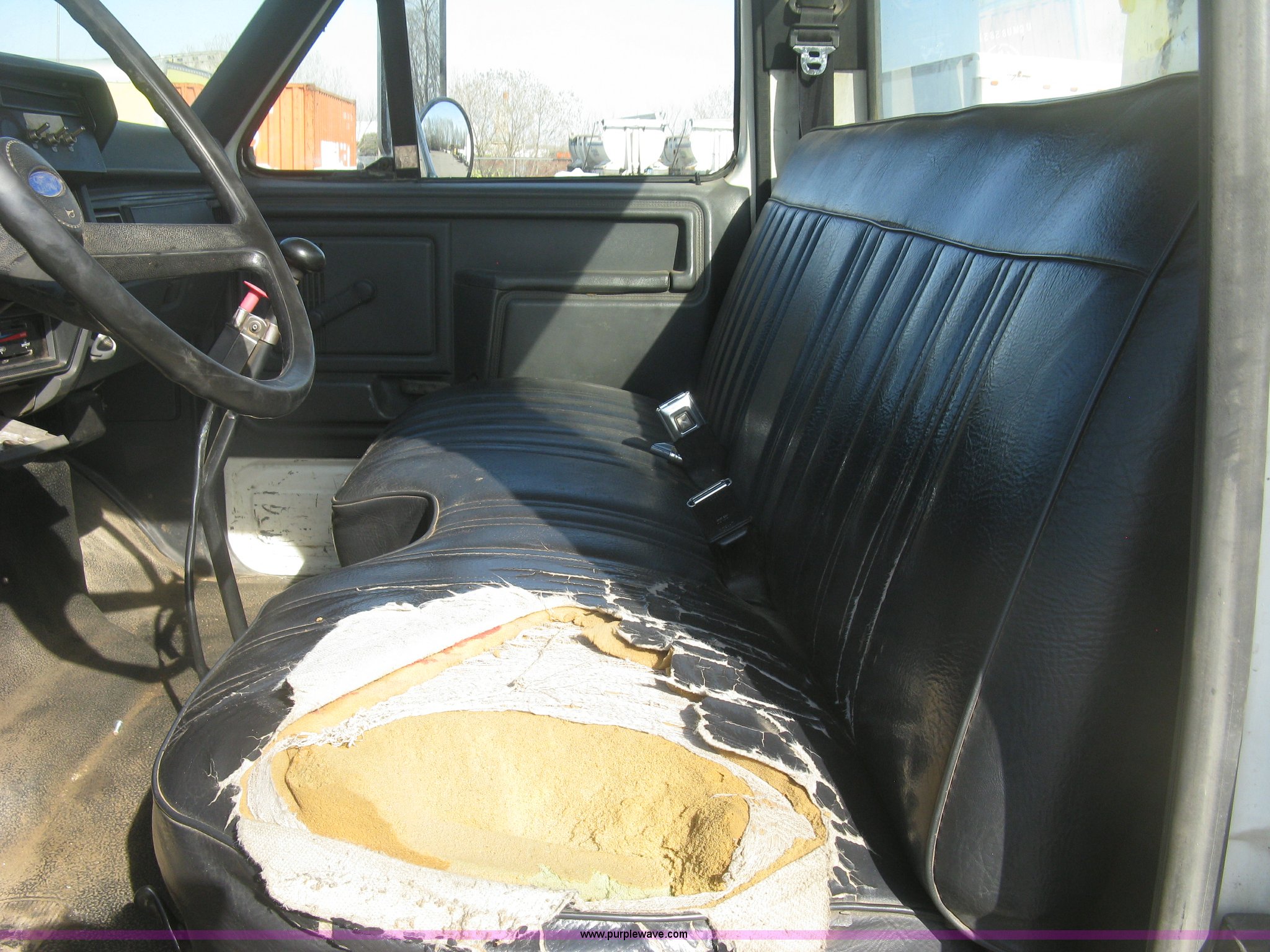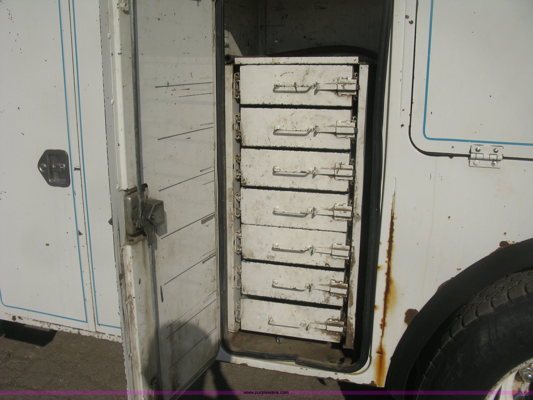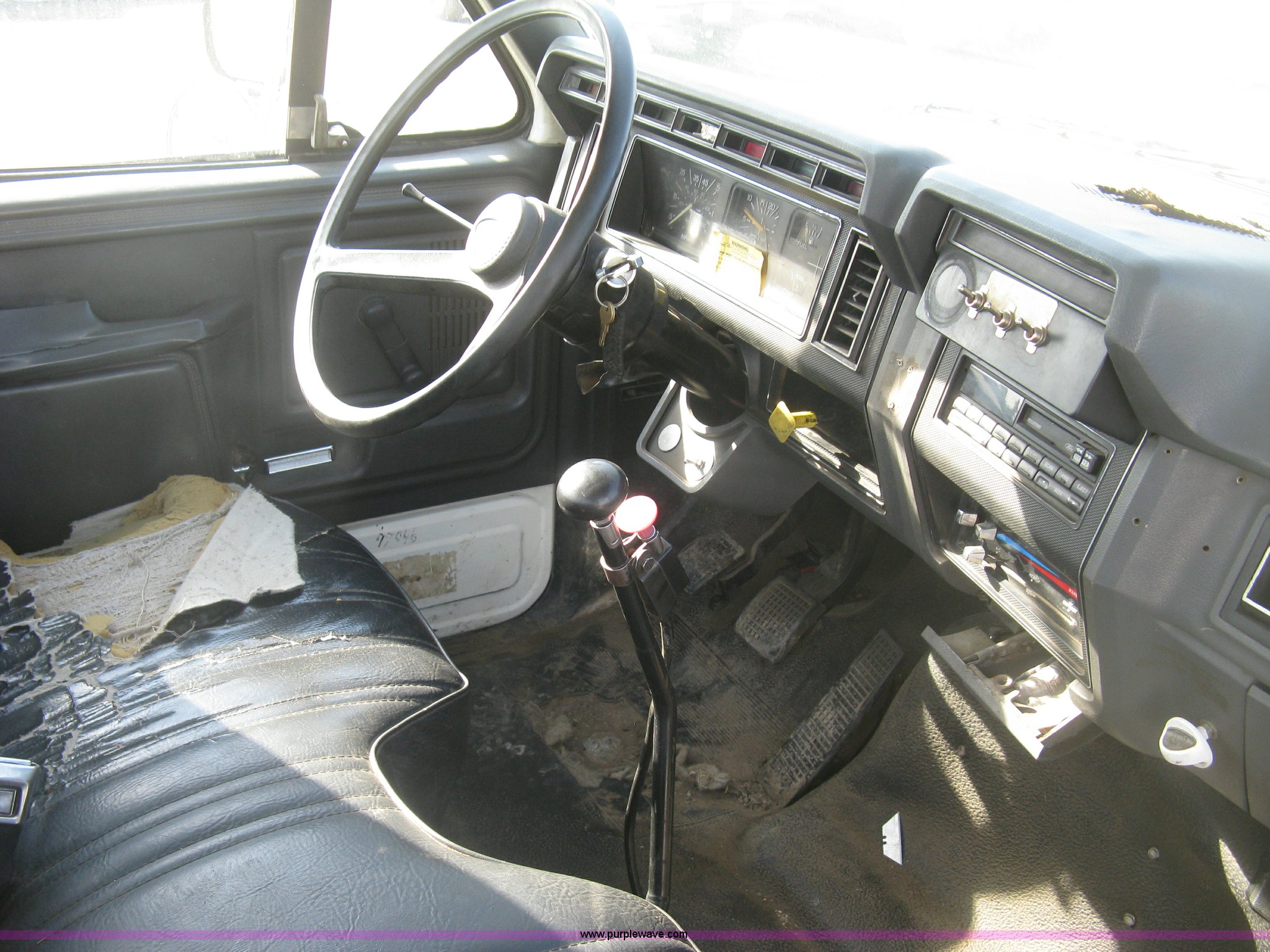Purple Wave is selling a used Service Truck in Kansas. This item is a 1994 Ford F700 service truck with the following: 385,268 miles on odometer, Cummins 5.9L L6 diesel engine, Five speed manual transmission, Two speed rear end, AC and heat, AM/FM/cassette, Manual windows and locks, Vinyl interior, Autocrane service bed, 11'L x 94"W, Diamond plate floor, (8) side compartments, Work lights, 50 gallon fuel tank, 171" wheelbase, 255/70R22.5 front tires, 9R22.5 rear tires, GVWR 24,200 lbs, Windshield chipped, Unit# LTT10