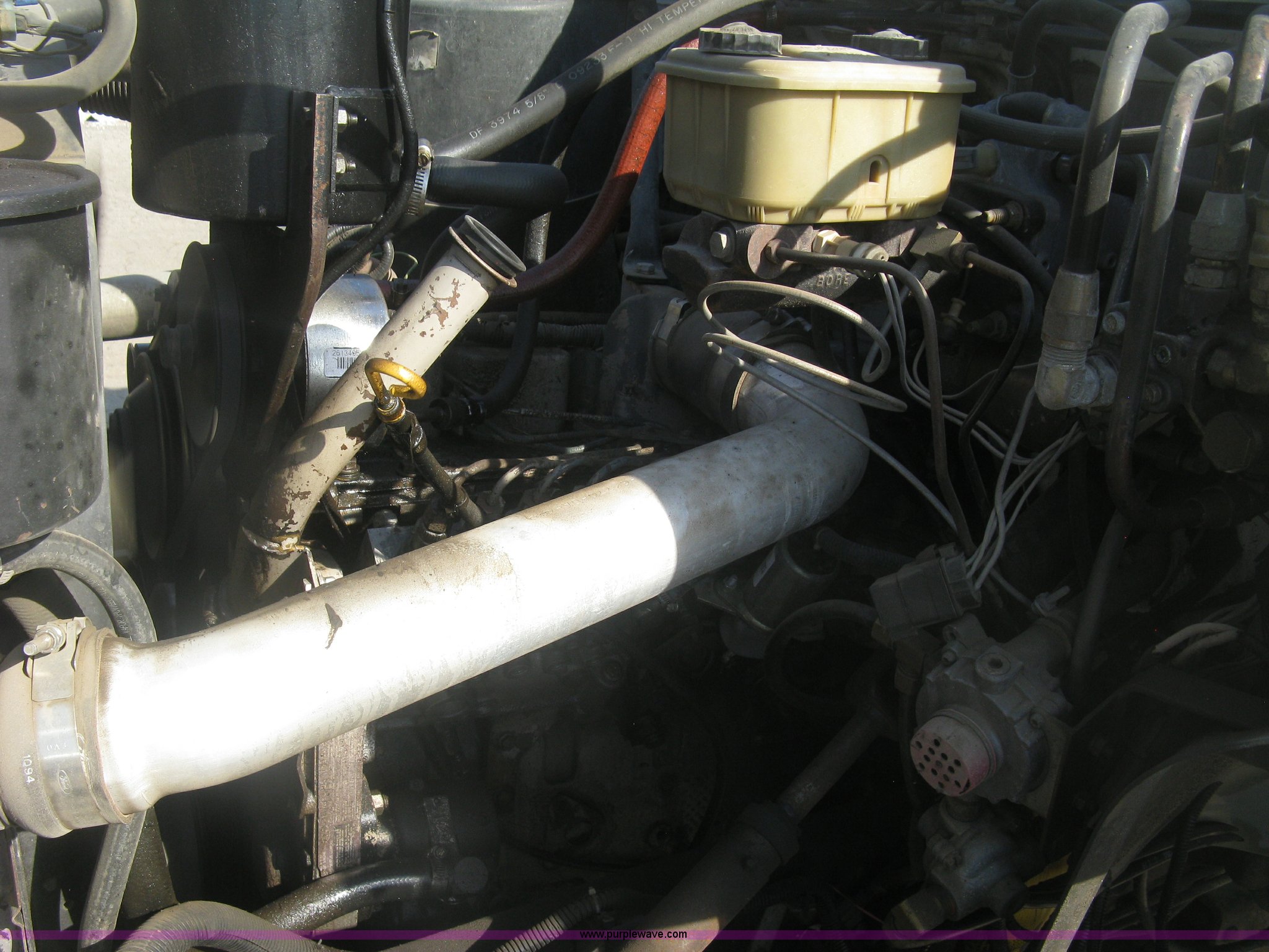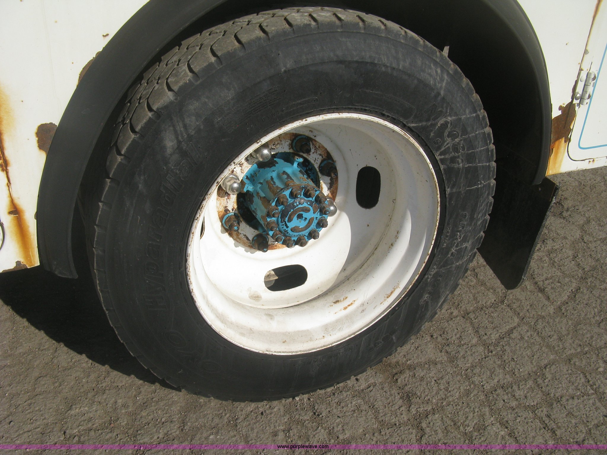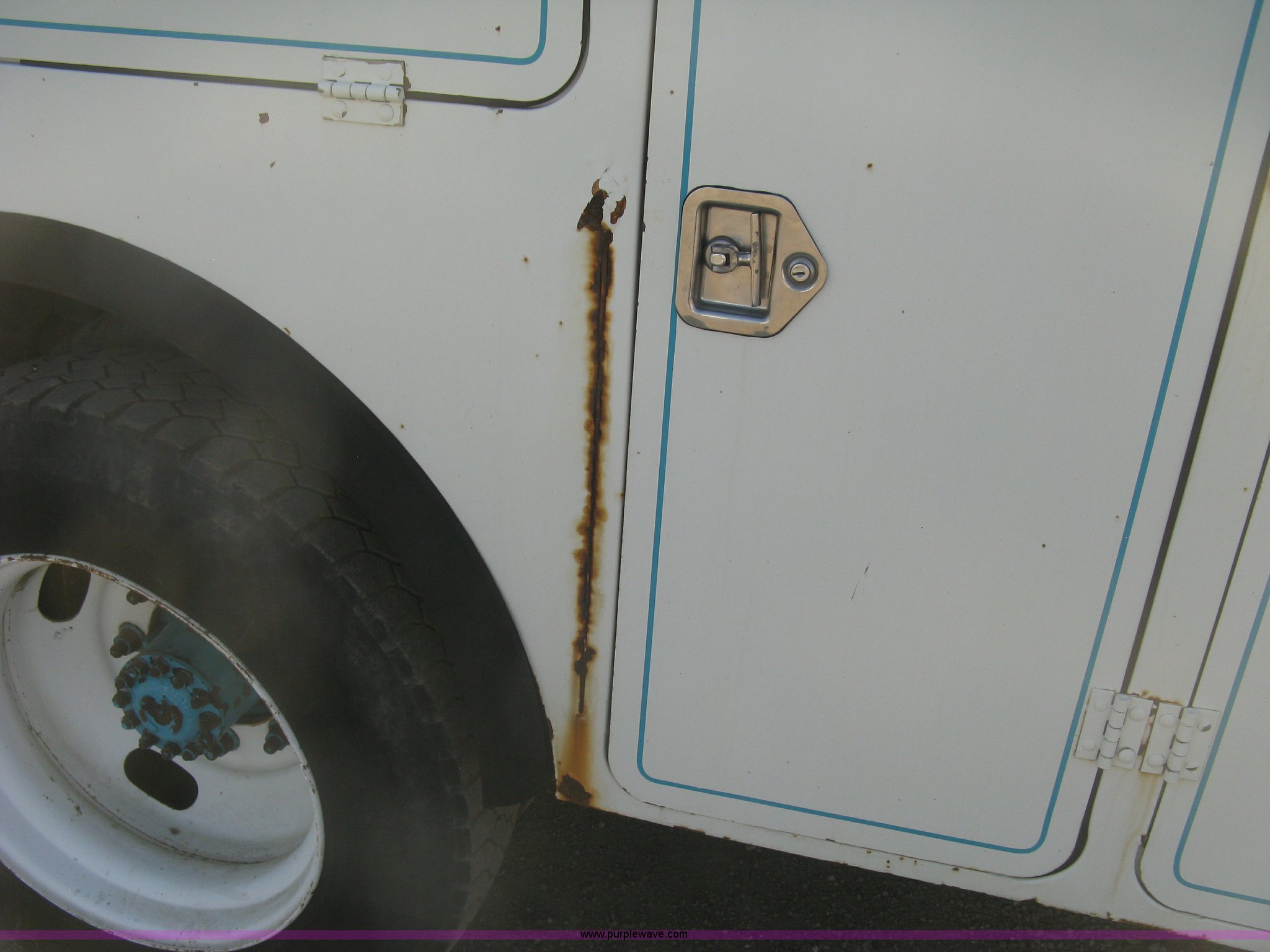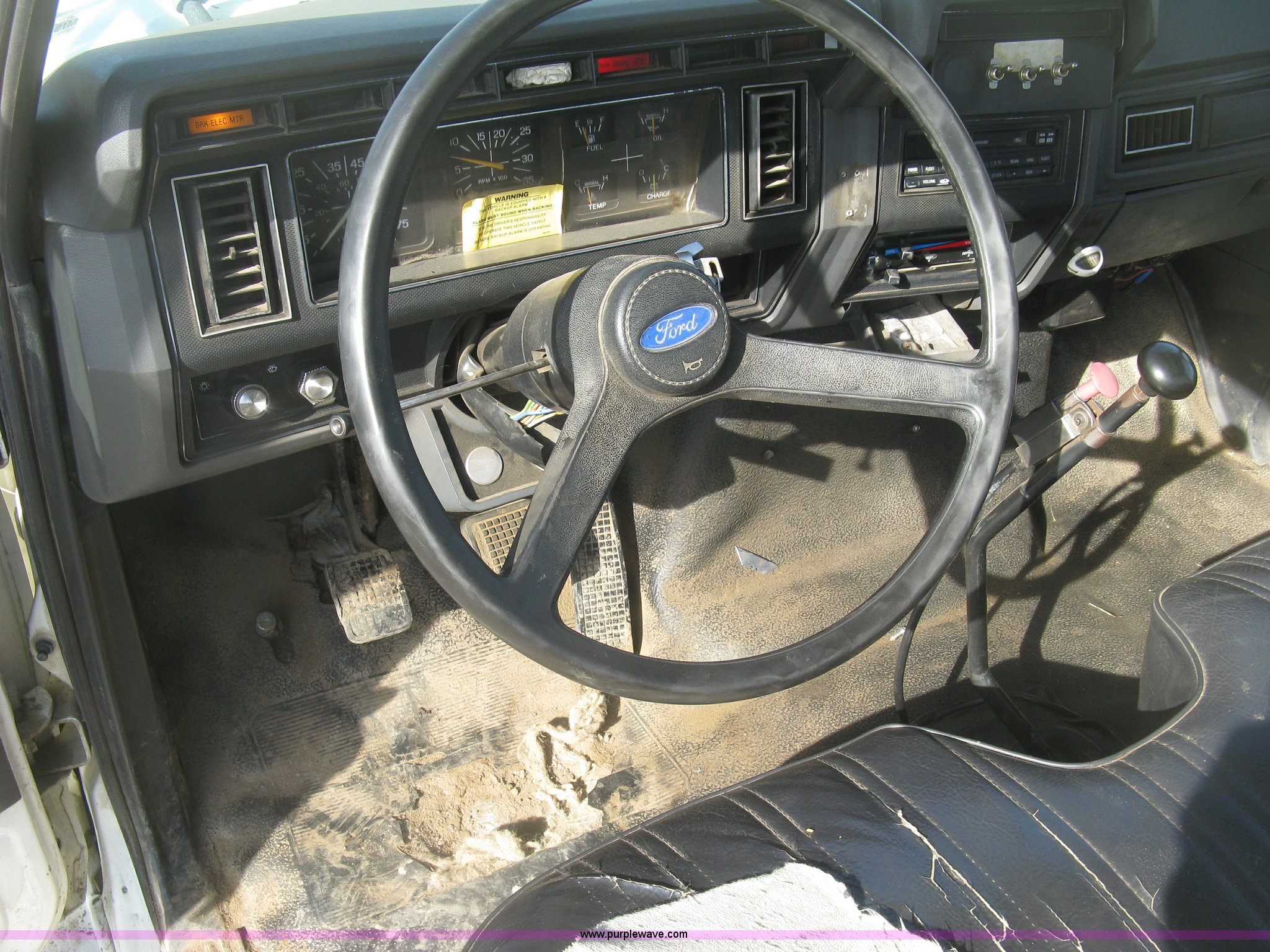 Purple Wave is selling a used Service Truck in Kansas. This item is a 1994 Ford F700 service truck with the following: 385,268 miles on odometer, Cummins 5.9L L6 diesel engine, Five speed manual transmission, Two speed rear end, AC and heat, AM/FM/cassette, Manual windows and locks, Vinyl interior, Autocrane service bed, 11'L x 94"W, Diamond plate floor, (8) side compartments, Work lights, 50 gallon fuel tank, 171" wheelbase, 255/70R22.5 front tires, 9R22.5 rear tires, GVWR 24,200 lbs, Windshield chipped, Unit# LTT10