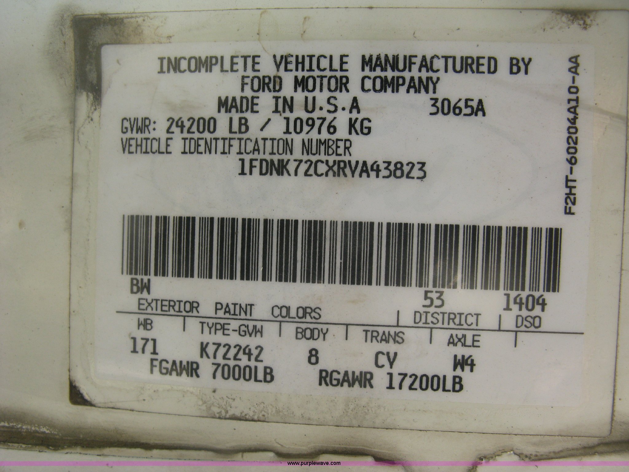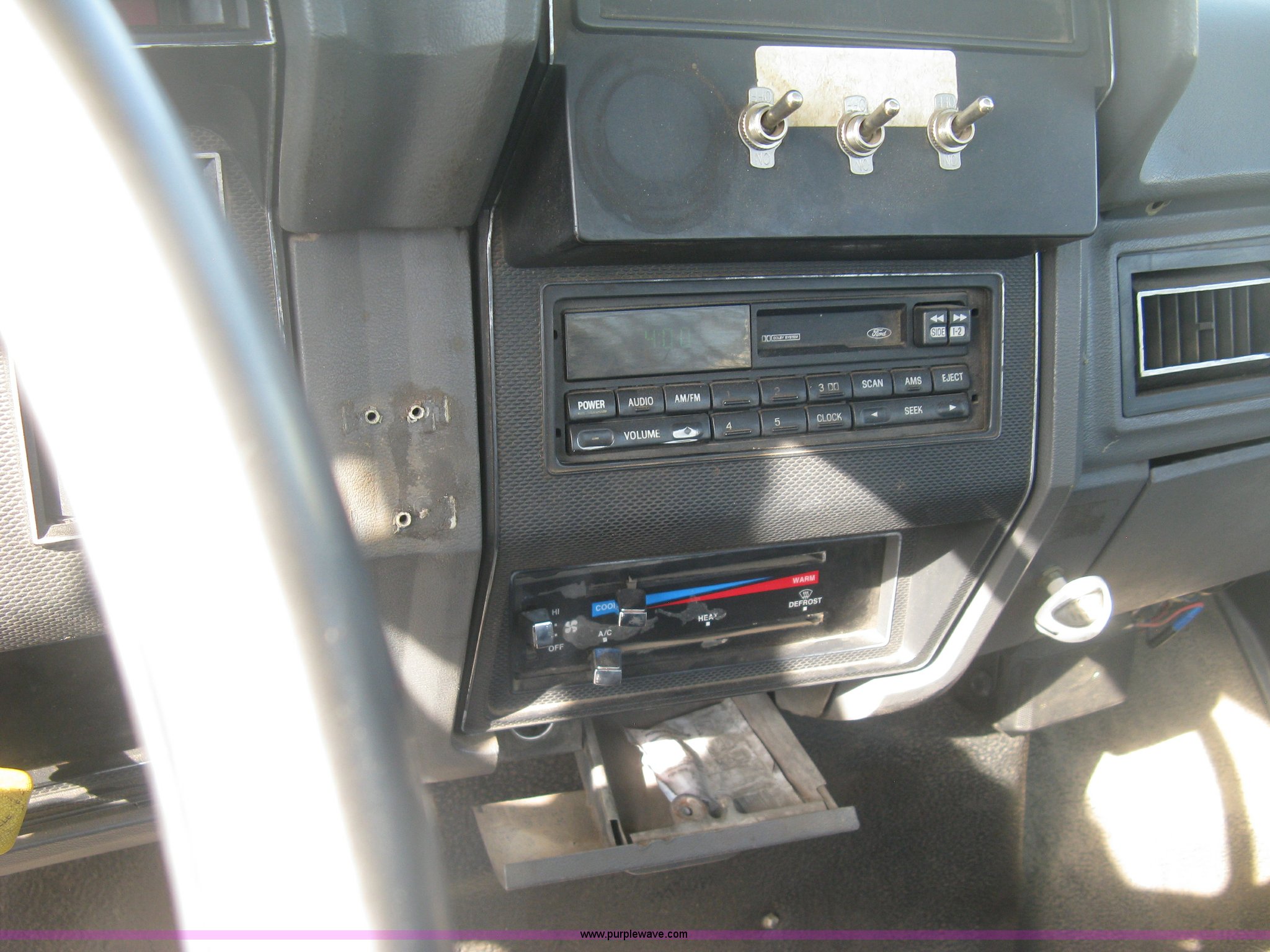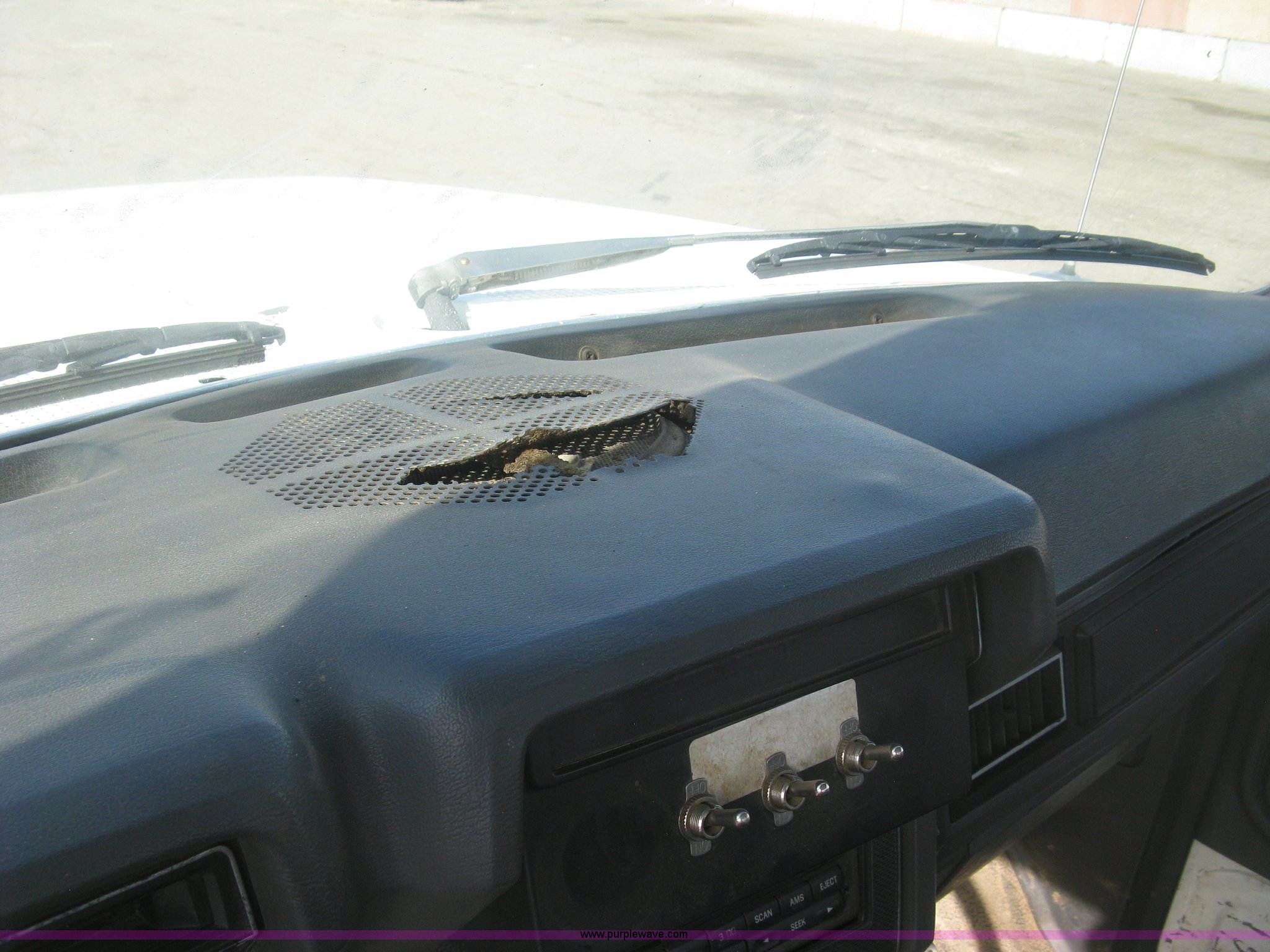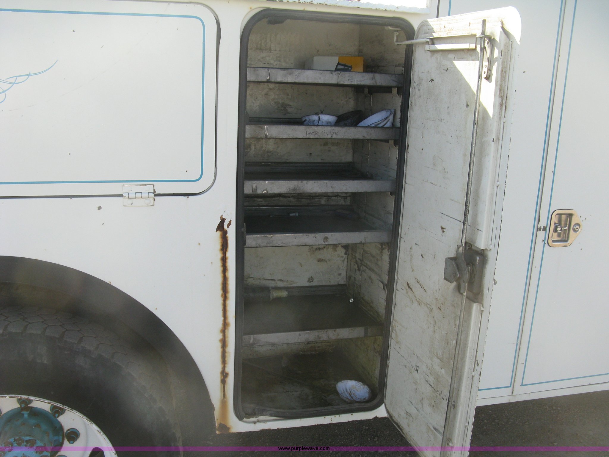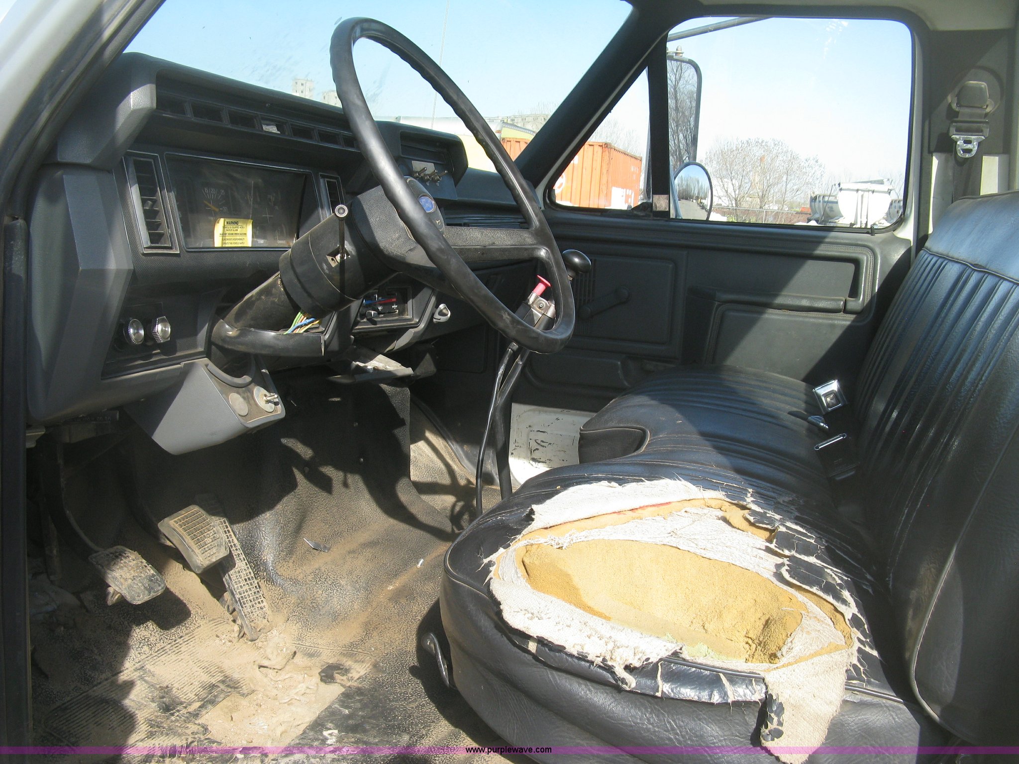 Purple Wave is selling a used Service Truck in Kansas. This item is a 1994 Ford F700 service truck with the following: 385,268 miles on odometer, Cummins 5.9L L6 diesel engine, Five speed manual transmission, Two speed rear end, AC and heat, AM/FM/cassette, Manual windows and locks, Vinyl interior, Autocrane service bed, 11'L x 94"W, Diamond plate floor, (8) side compartments, Work lights, 50 gallon fuel tank, 171" wheelbase, 255/70R22.5 front tires, 9R22.5 rear tires, GVWR 24,200 lbs, Windshield chipped, Unit# LTT10