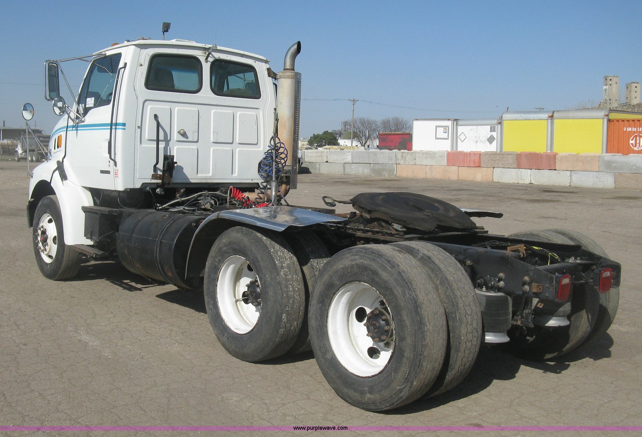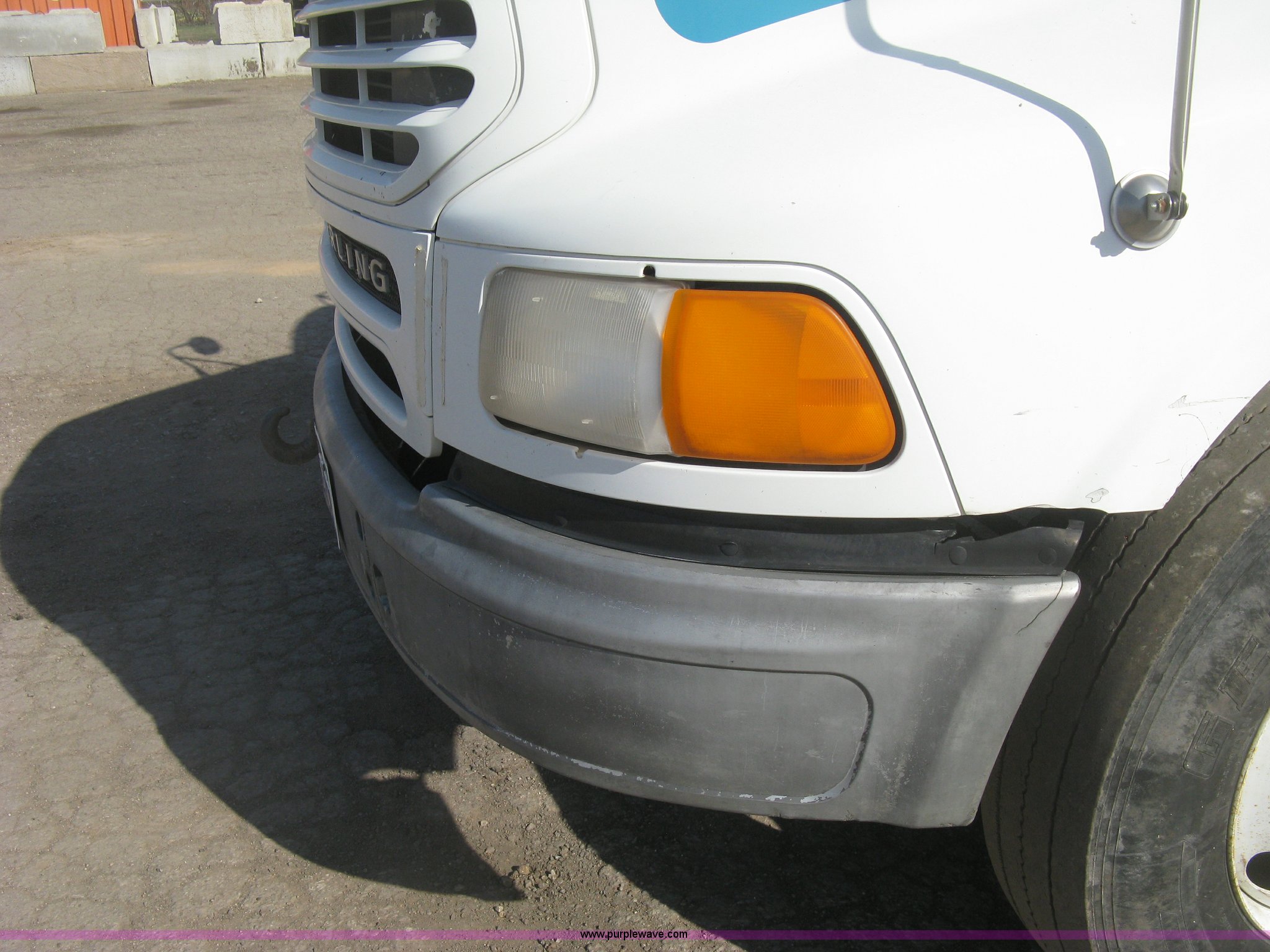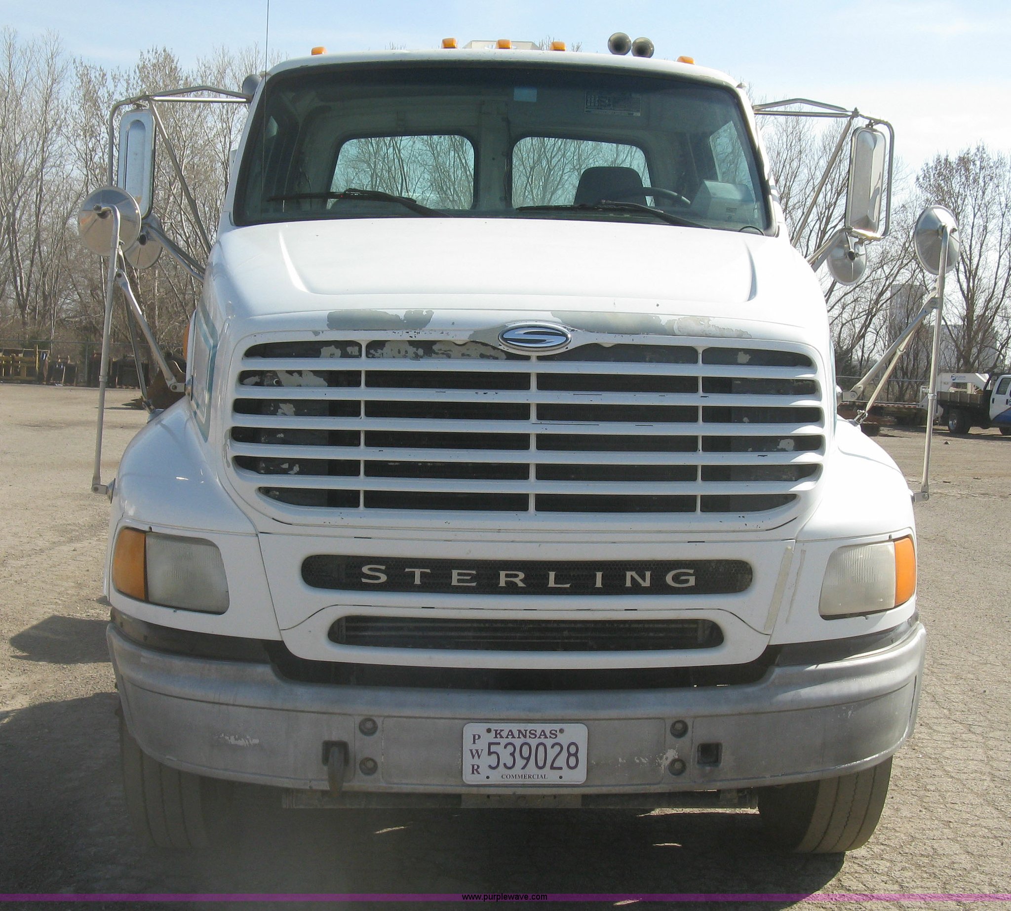 Purple Wave is selling a used Truck Tractor in Kansas. This item is a 2001 Sterling semi truck with the following: 291,029 miles on odometer, Caterpillar 14.6L L6 diesel engine, Eaton Fuller Road Ranger 10 speed manual transmission, Twin screw, Locking differential, AC and heat, Cruise, AM/FM, Passenger daylight door, Air suspension seat, Air slide fifth wheel plate, Stainless steel half fenders, Steel deck plate, Single exhaust stack, Air suspension, Air brakes, Jake brake, Trailer brake controller, 182" wheelbase, 11R22.5 tires, GVWR 52,000 lbs, FAWR 12,000 lbs, IAWR 20,000 lbs, RAWR 20,000 lbs, Scratches and dents, Engine uses oil, Unit# TST15
