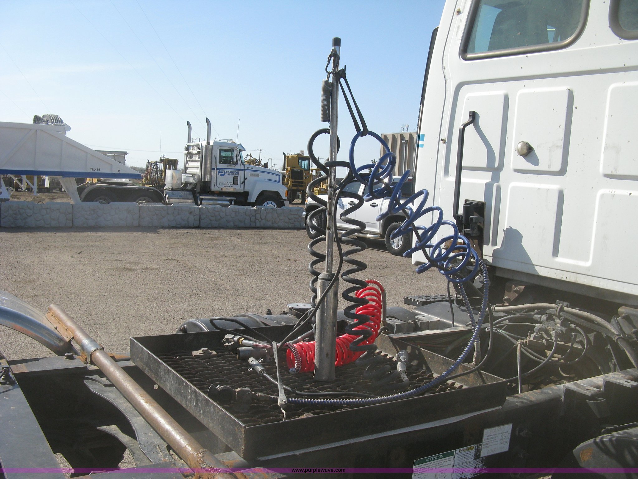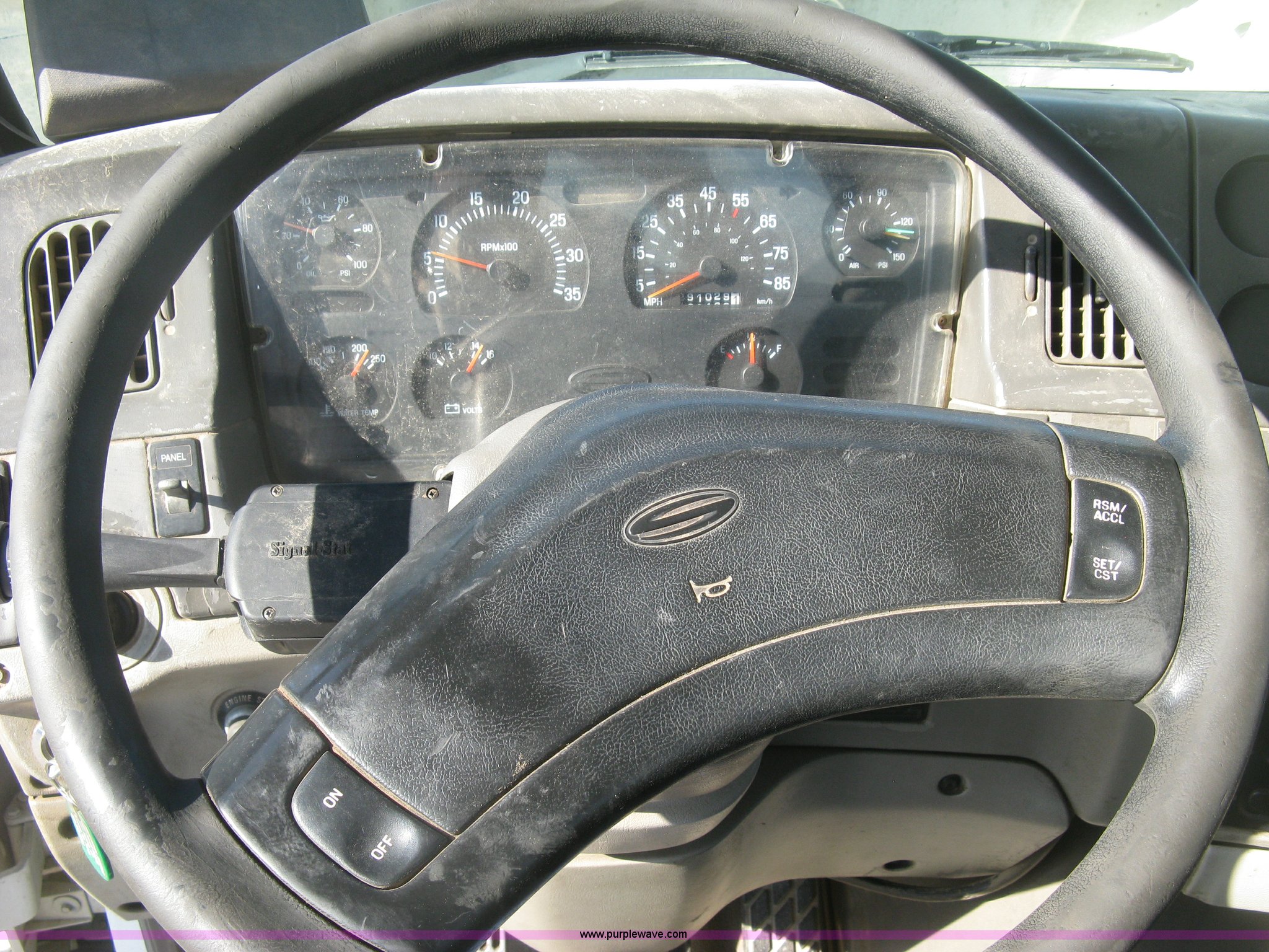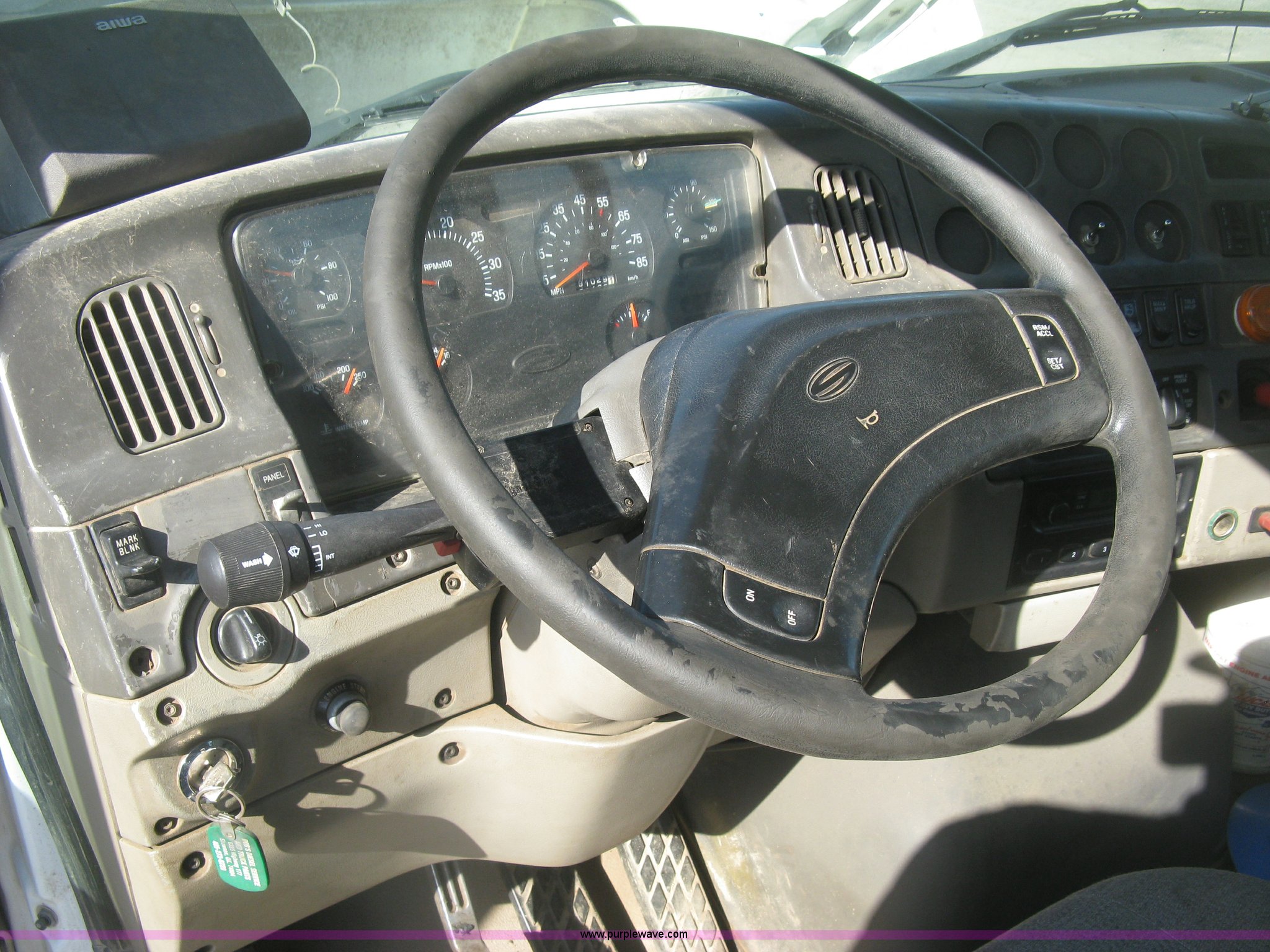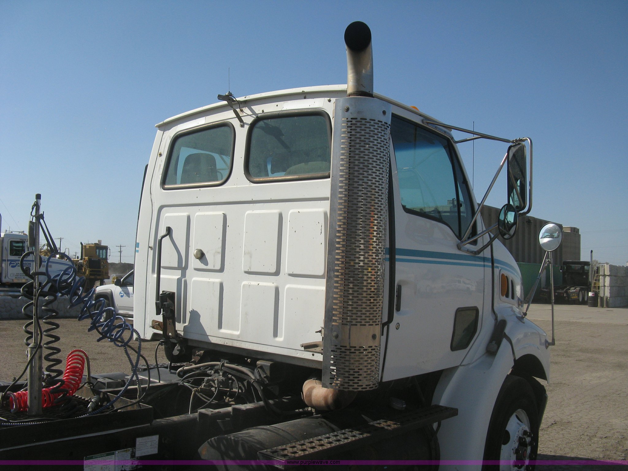 Purple Wave is selling a used Truck Tractor in Kansas. This item is a 2001 Sterling semi truck with the following: 291,029 miles on odometer, Caterpillar 14.6L L6 diesel engine, Eaton Fuller Road Ranger 10 speed manual transmission, Twin screw, Locking differential, AC and heat, Cruise, AM/FM, Passenger daylight door, Air suspension seat, Air slide fifth wheel plate, Stainless steel half fenders, Steel deck plate, Single exhaust stack, Air suspension, Air brakes, Jake brake, Trailer brake controller, 182" wheelbase, 11R22.5 tires, GVWR 52,000 lbs, FAWR 12,000 lbs, IAWR 20,000 lbs, RAWR 20,000 lbs, Scratches and dents, Engine uses oil, Unit# TST15