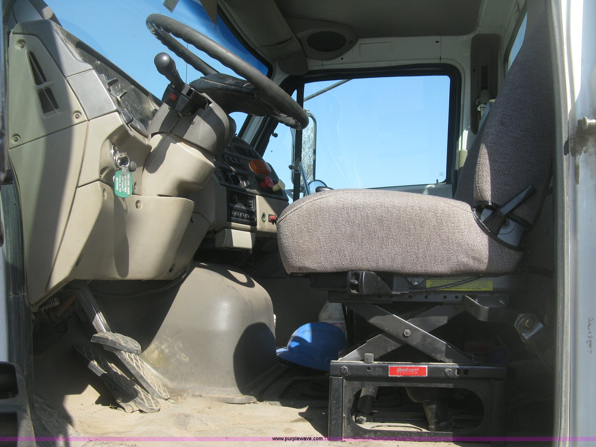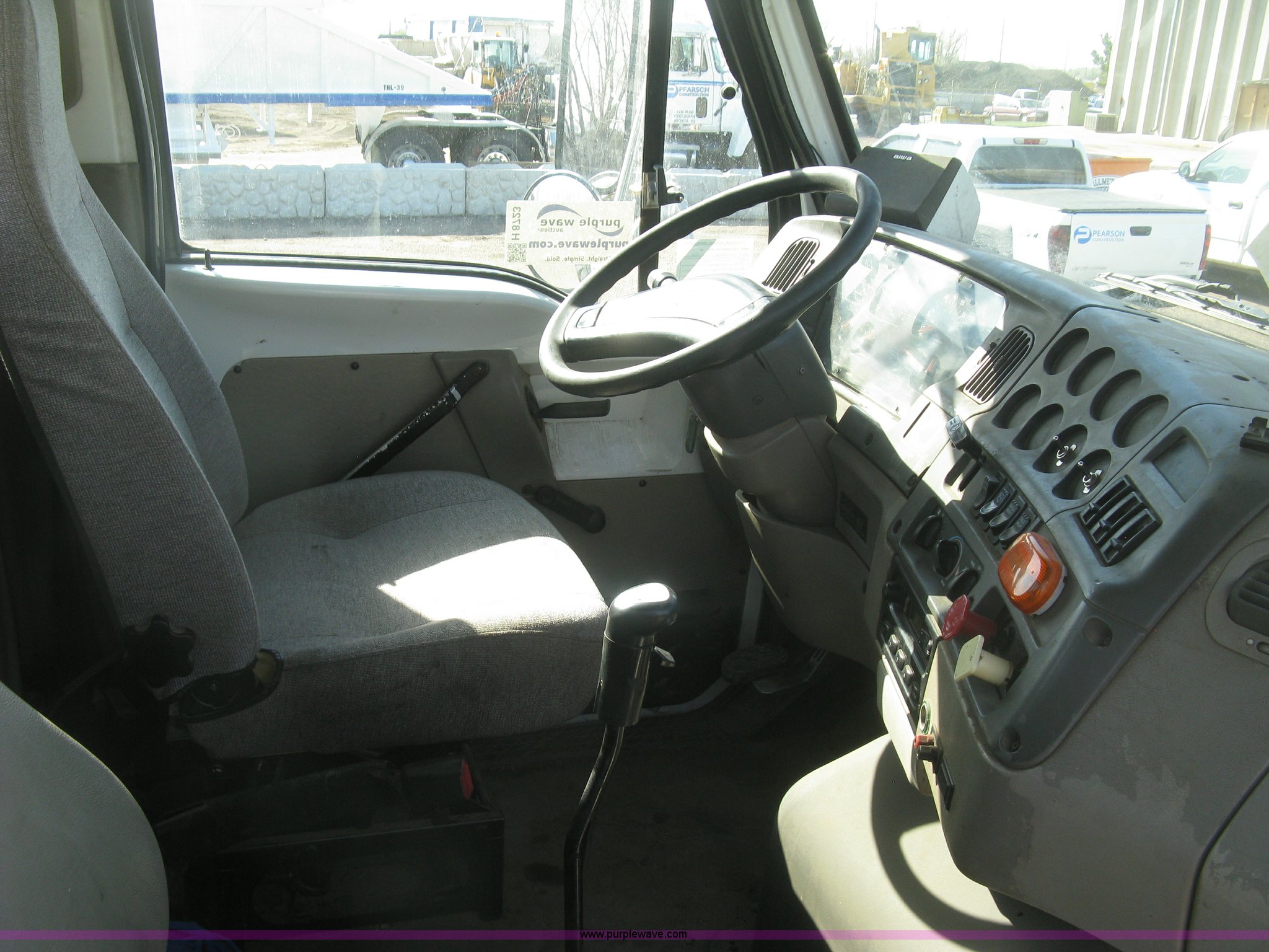 2001 Sterling semi truck. 291,029 miles on odometer, Caterpillar 14.6L L6 diesel engine, Eaton Fuller Road Ranger 10 speed manual transmission, Twin screw, Locking differential, AC and heat, Cruise, AM/FM, Passenger daylight door, Air suspension seat, Air slide fifth wheel plate, Stainless steel half fenders, Steel deck plate, Single exhaust stack, Air suspension, Air brakes , Jake brake, Trailer brake controller, 182" wheelbase, 11R22.5 tires, GVWR 52,000 lbs, FAWR 12,000 lbs, IAWR 20,000 lbs, RAWR 20,000 lbs, Scratches and dents, Engine uses oil, Unit# TST15. 2FWYHZYB11AB58023. Pearson Construction. 821 E 25th Street North. Wichita, KS 67219