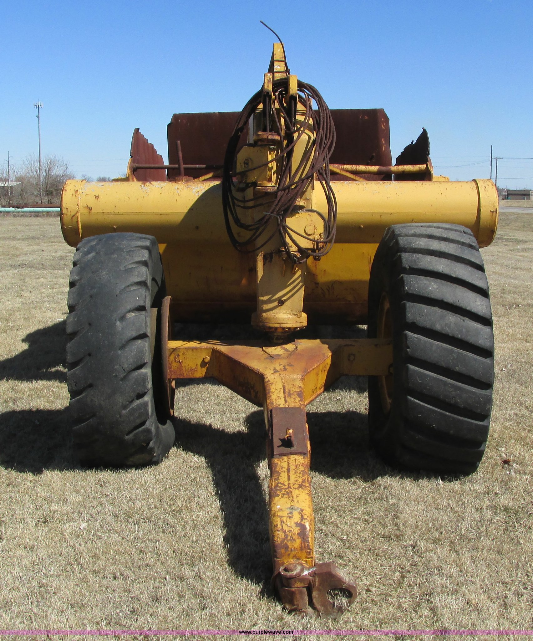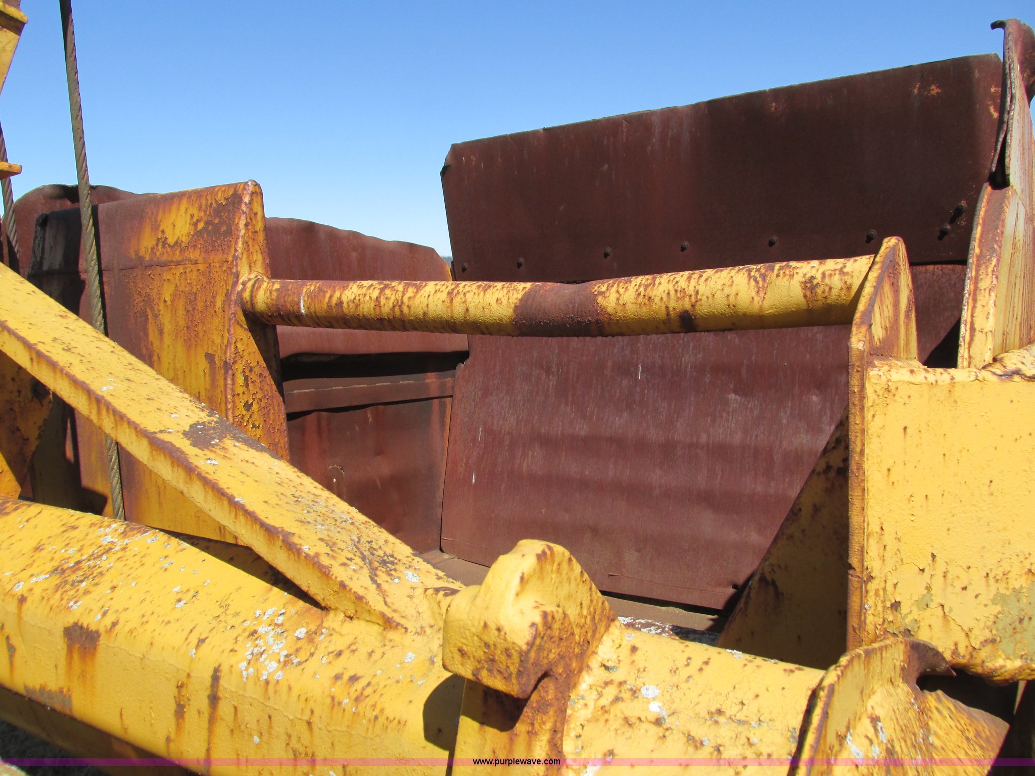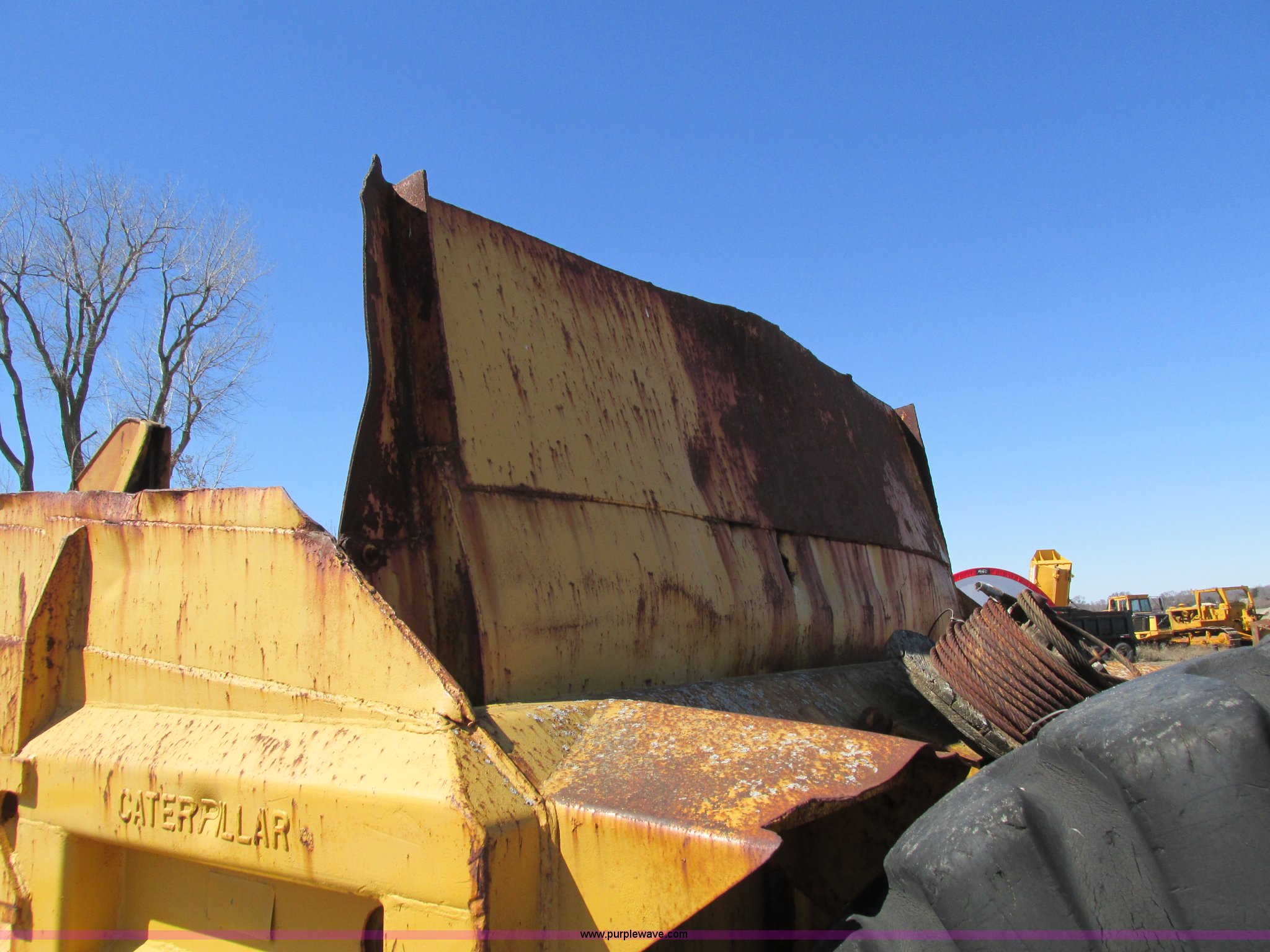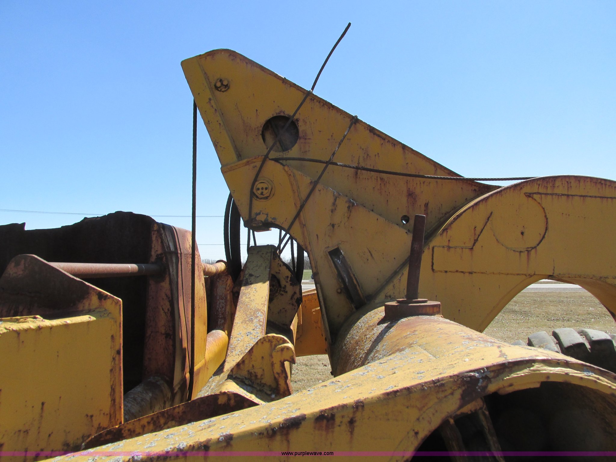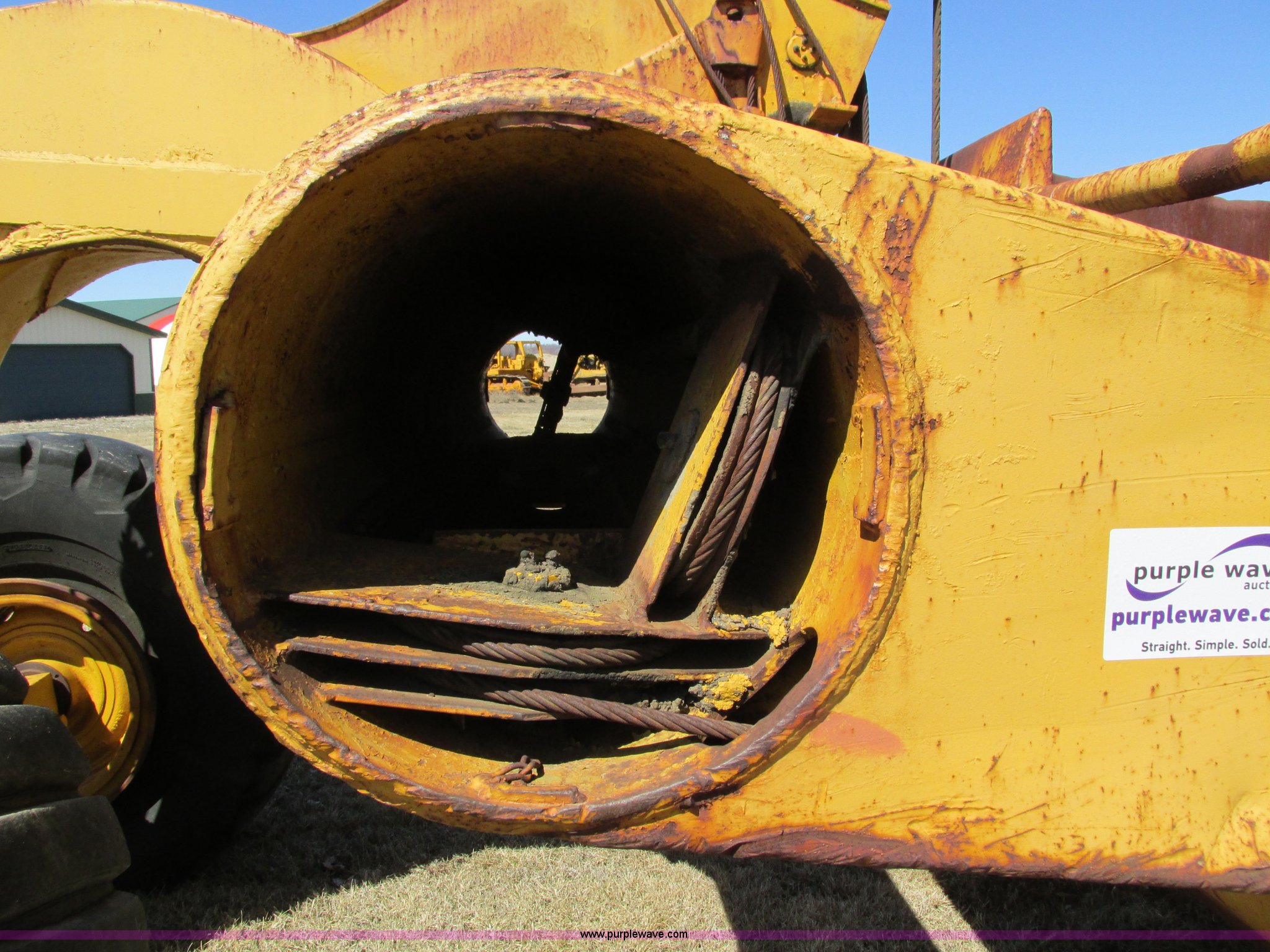 Purple Wave is selling a used Pull Type Scraper in Iowa. This item is a Caterpillar 80 pull scraper with the following: 11'2"W, 9' cutting capacity, 13.5 cubic yard struck capacity, 18 cubic yard heaped capacity, 21.00-25 left front tire, 18.00-25 right front tire, 24.00-29 rear tires, Unknown operating condition, Serial 2D2023
