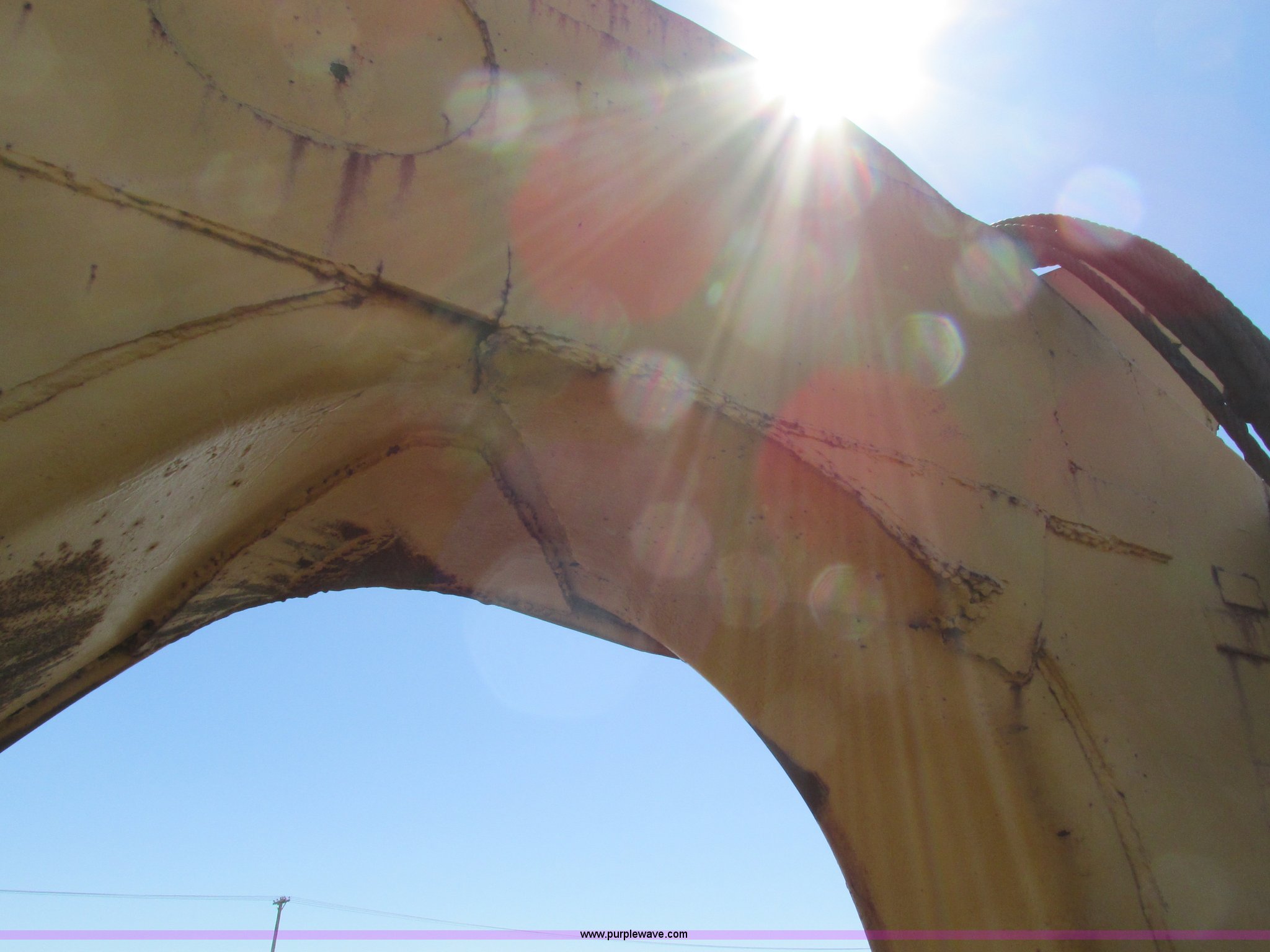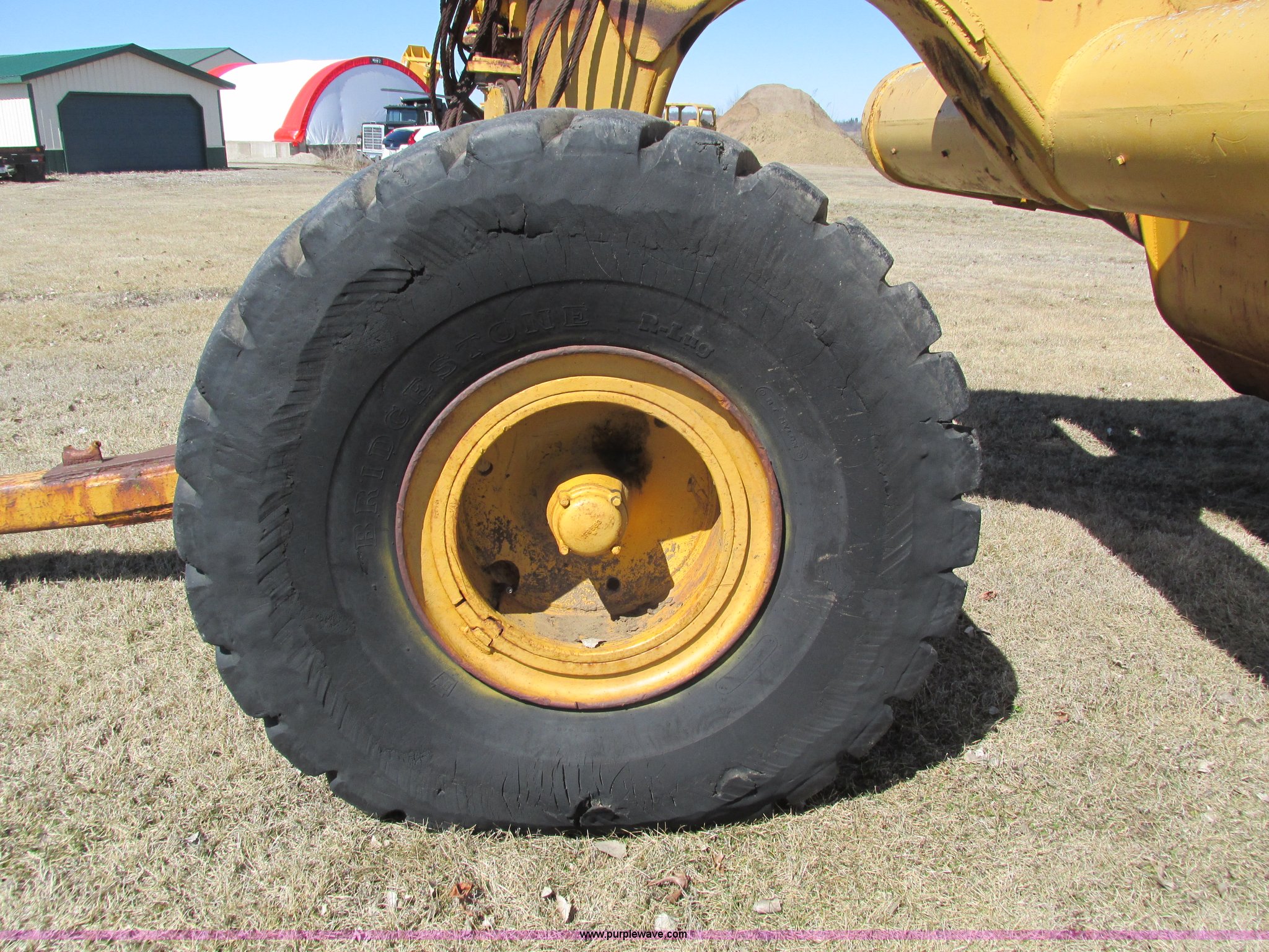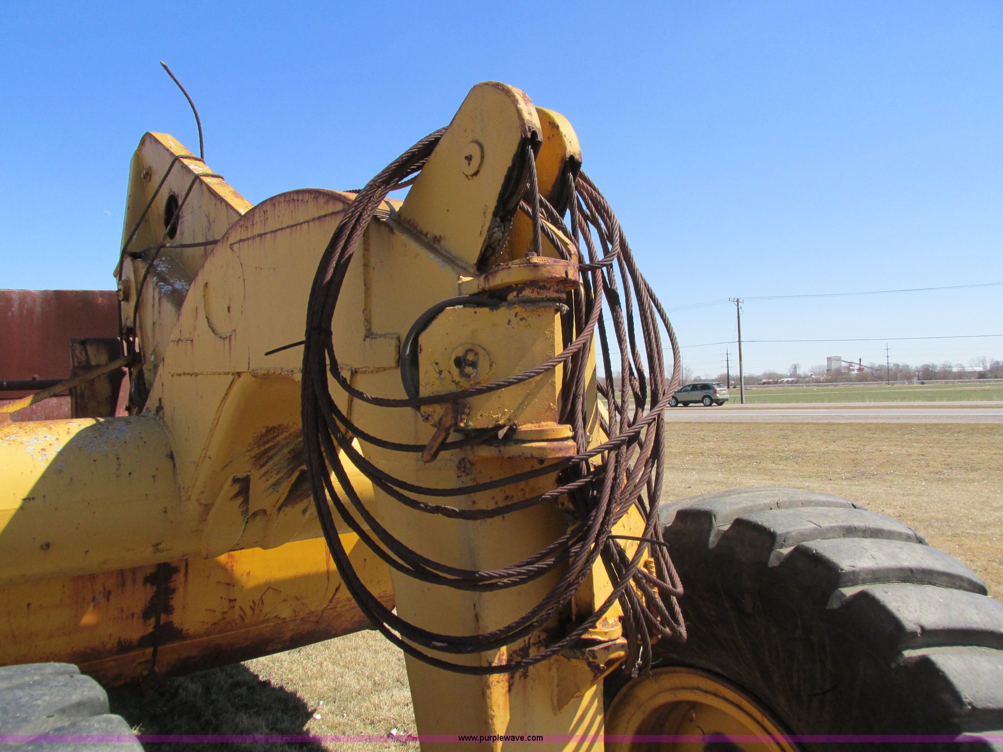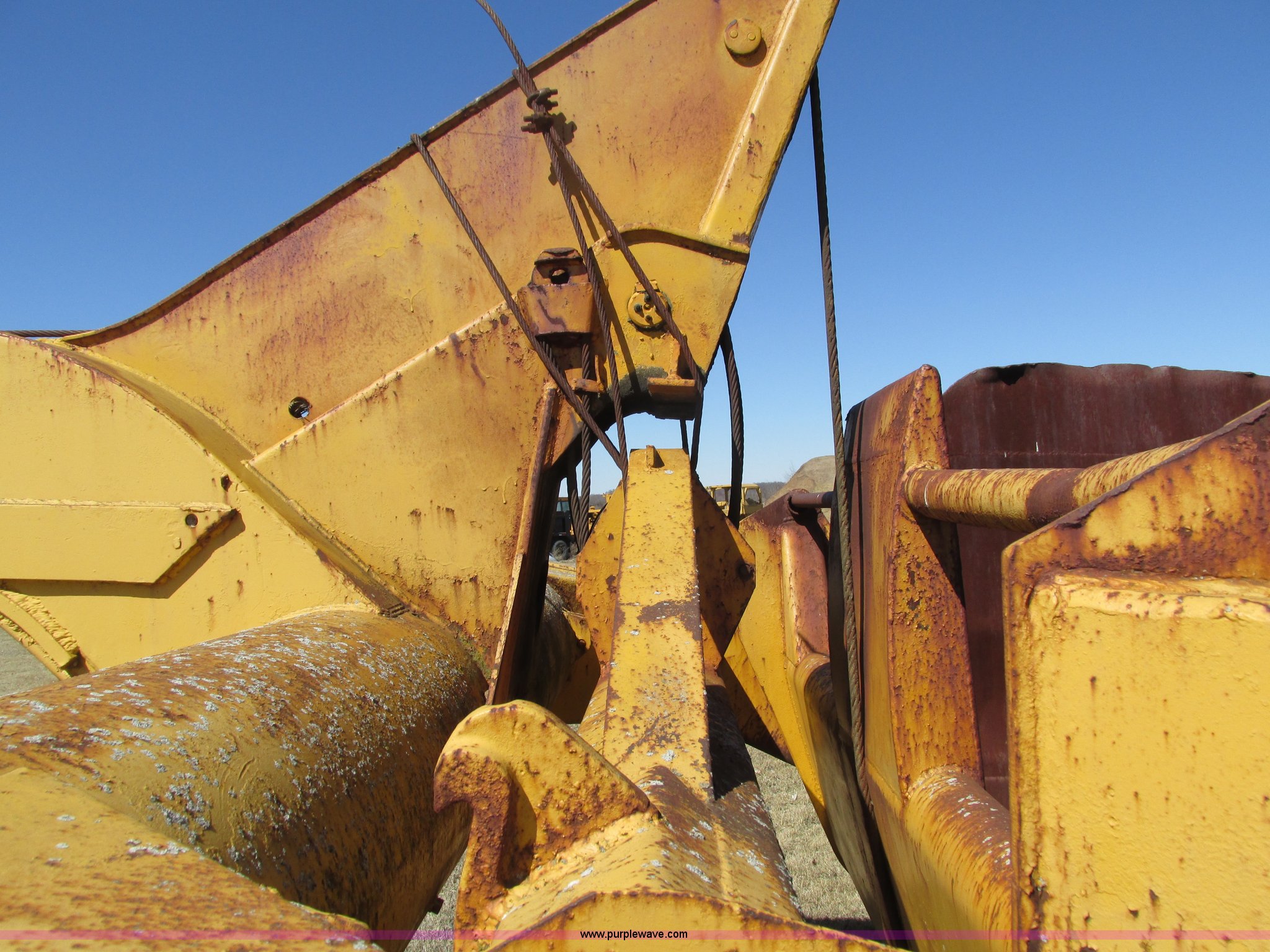 Purple Wave is selling a used Pull Type Scraper in Iowa. This item is a Caterpillar 80 pull scraper with the following: 11'2"W, 9' cutting capacity, 13.5 cubic yard struck capacity, 18 cubic yard heaped capacity, 21.00-25 left front tire, 18.00-25 right front tire, 24.00-29 rear tires, Unknown operating condition, Serial 2D2023