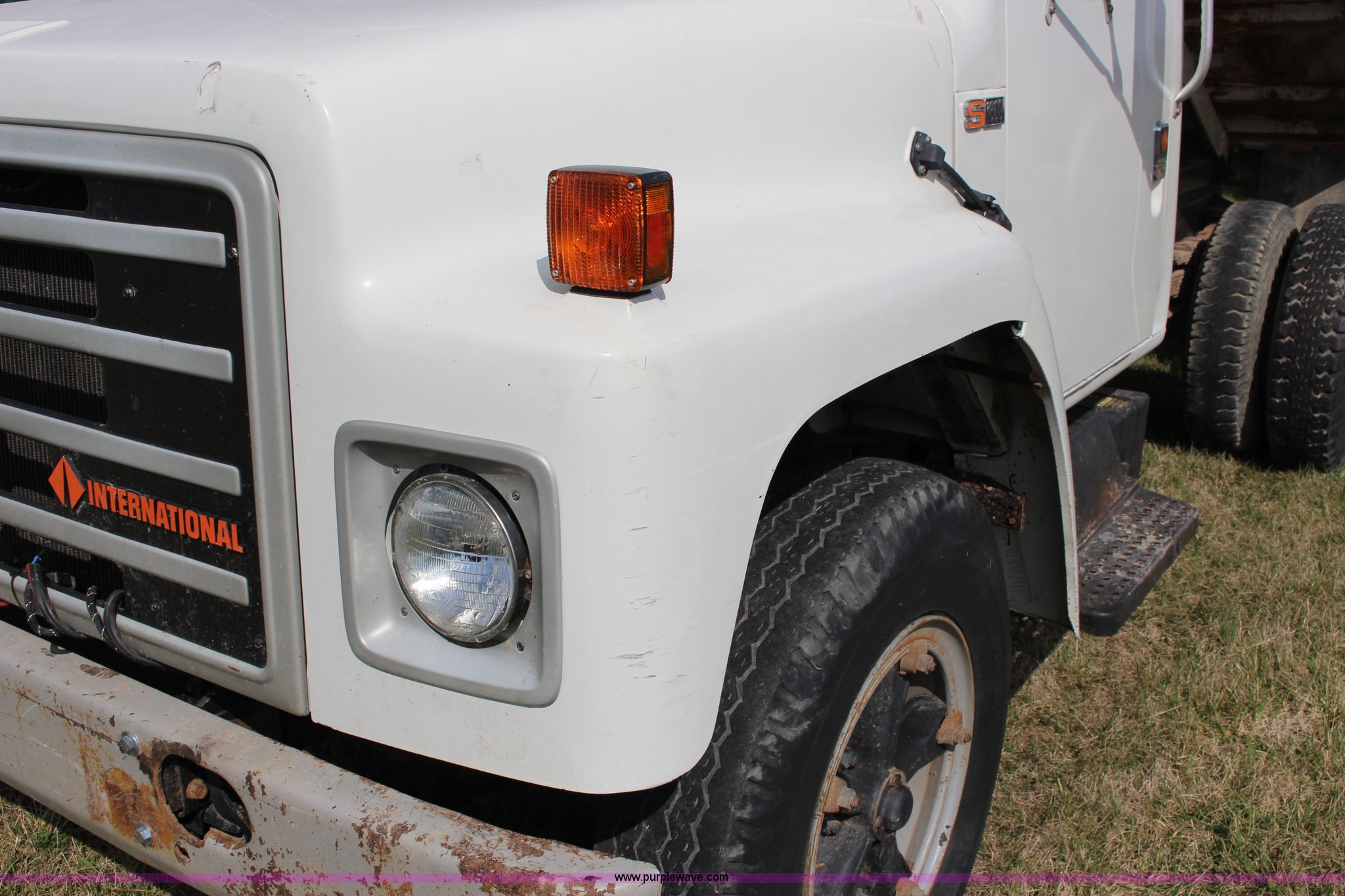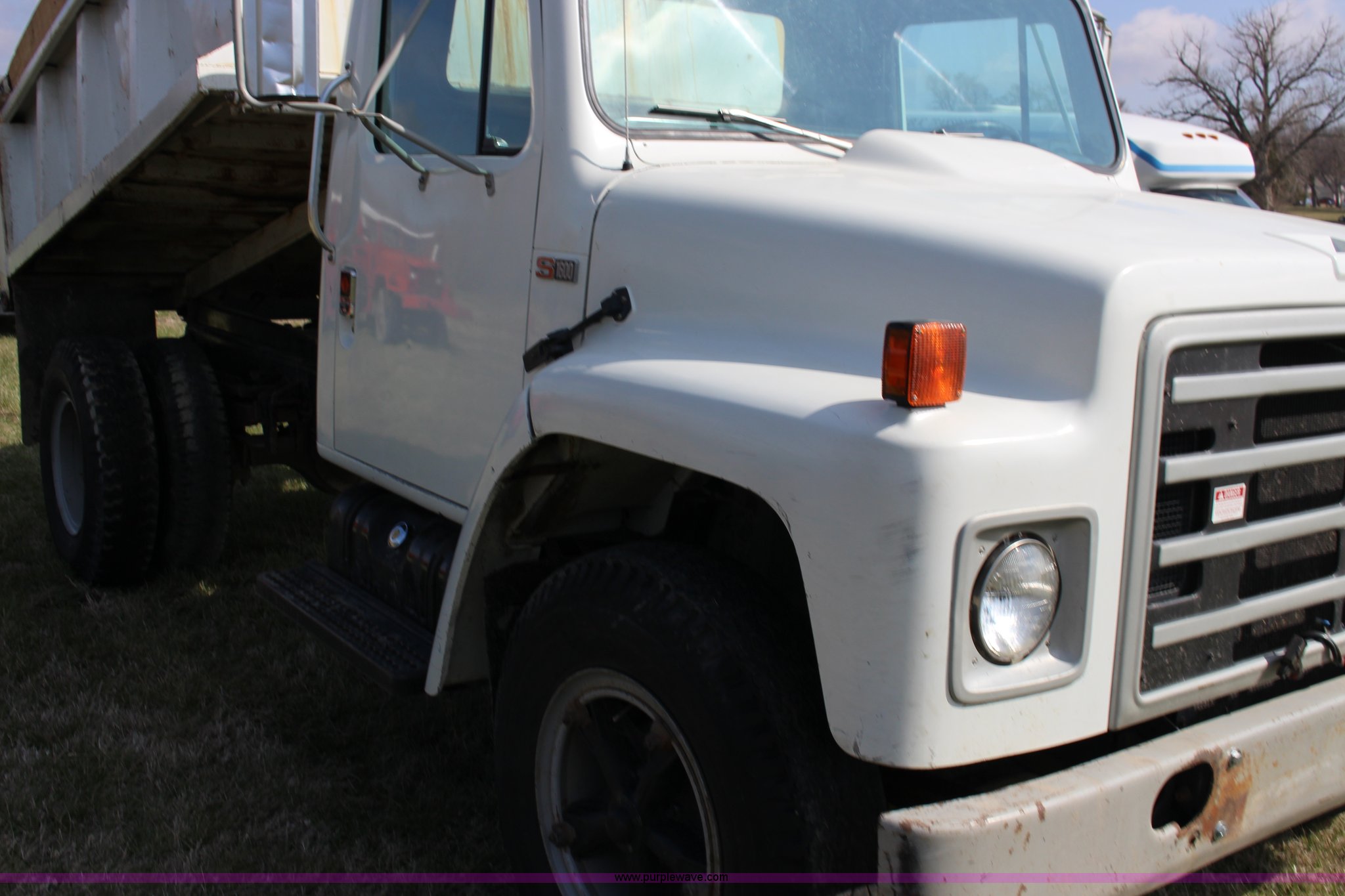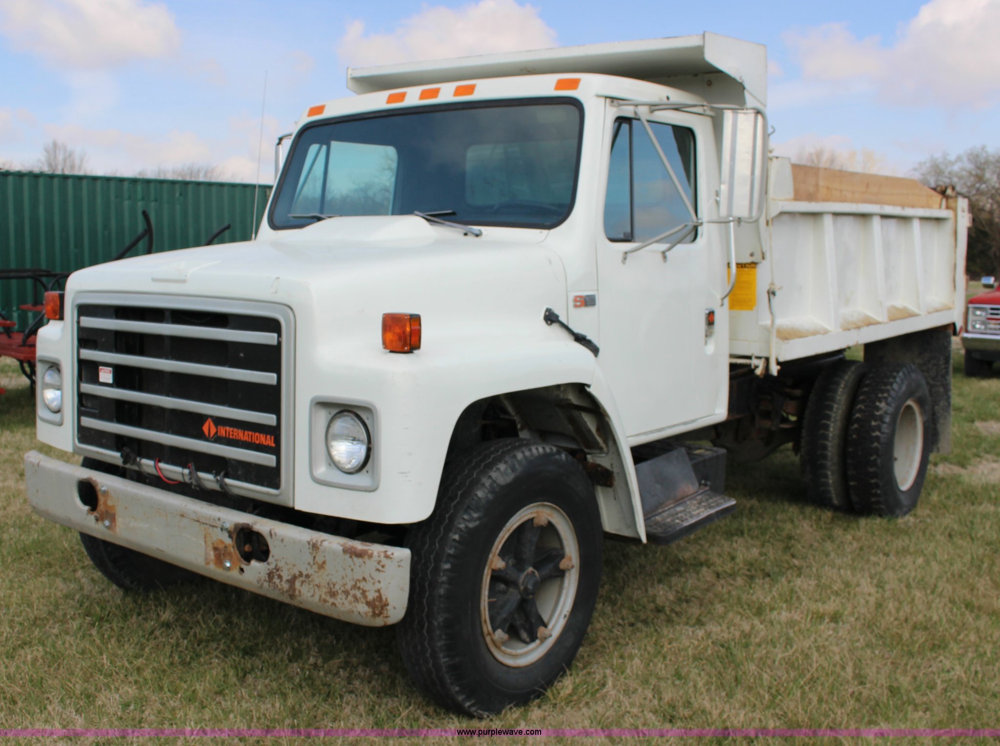 Purple Wave is selling a used Construction Dump Truck in Kansas. This item is a 1988 International S1600 dump truck with the following: 110,210 miles on odometer, 2,937 hours on meter, International T444 7.3L V8 diesel engine, Five speed manual transmission, Two speed rear end, Heat, Manual windows and locks, Vinyl interior, 10' x 8' steel dump bed, Hoist, Spring suspension, Hydraulic brakes, 9.00-20 tires, Interior/exterior cosmetic damage