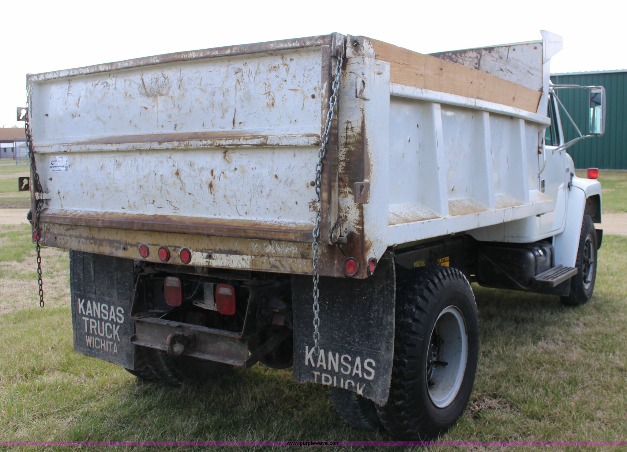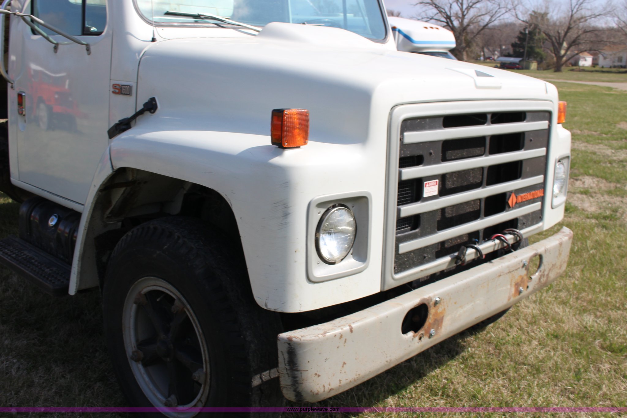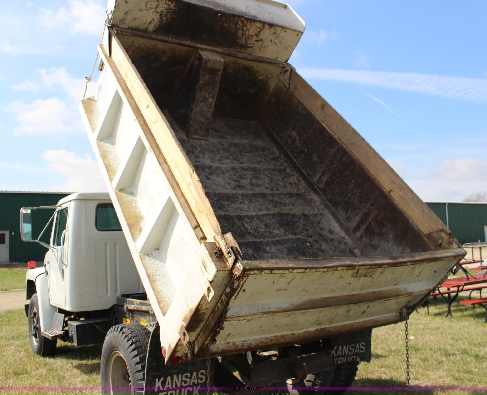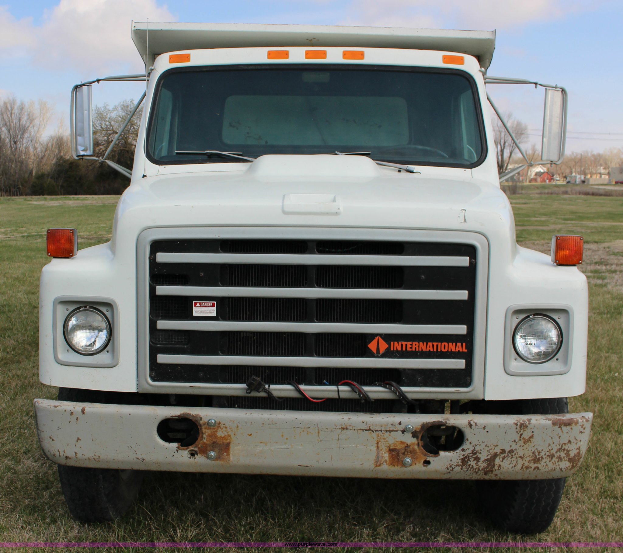 Purple Wave is selling a used Construction Dump Truck in Kansas. This item is a 1988 International S1600 dump truck with the following: 110,210 miles on odometer, 2,937 hours on meter, International T444 7.3L V8 diesel engine, Five speed manual transmission, Two speed rear end, Heat, Manual windows and locks, Vinyl interior, 10' x 8' steel dump bed, Hoist, Spring suspension, Hydraulic brakes, 9.00-20 tires, Interior/exterior cosmetic damage