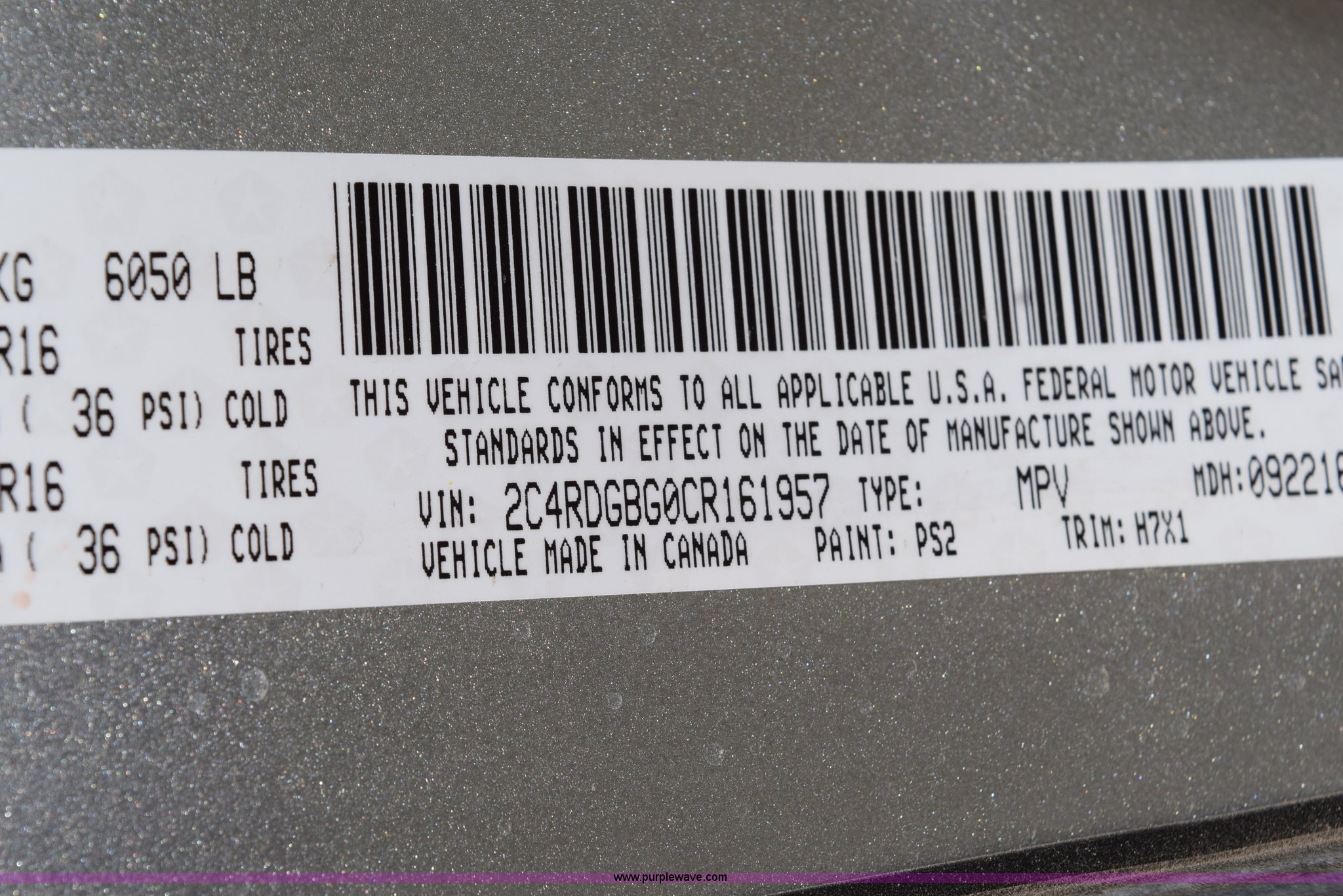 Purple Wave is selling a used Passenger Vehicle in Kansas. This item is a 2012 Dodge Grand Caravan Express van with the following: 36,995 actual miles, 3.6L V6 DOHC 24V gas engine, Automatic transmission, AC and heat, Tilt, Cruise, AM/FM/CD, Power windows, locks, mirrors, and seats, Cloth interior, 235/60R16 tires