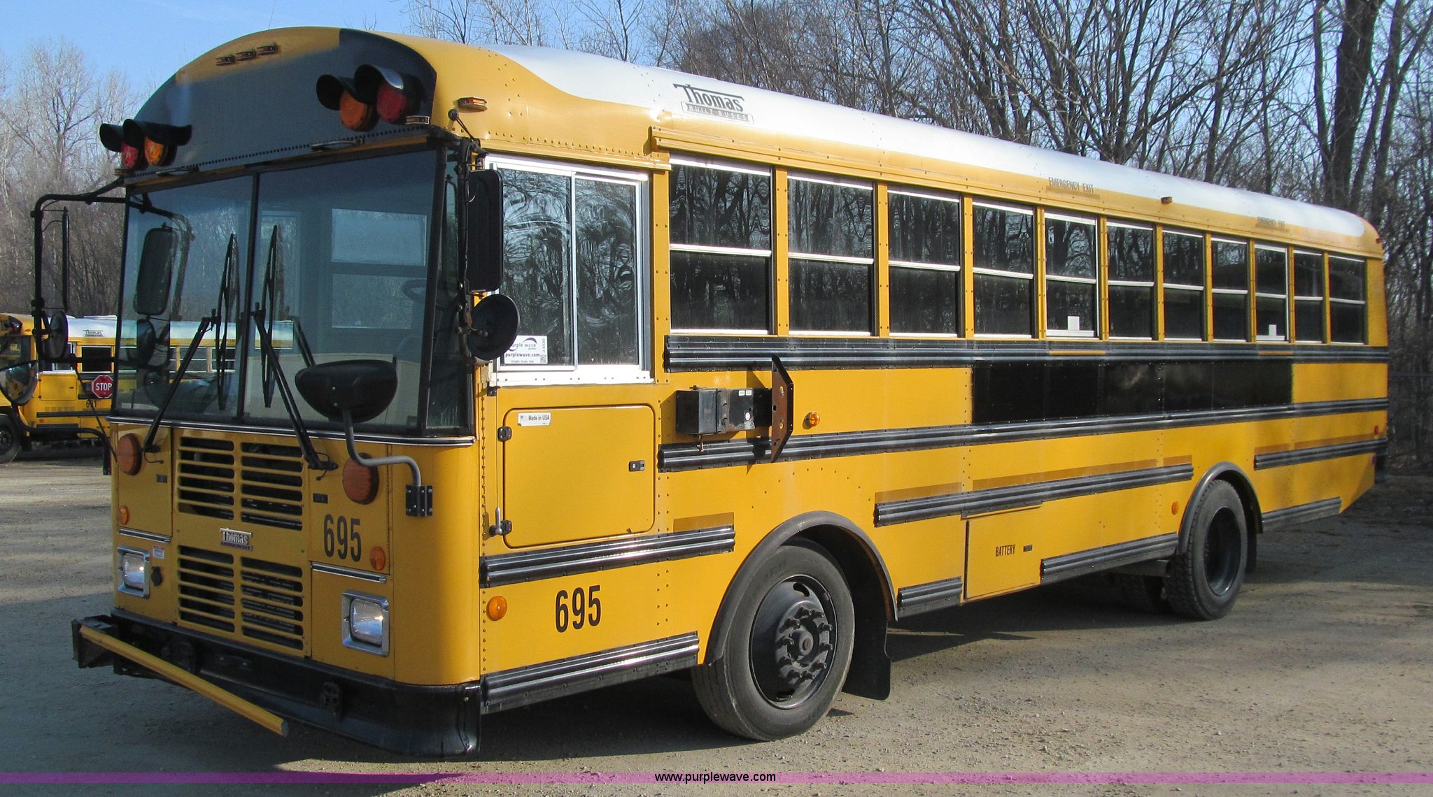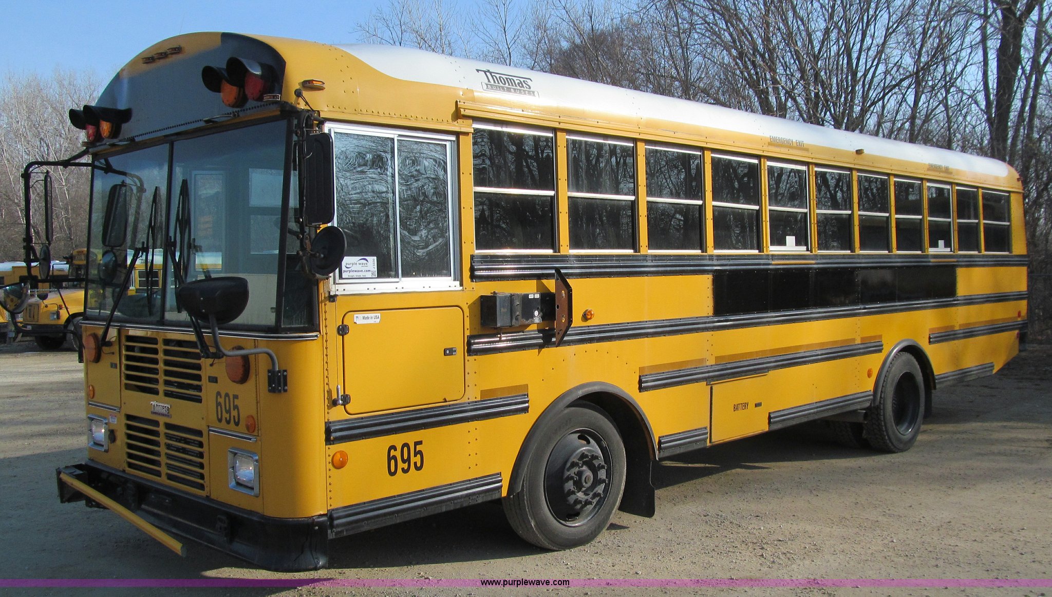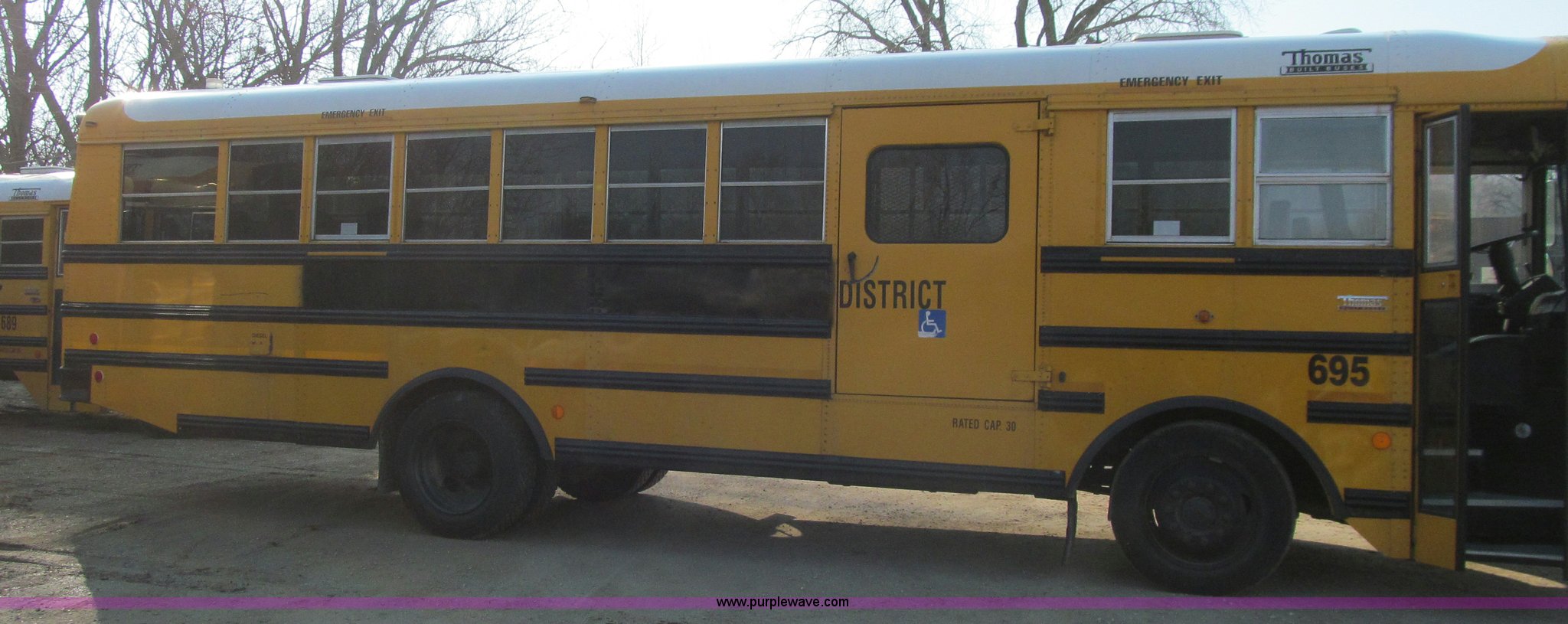 Purple Wave is selling a used Bus in Iowa. This item is a 2004 Thomas Saf-T-Liner MVP EF bus with the following: 28,507 miles on odometer, Approx. 147,681 total miles, 11,867 hours on meter, Caterpillar EFC7210 Acert six cylinder diesel engine, Automatic transmission, Heat, Cruise, AM/FM/cassette, Air suspension seat, 30 passenger capacity, (7) emergency egress, Braun L9171B wheelchair lift, Block heater, Air suspension, Air brakes, 176" wheelbase, 255/70R22.5 tires, GVWR 30,000 lbs, FAWR 11,020 lbs, RAWR 19,000 lbs, Unit# 695