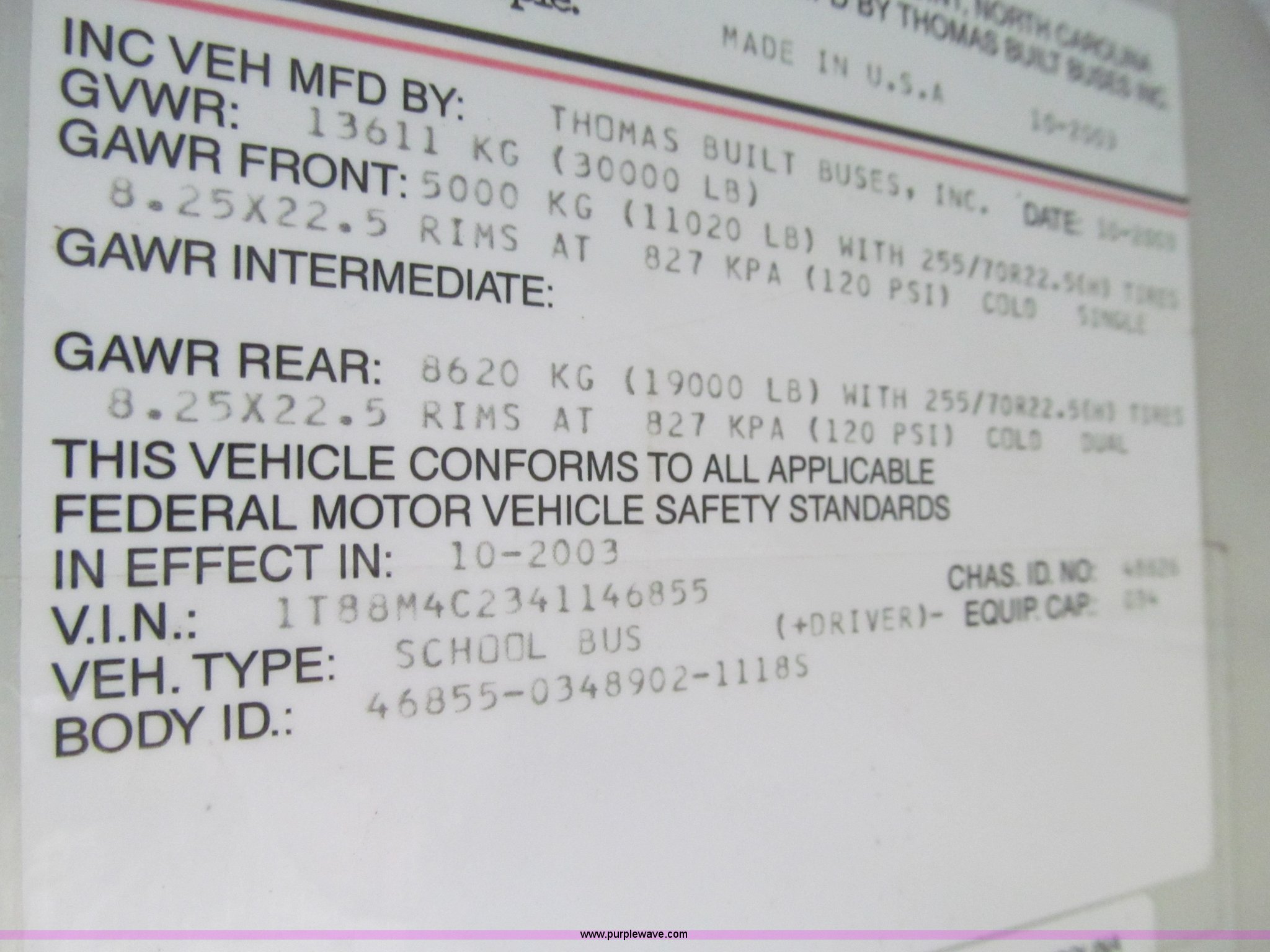 Take a look at this used 2004 Thomas Saf-T-Liner MVP EF bus being sold on May 5th, 2015 in the SOLD! May 5 Government Auction made by Thomas. Take a look at all of the item information below or take a look at similar auctions for Transit Vehicles.