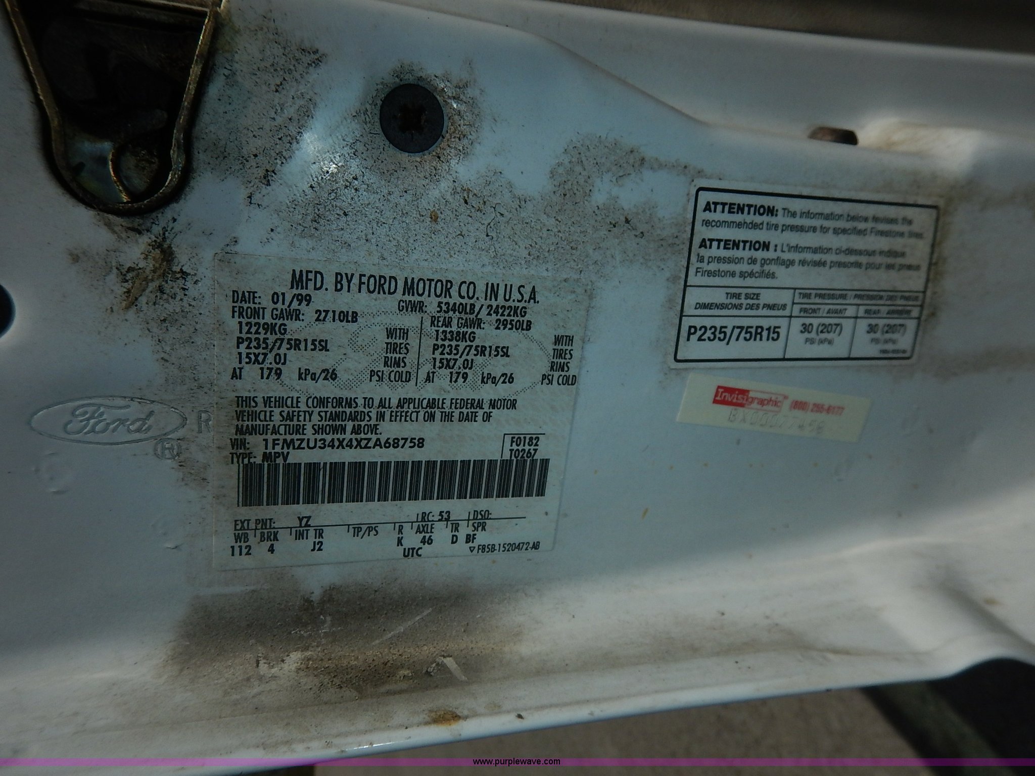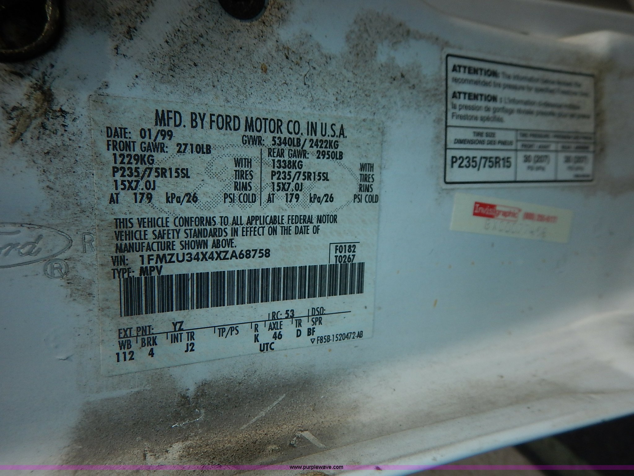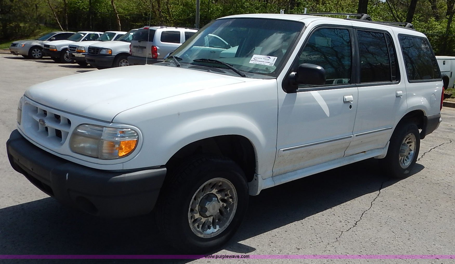 Purple Wave is selling a used Passenger Vehicle in Kansas. This item is a 1999 Ford Explorer SUV with the following: 110,773 miles on odometer, 4.0L V6 SOHC 12V gas engine, Automatic transmission, AC and heat, Tilt, Cruise, Control buttons missing, AM/FM/CD/cassette, Power windows, locks, and mirrors, Cloth interior, Luggage rack, 225/70R15 tires, Arm rest damage, Rust, Check engine light on, Unit# JCW4108