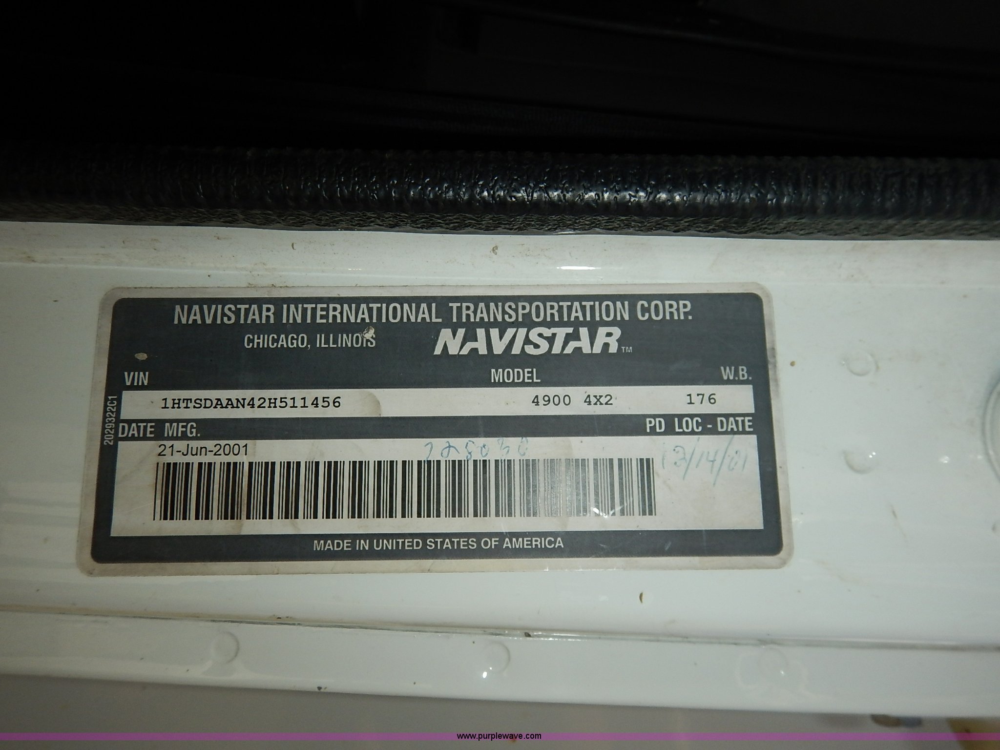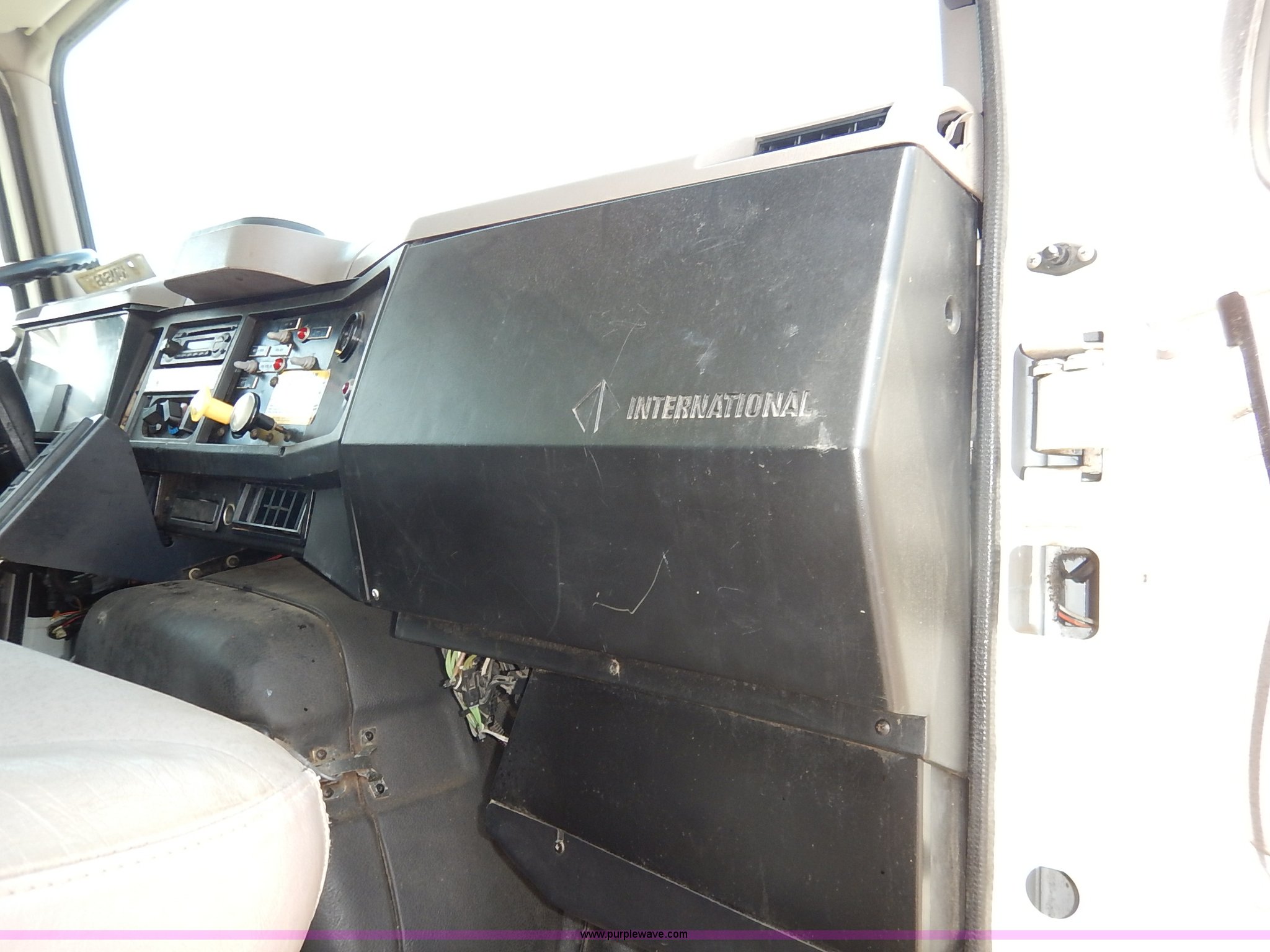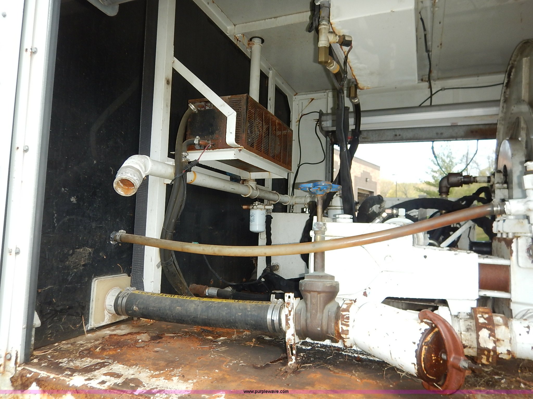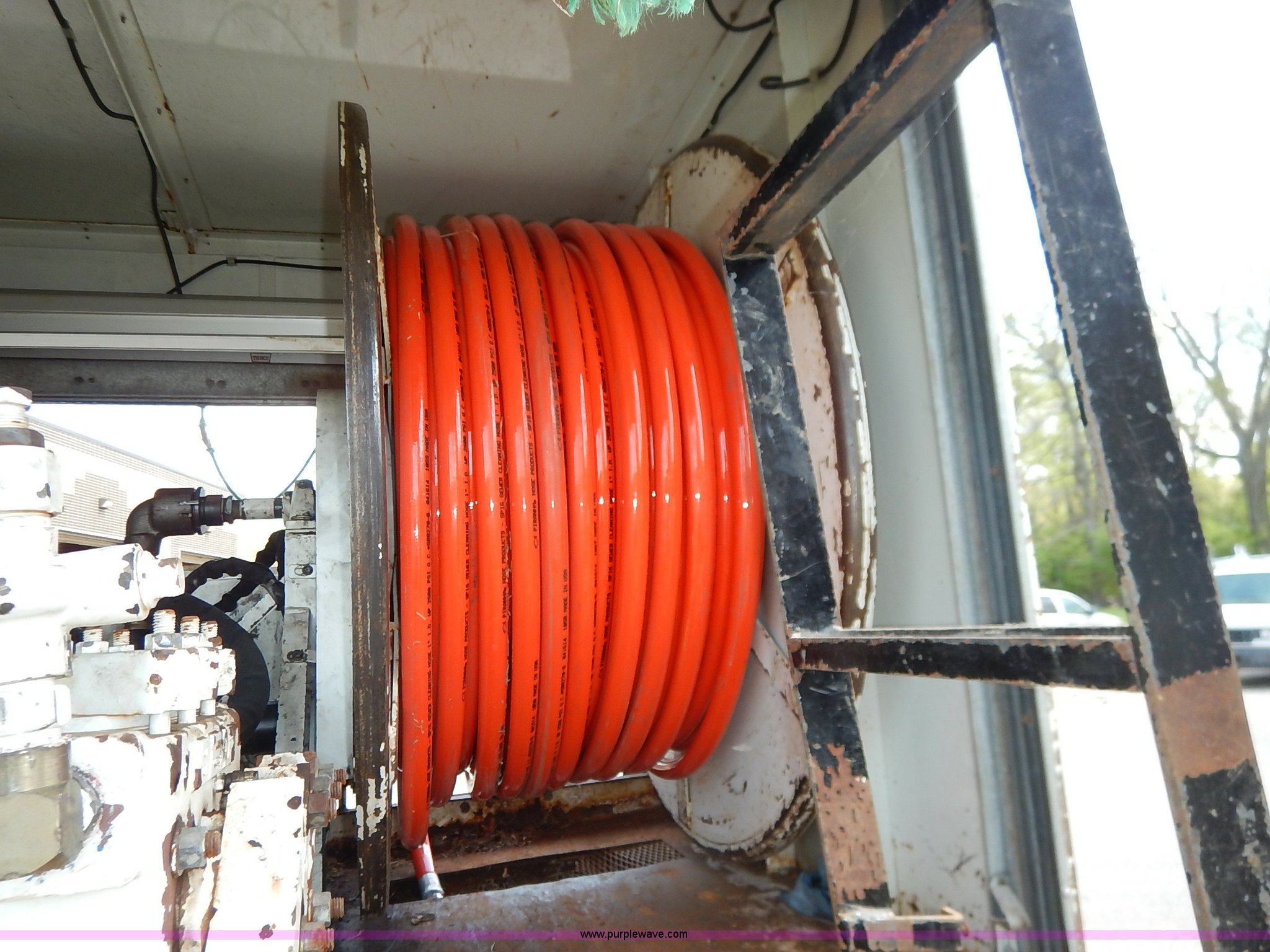 Purple Wave is selling a used Tank Truck or Water Truck in Kansas. This item is a 2002 International 4900 sewer jet truck with the following: 75,193 miles on odometer, 8,929 hours on meter, International DT466E 7.6L L6 diesel engine, Automatic transmission, Differential lock, Heat, Cruise, AM/FM/CD, Manual windows and locks, Vinyl interior, Traffic manager control, Sewer jet, Model 800H, Serial 2473, Bean pump, 7,752 hours on meter, Serial 15T4, Hydraulic pump and reservoir, Internal heater for pump, 800' of hose with reel, Block heater, Tow hooks, Underside storage box, Single rear exhaust stack, 50 gallon fuel tank, Trailer wiring, PTO, Spring suspension, Air brakes, 11R22.5 tires, GVWR 20,340 lbs, FAWR 7,555 lbs, RAWR 12,785 lbs, Interior/exterior cosmetic damage, Rust, Hood damage, Unit# JCW6068