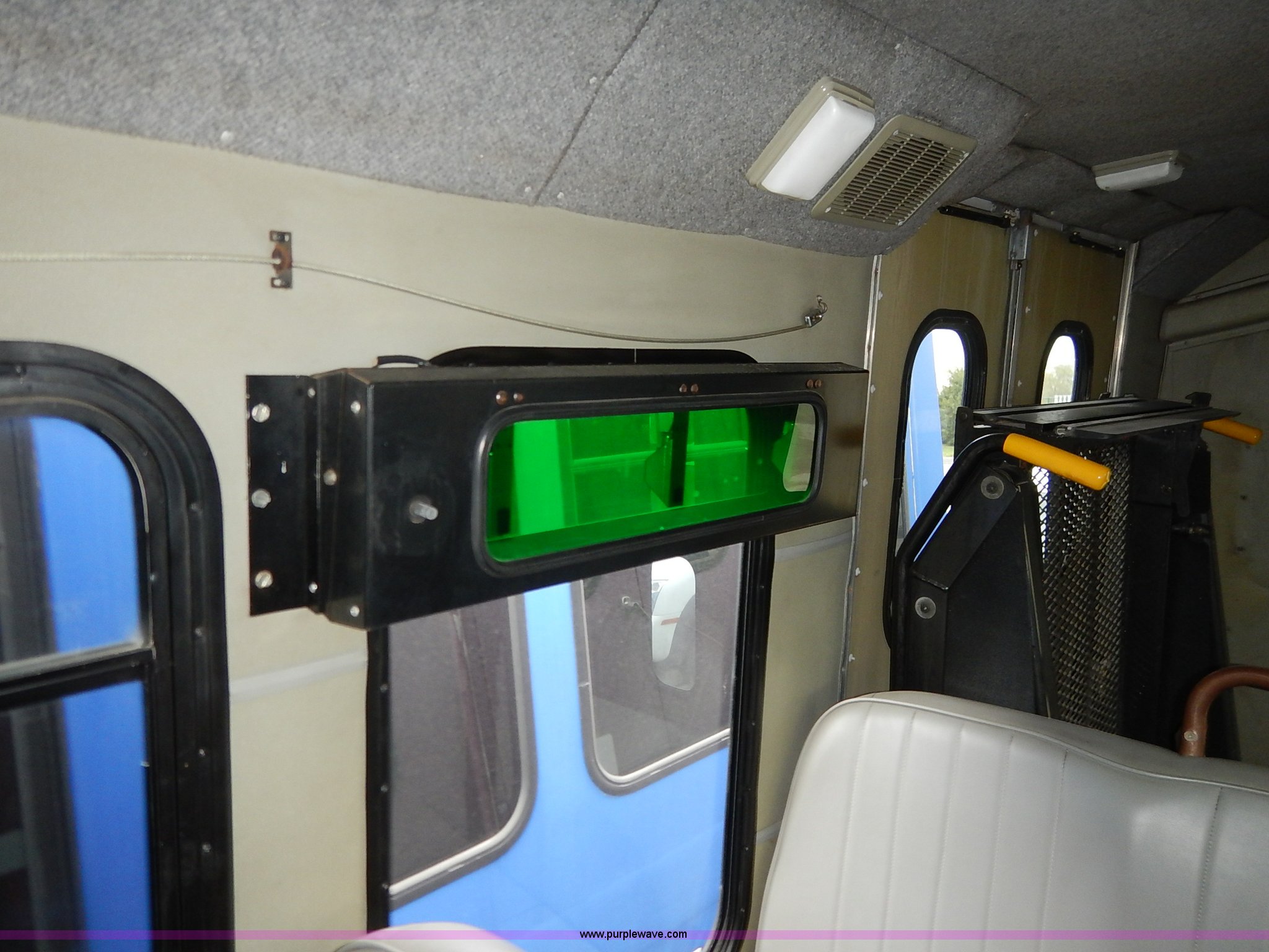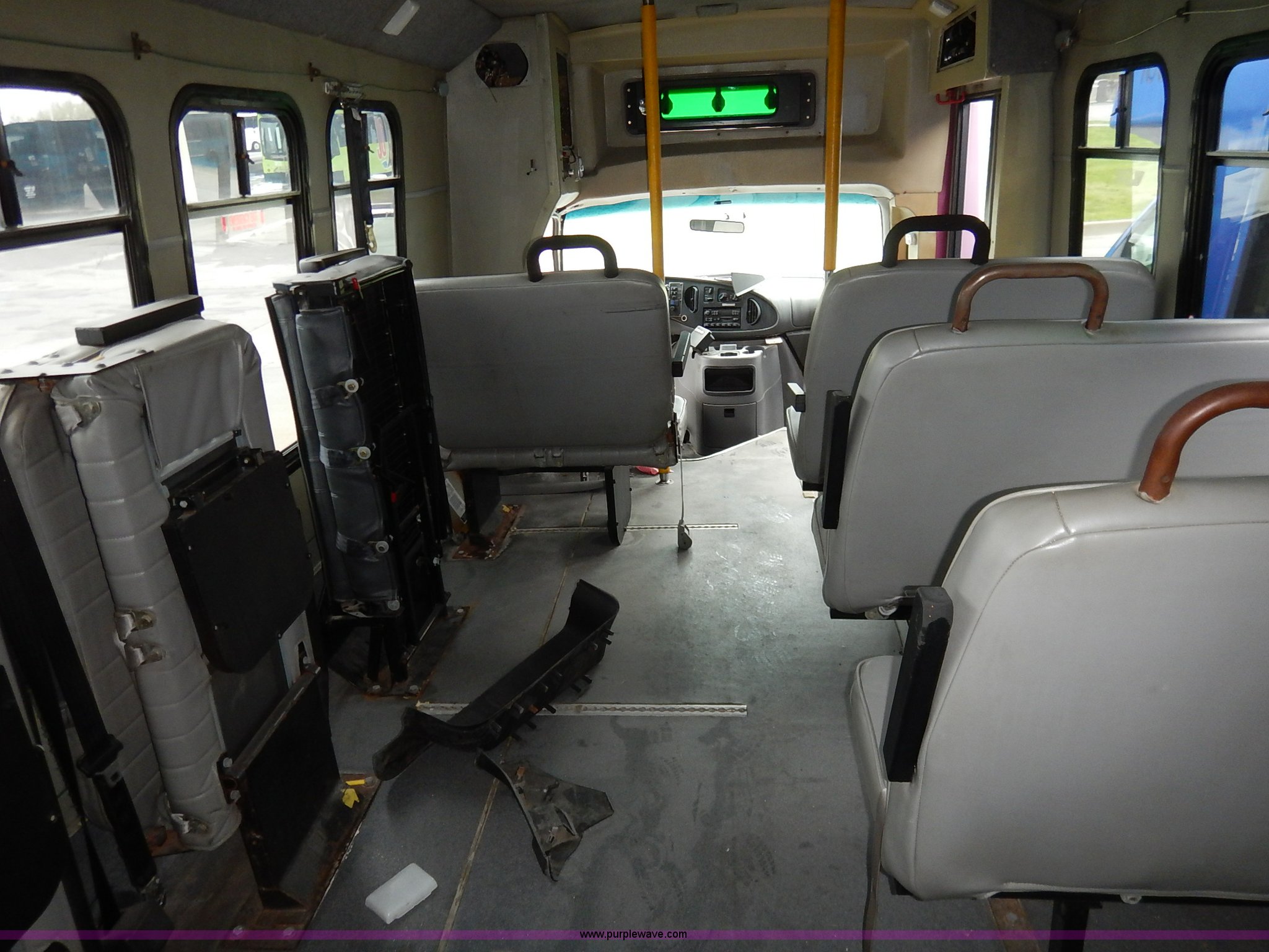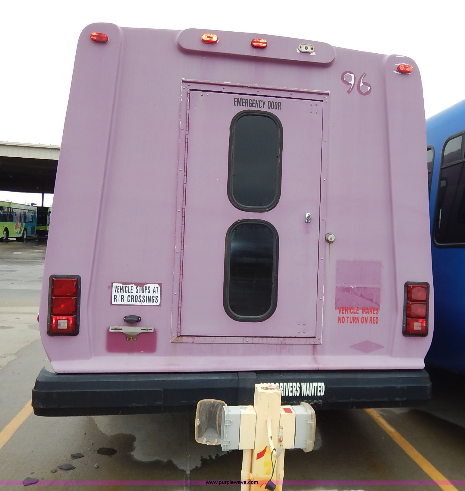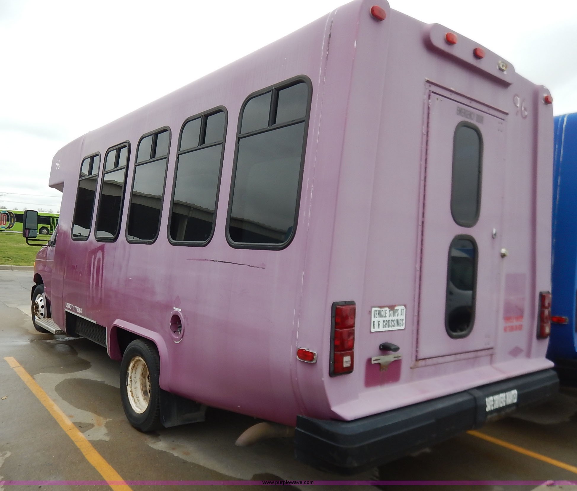 Purple Wave is selling a used Bus in Kansas. This item is a 2003 Ford 801 transit bus with the following: 343,214 miles on odometer, 7.3L V8 OHV 16V turbo diesel engine, Automatic transmission, AC and heat, Tilt, Cruise, AM/FM/cassette, Manual windows and locks, Cloth driver interior, Vinyl passenger interior, OEM radio band, 16 passenger capacity, Backup alarm, Wheelchair lift, Rear egress, 225/75R16 tires, Interior/exterior cosmetic damage, Paint chipping and faded, Dead battery, Visor missing, Unknown operating condition, Unit# TRN96