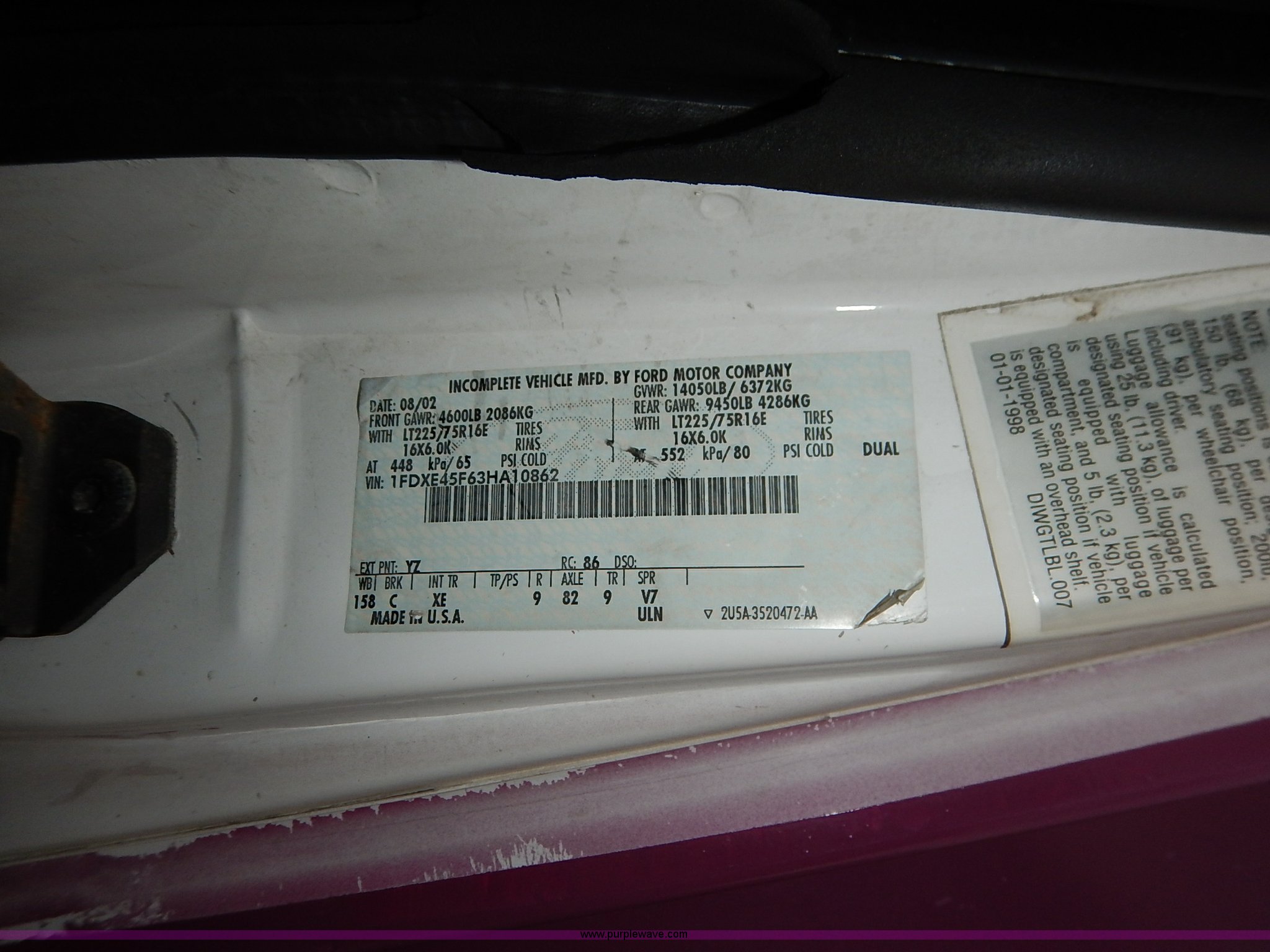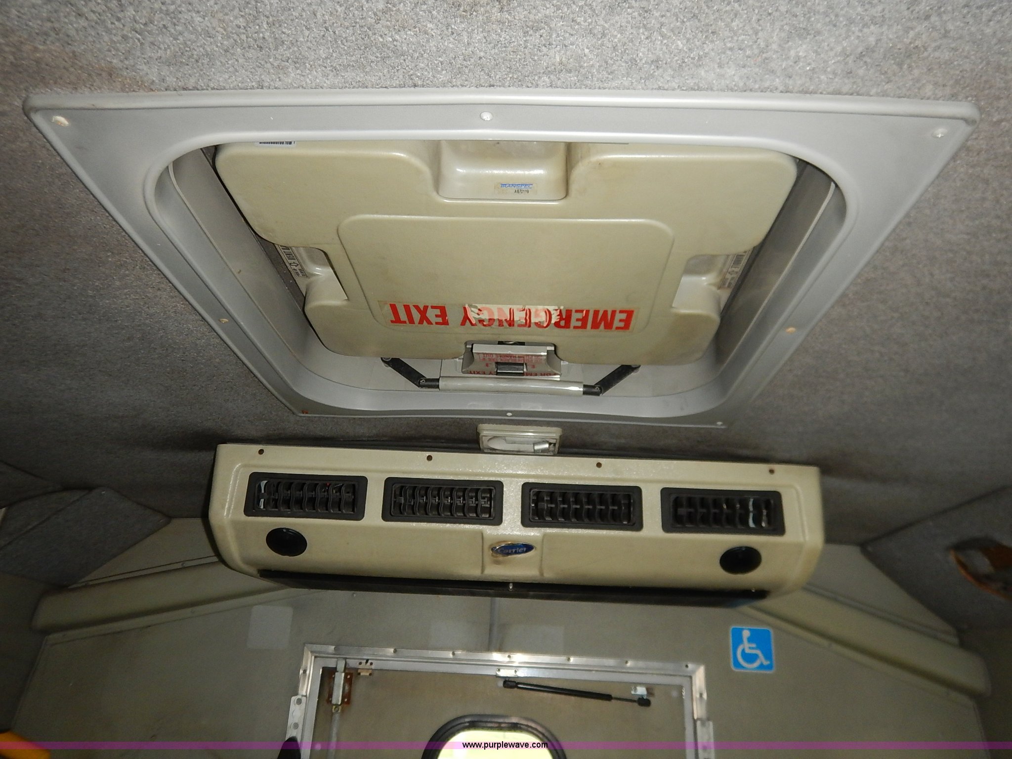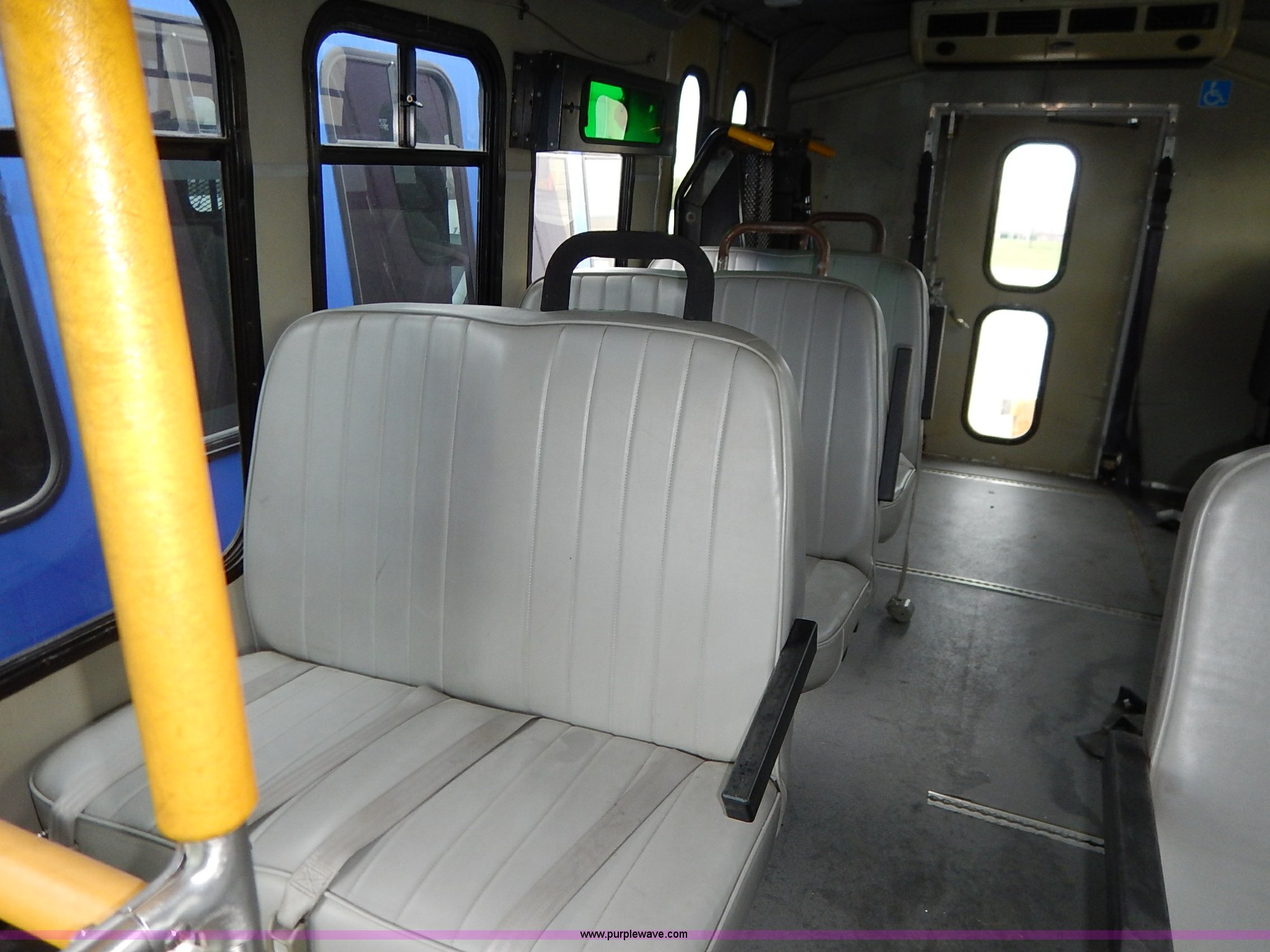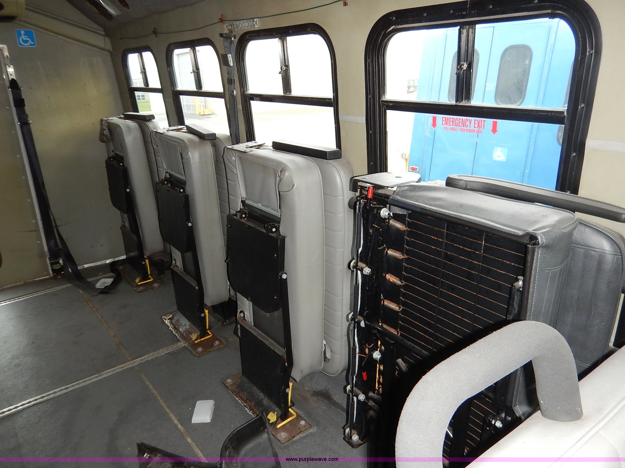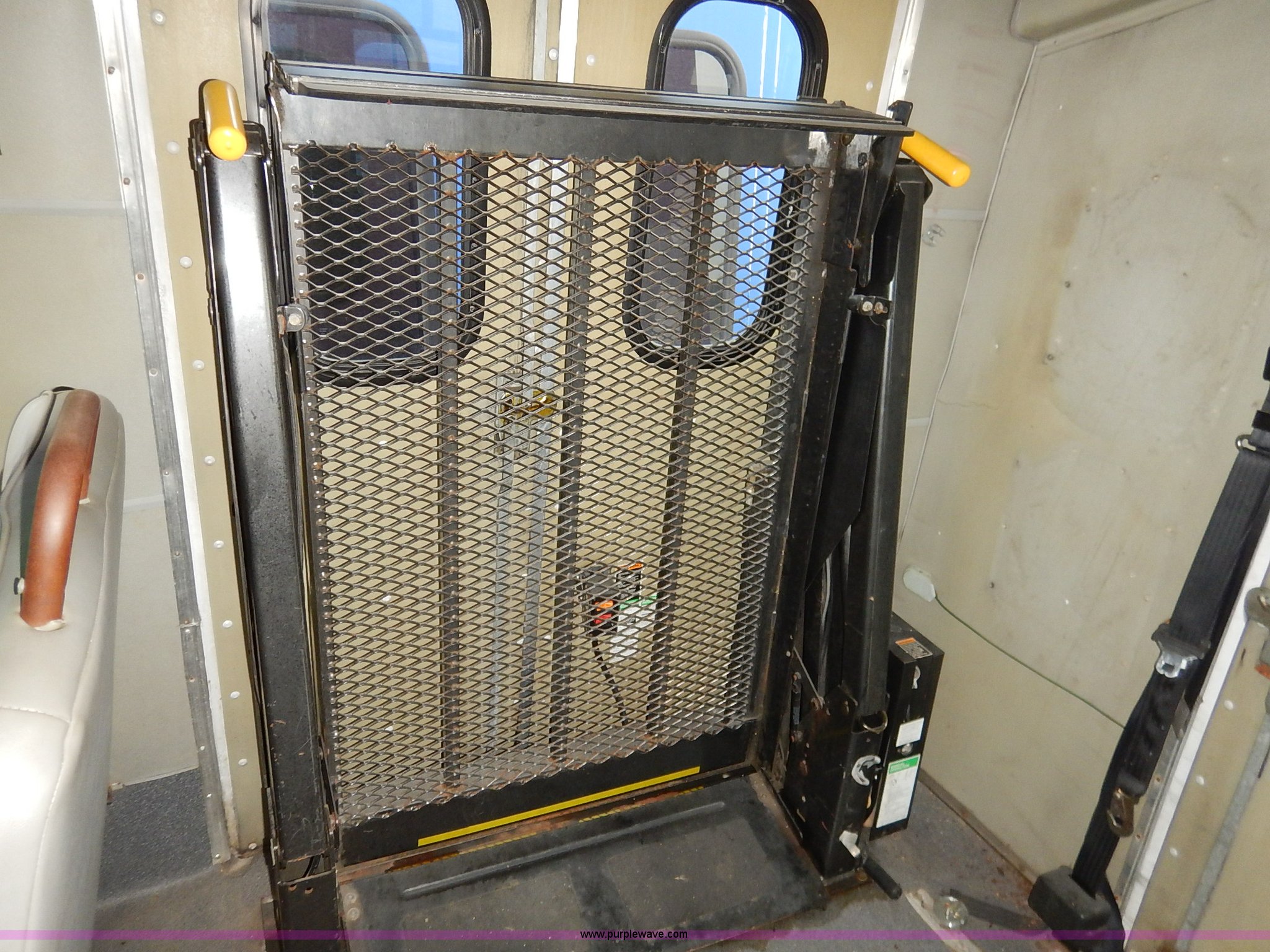 Purple Wave is selling a used Bus in Kansas. This item is a 2003 Ford 801 transit bus with the following: 343,214 miles on odometer, 7.3L V8 OHV 16V turbo diesel engine, Automatic transmission, AC and heat, Tilt, Cruise, AM/FM/cassette, Manual windows and locks, Cloth driver interior, Vinyl passenger interior, OEM radio band, 16 passenger capacity, Backup alarm, Wheelchair lift, Rear egress, 225/75R16 tires, Interior/exterior cosmetic damage, Paint chipping and faded, Dead battery, Visor missing, Unknown operating condition, Unit# TRN96