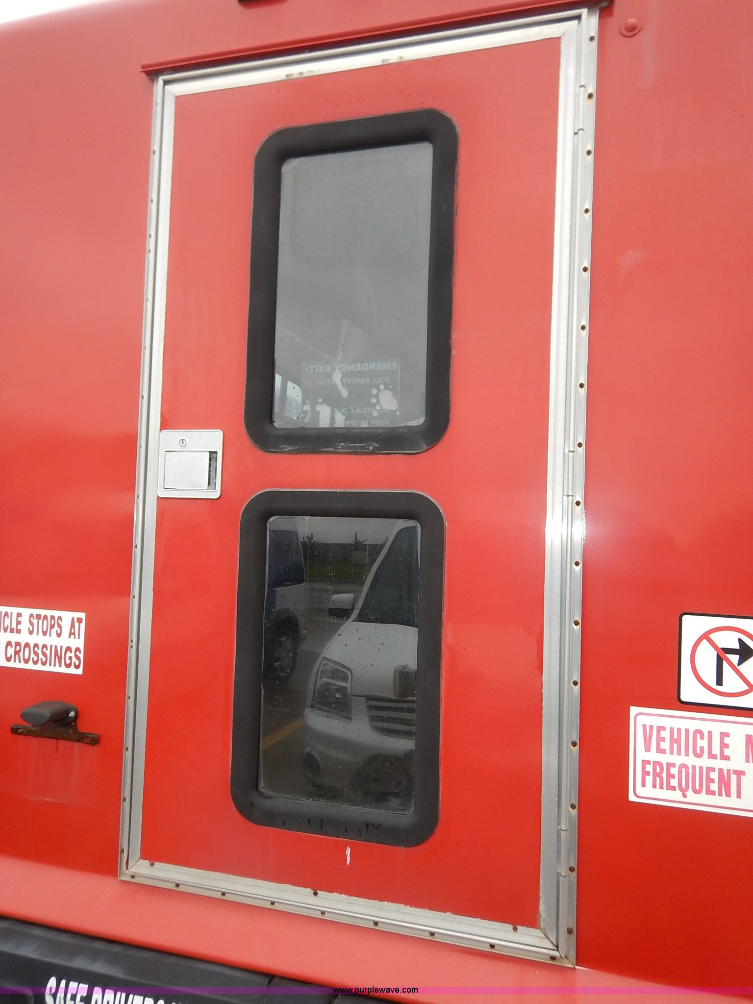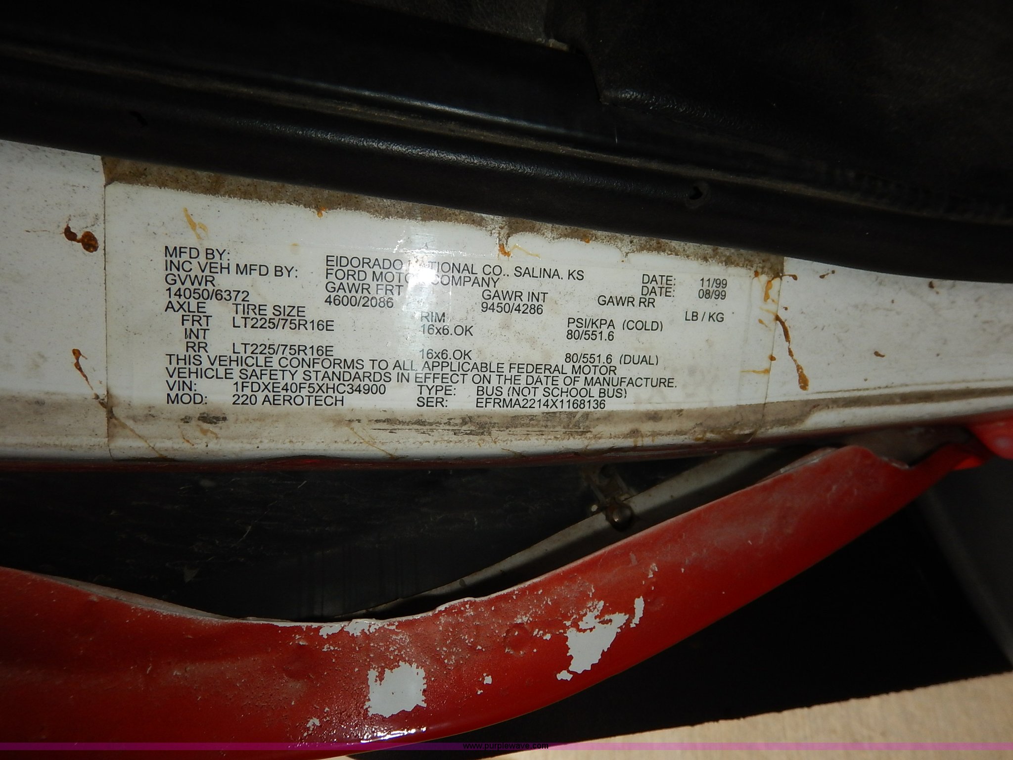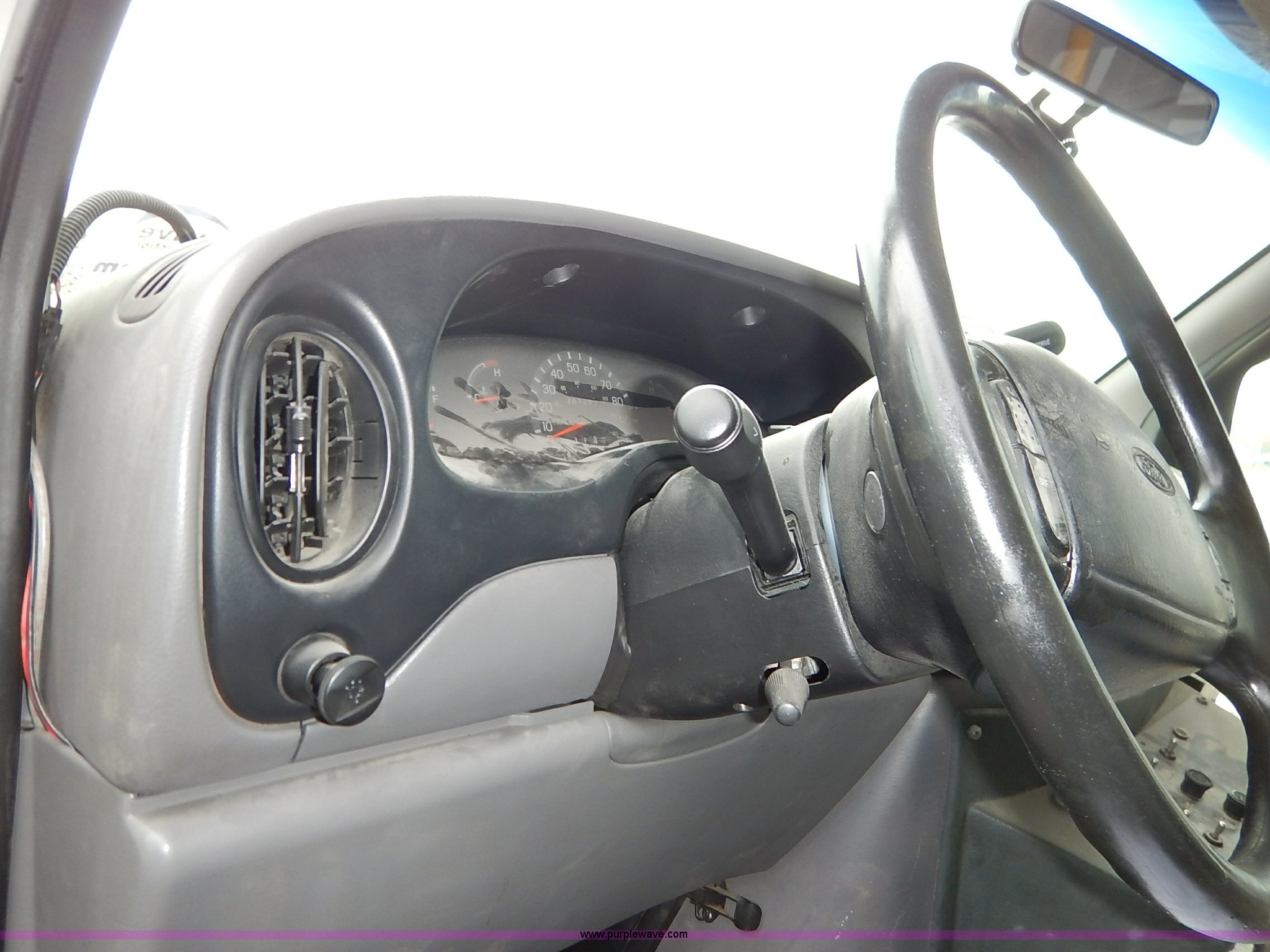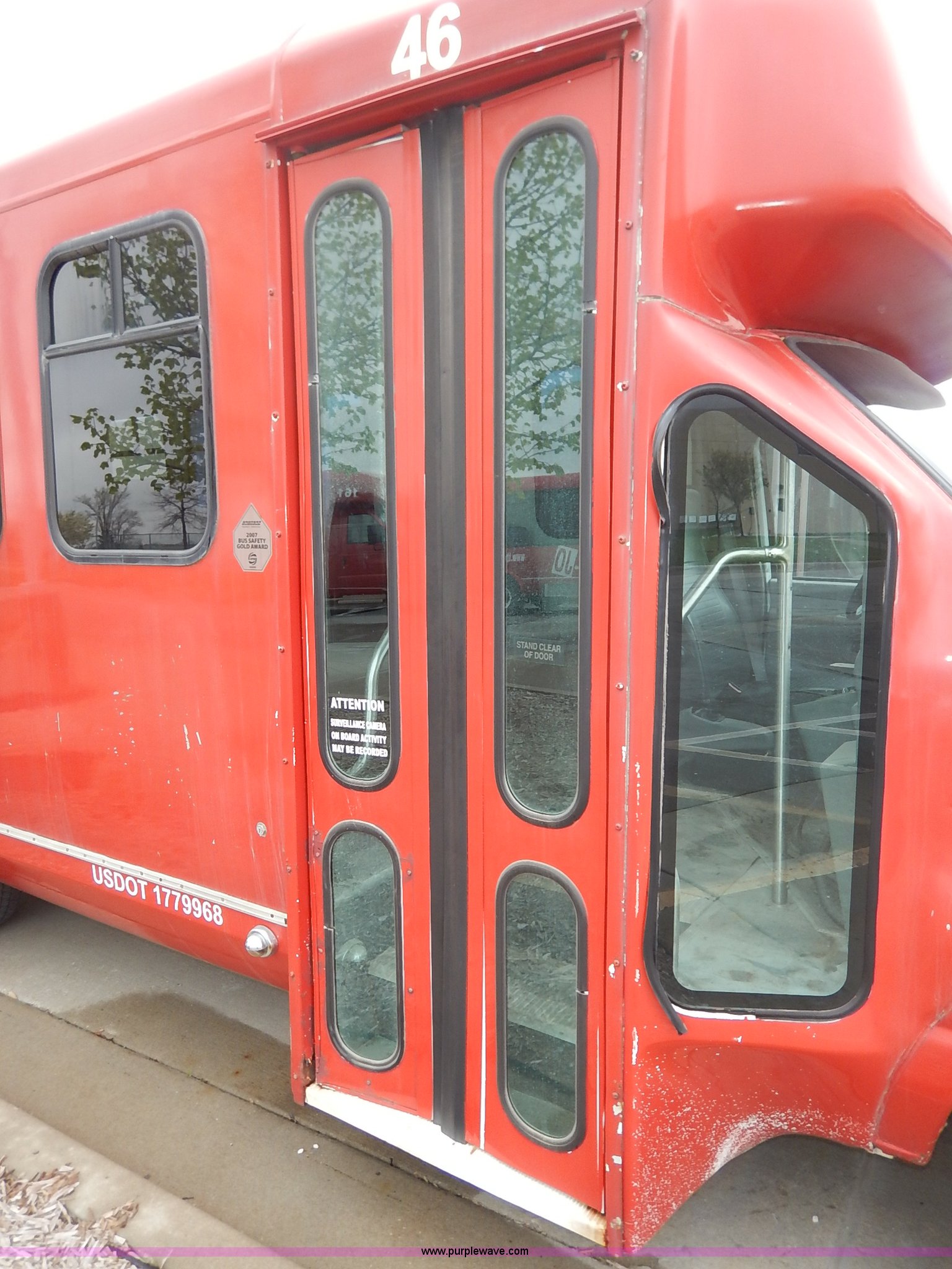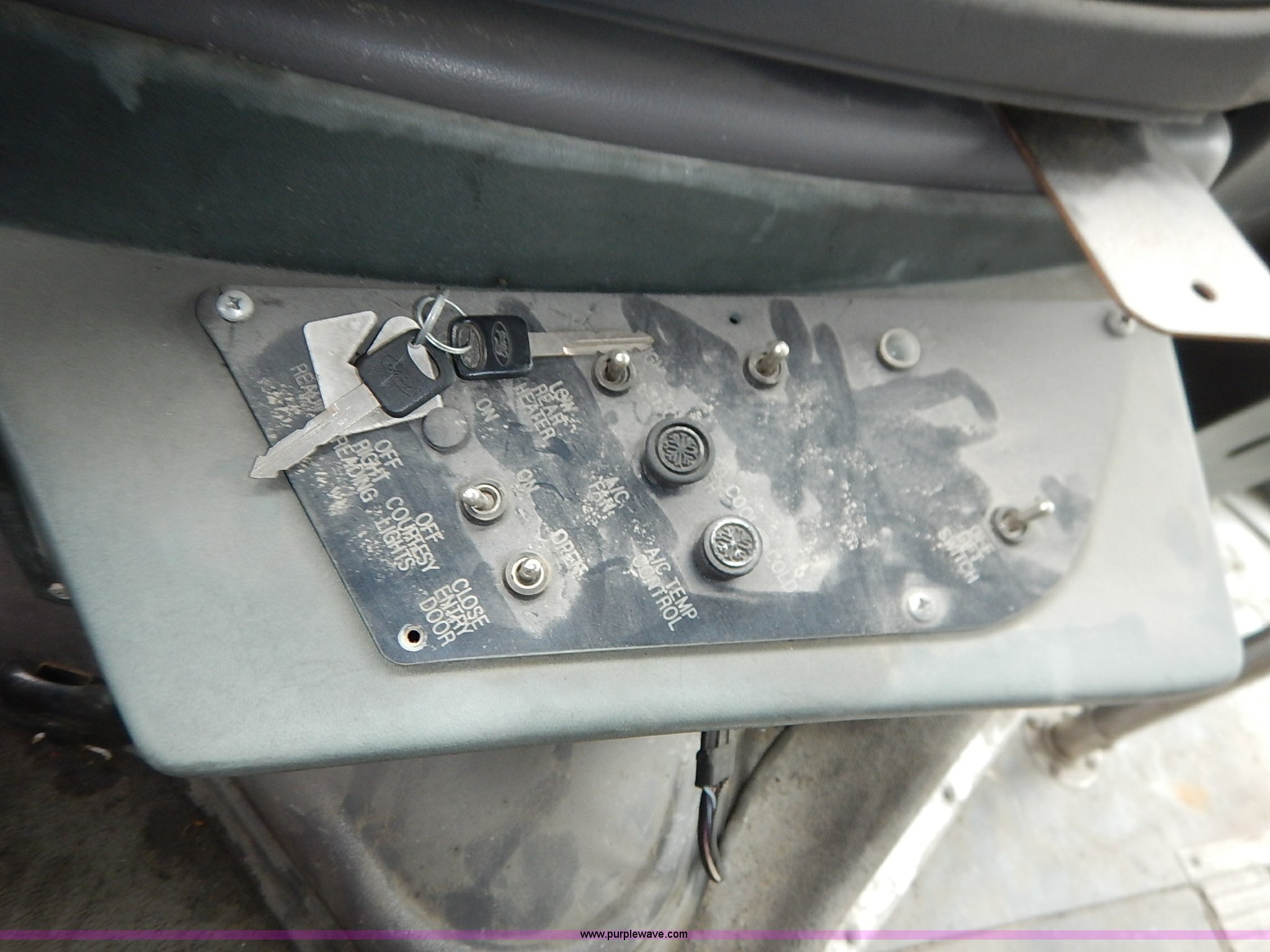 Purple Wave is selling a used Bus in Kansas. This item is a 2000 Ford 801 transit bus with the following: 207,291 miles on odometer, 7.3L V8 OHV 16V turbo diesel engine, Automatic transmission, AC and heat, Tilt, Cruise, AM/FM/cassette, Manual windows and locks, Vinyl interior, OEM radio band, 14 passenger capacity, Backup alarm, Wheel chair lift, Rear egress, 225/75R16 tires, Interior/exterior cosmetic damage, Paint chipping, Dents, Scratches, Dead battery, Unknown operating condition, Unit# TRN46