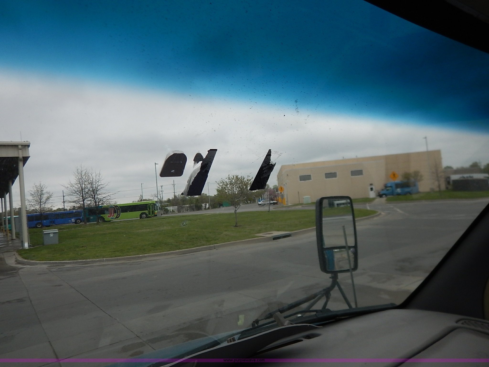 2003 Ford 801 transit bus. 313,447 miles on odometer, 7.3L V8 OHV 16V turbo diesel engine, Automatic transmission, AC and heat, Tilt, Cruise Control buttons missing, AM/FM/cassette, Manual windows and locks, Power driver seat, Cloth driver interior, OEM radio band, 16 passenger capacity, Backup alarm, Wheelchair lift, Rear egress, 225/75R16 tires, Interior/exterior cosmetic damage, Paint chipping, Cosmetic damage to rear bumper, Driver side mirror damage, Cracked windshield, Rear view mirror missing, Lower dash panel missing, Unit# TRN105. 1FDXE45F83HA67614. Johnson County. Olathe, KS 66061