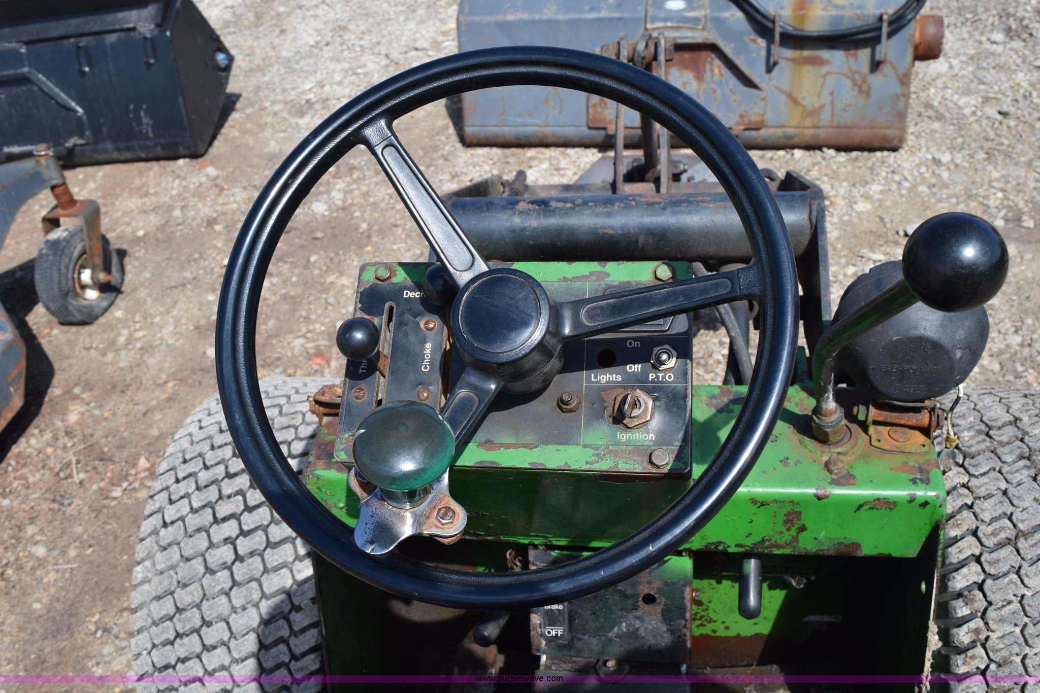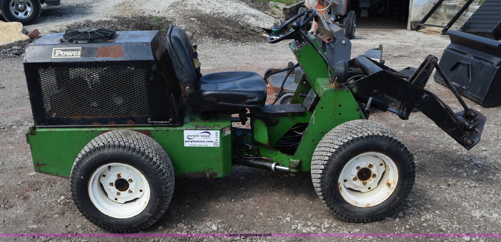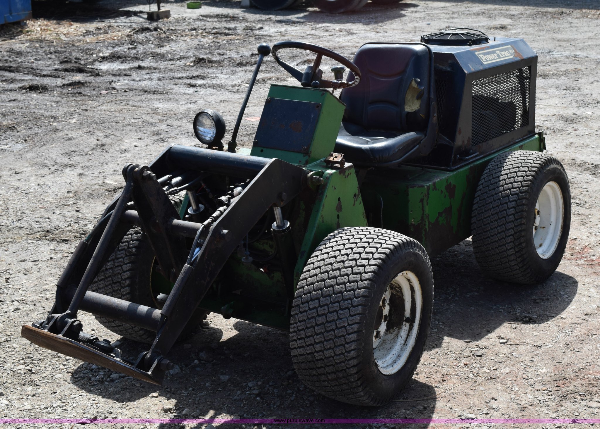 Purple Wave is selling a used Tractor in Kansas. This item is a Power Trac PT-425 utility tractor with the following: 610 hours on meter, Kohler single cylinder gas engine, Serial 12716, 23 x 10.50-12 tires, 4'W tiller, 4'W aerator, 5'W blade, 4'W bucket, 3'L trencher, 48"W rotary mower