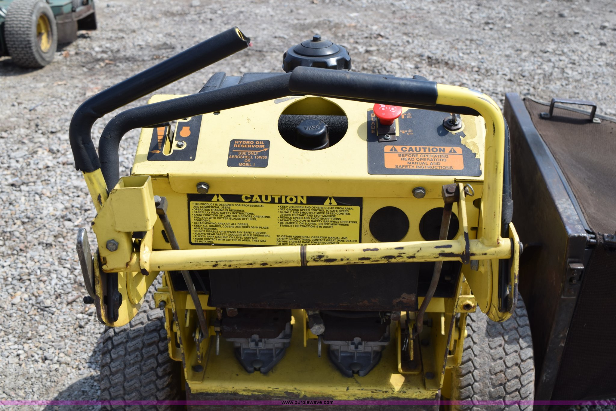 Purple Wave is selling a used Lawn Mower in Kansas. This item is a Great Dane riding lawn mower with the following: 36" cutting capacity, Kawasaki FC420V gas engine, Hydrostatic transmission, 6.50-8 tires