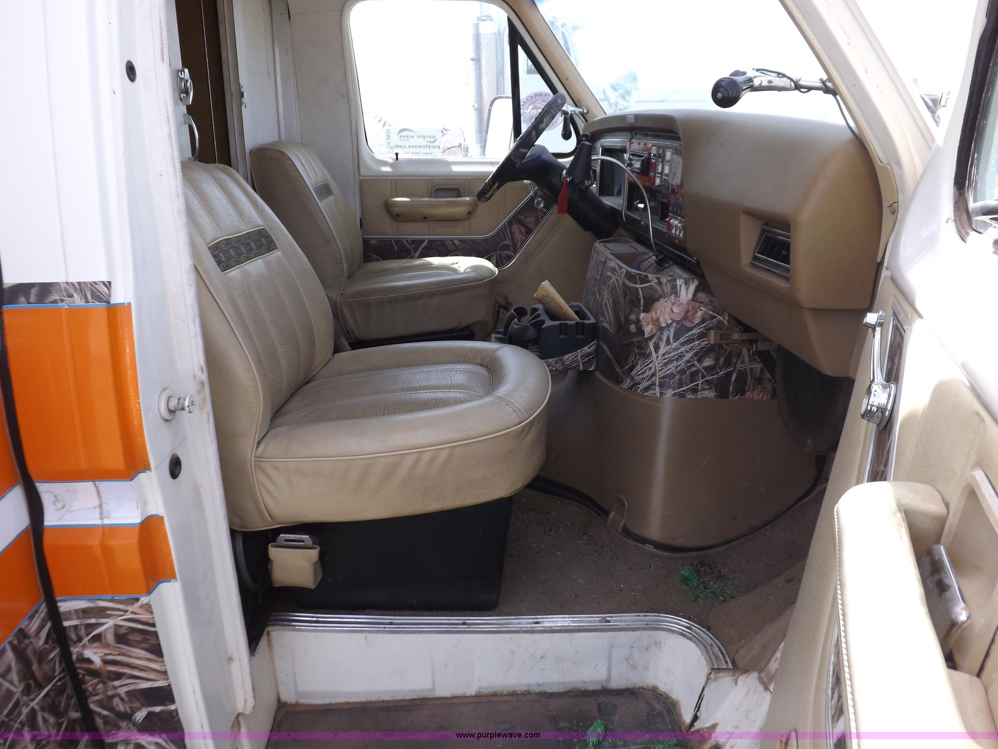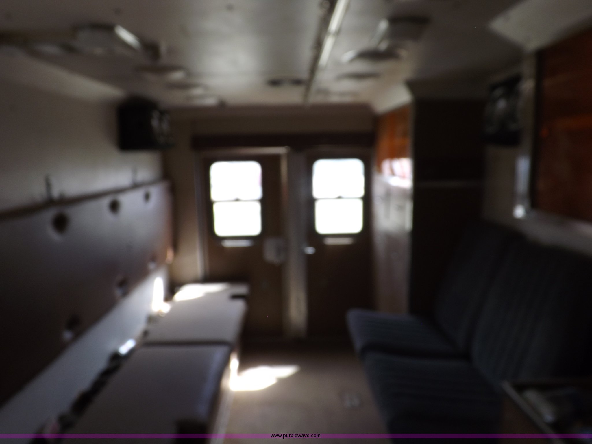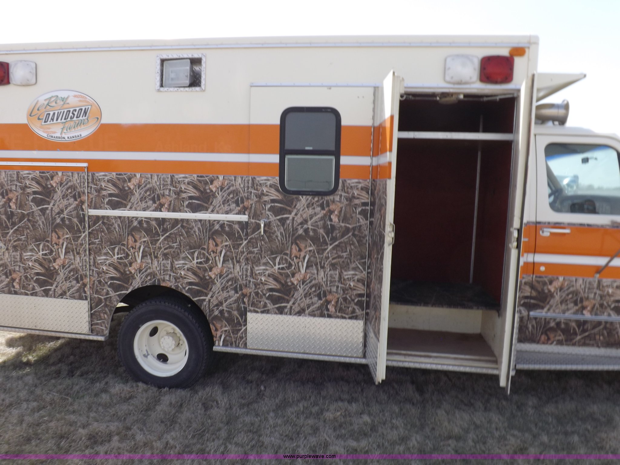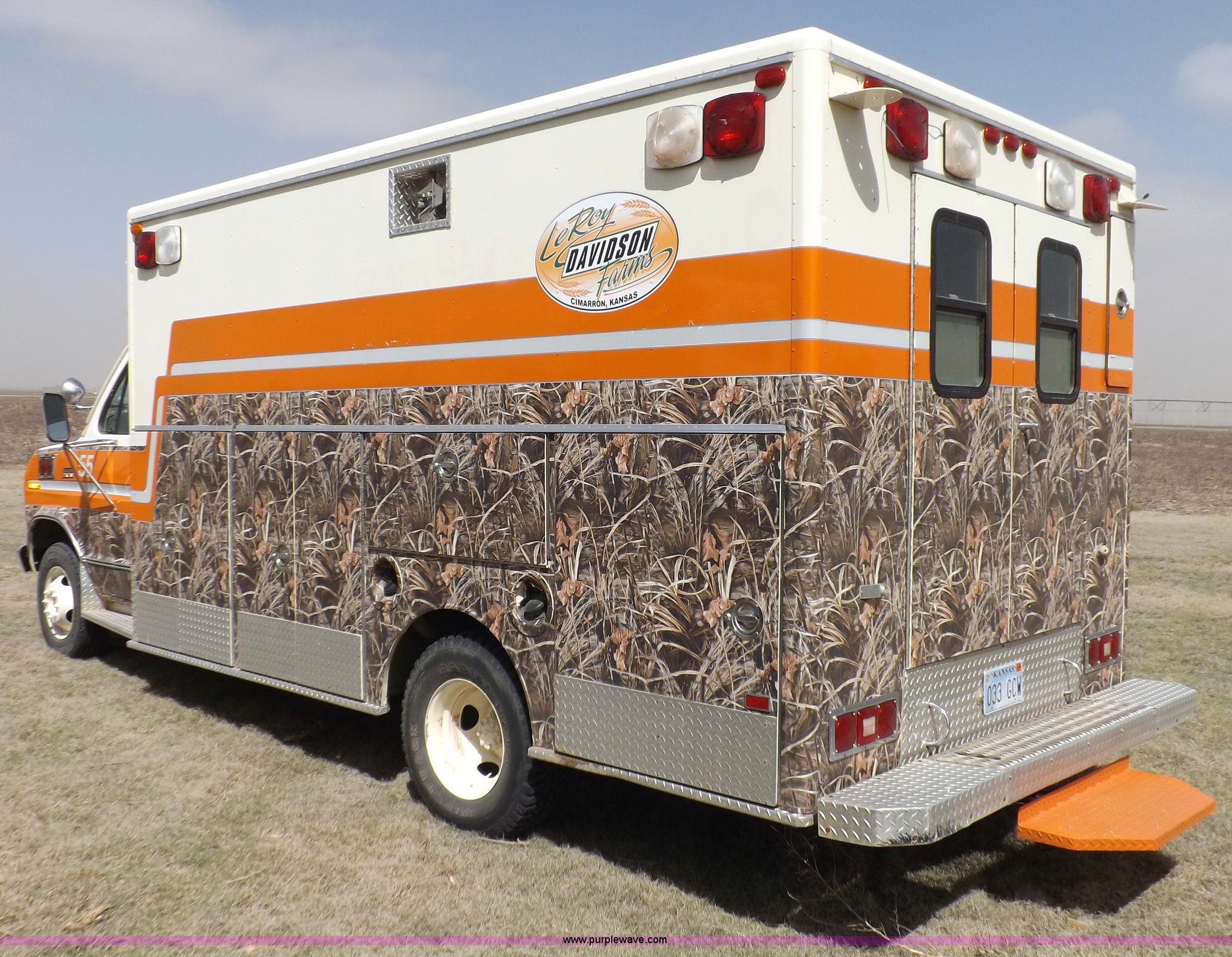 Purple Wave is selling a used Fire Truck or Emergency Vehicle in Kansas. This item is a 1980 Ford Chateau ambulance with the following: 83,133 miles on odometer, Eight cylinder gas engine, Automatic transmission, AC and heat, AM/FM/CD, Manual windows and locks, Vinyl interior, EVF ambulance body, Model M421/E37HGD5860, Dual spotlights, (6) exterior storage compartments, Vinyl interior, Master electric disconnect, Rear step, Dual fuel tanks, Receiver hitch, 158" wheelbase, 225/75R16 tires, GVWR 11,000 lbs, FAWR 3,850 lbs, RAWR 7,400 lbs, Chipped windshield