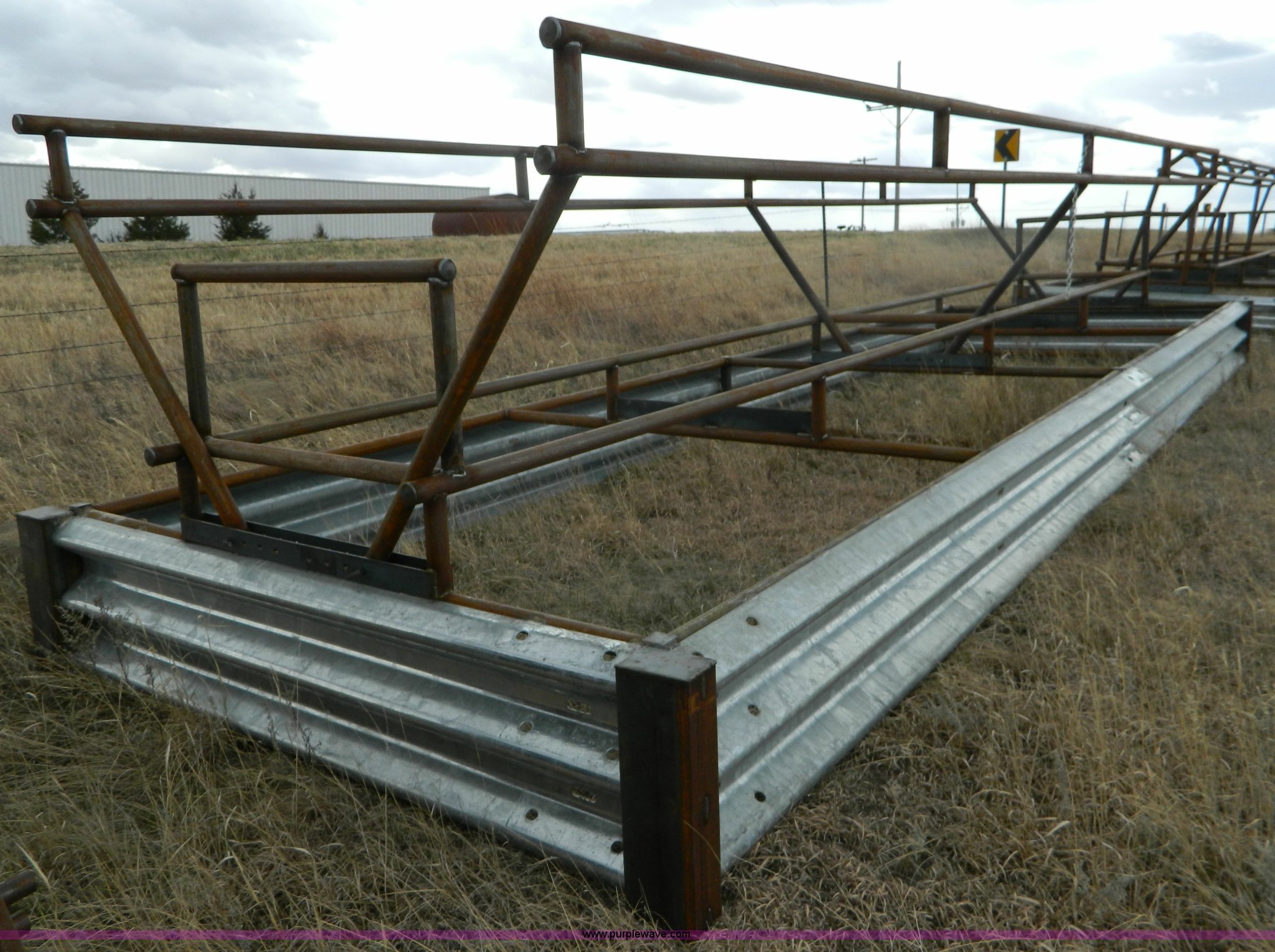 Feed bunk. 26'L x 93"W, (4) adjustable rack settings, Accomodates bale bed filling and mixed ration feed truck with bale feeding and truck feeding simultaneously, (4) bale capacity. Representative photo. LJ Enterprizes. 1807 W 1300 Rd. Logan, KS 67646