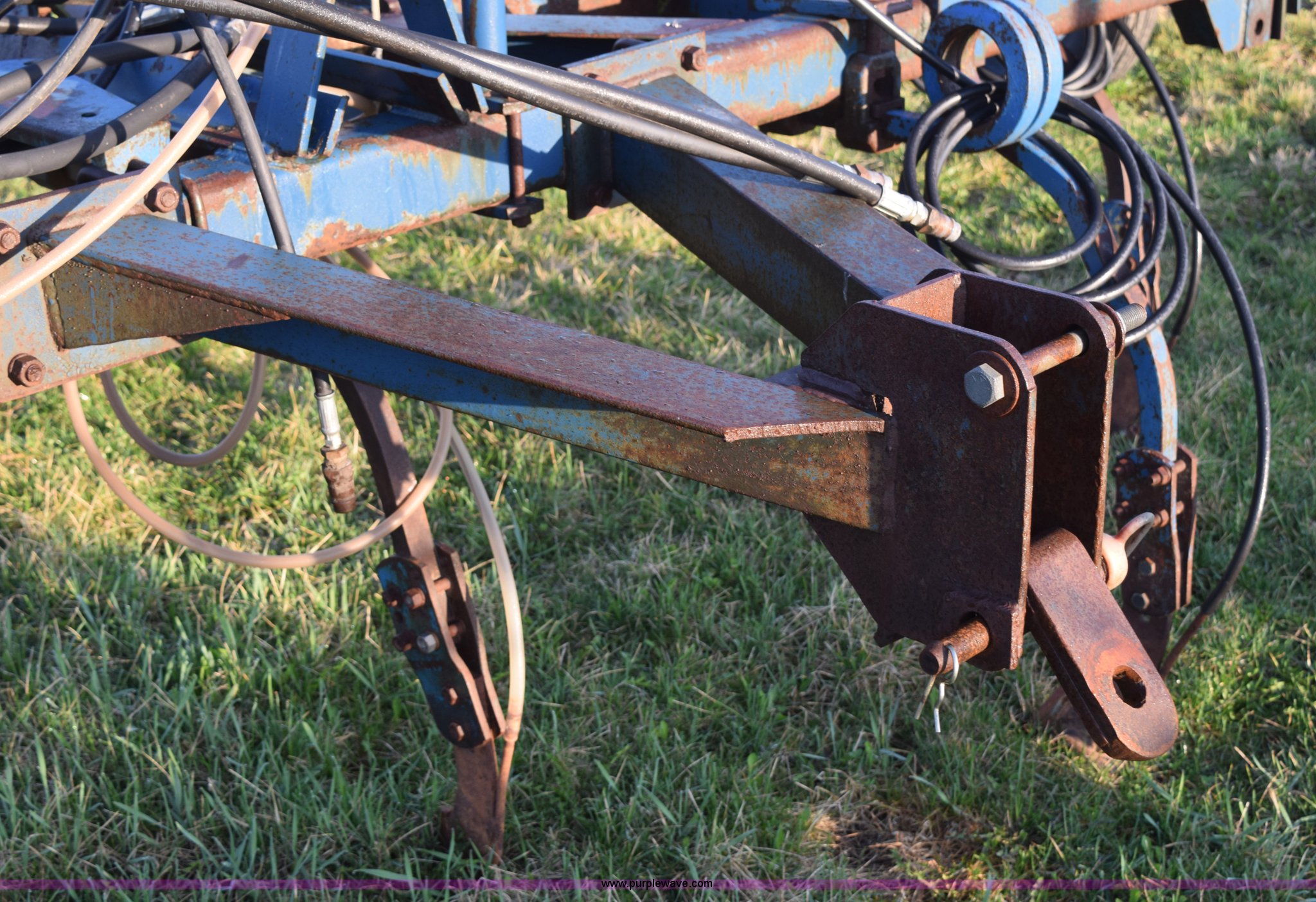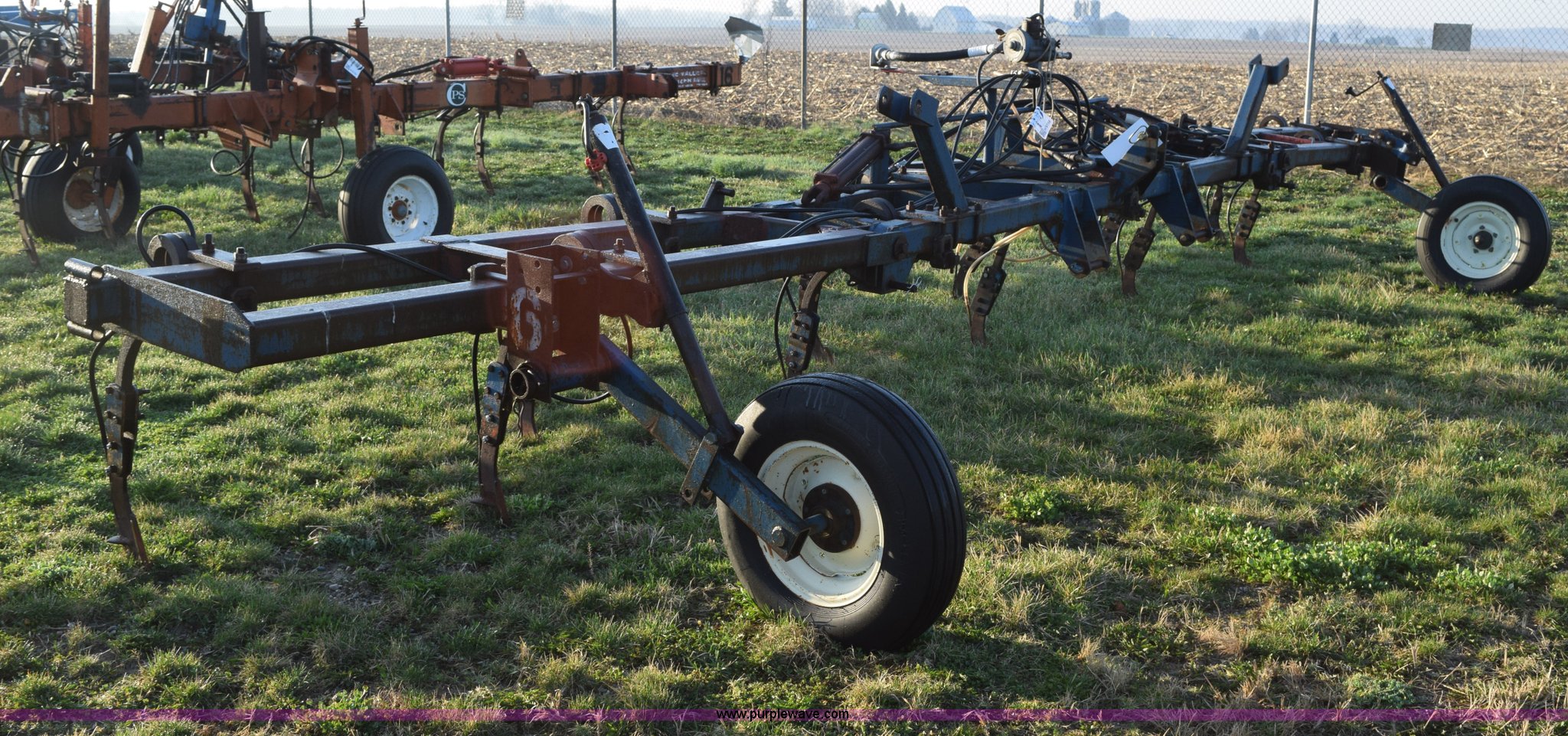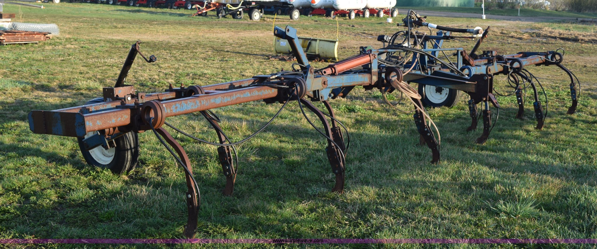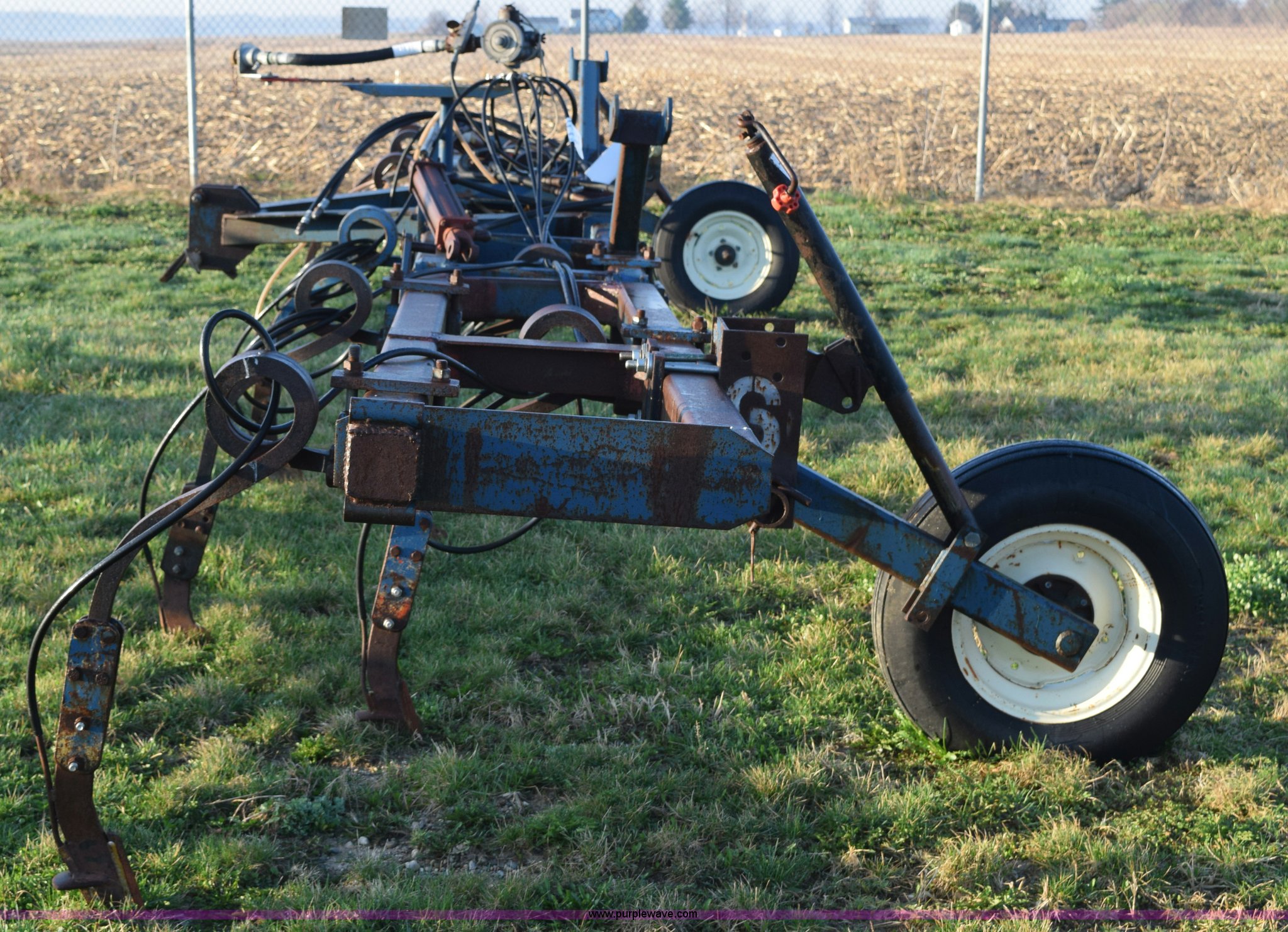 Purple Wave is selling a used Applicator Attach. in Michigan. This item is a Anhydrous applicator with the following: Approx. 27'W toolbar, 30" spacing, 11 shank, John Blue pump, Hydraulic fold, Three point, 7.60-15 tires, Unit# 6