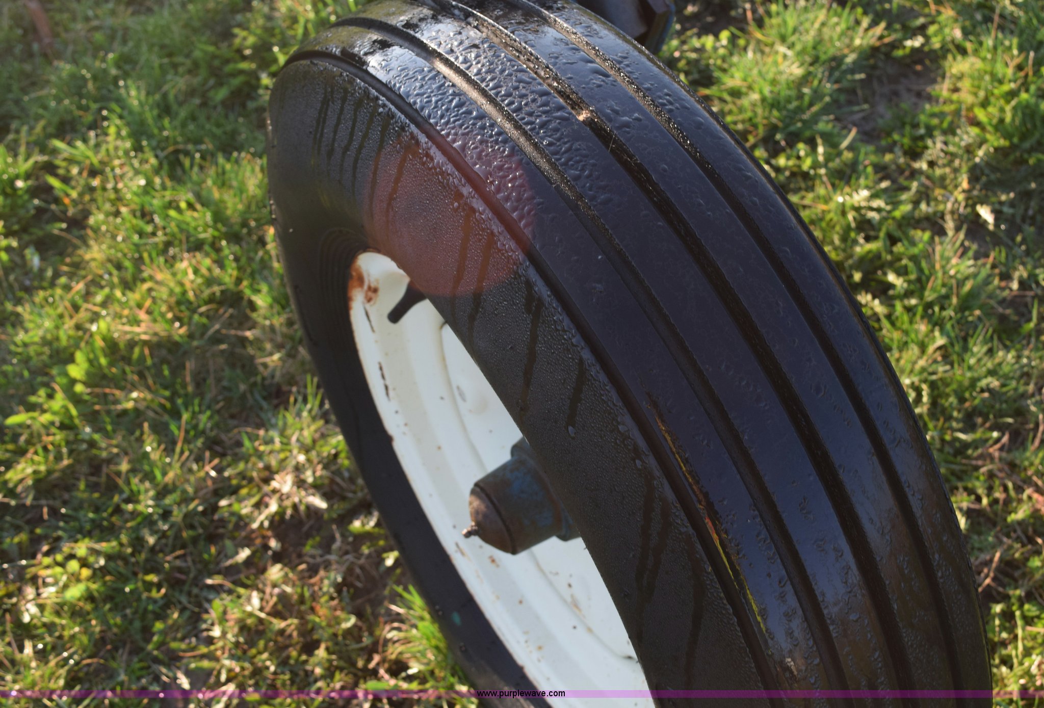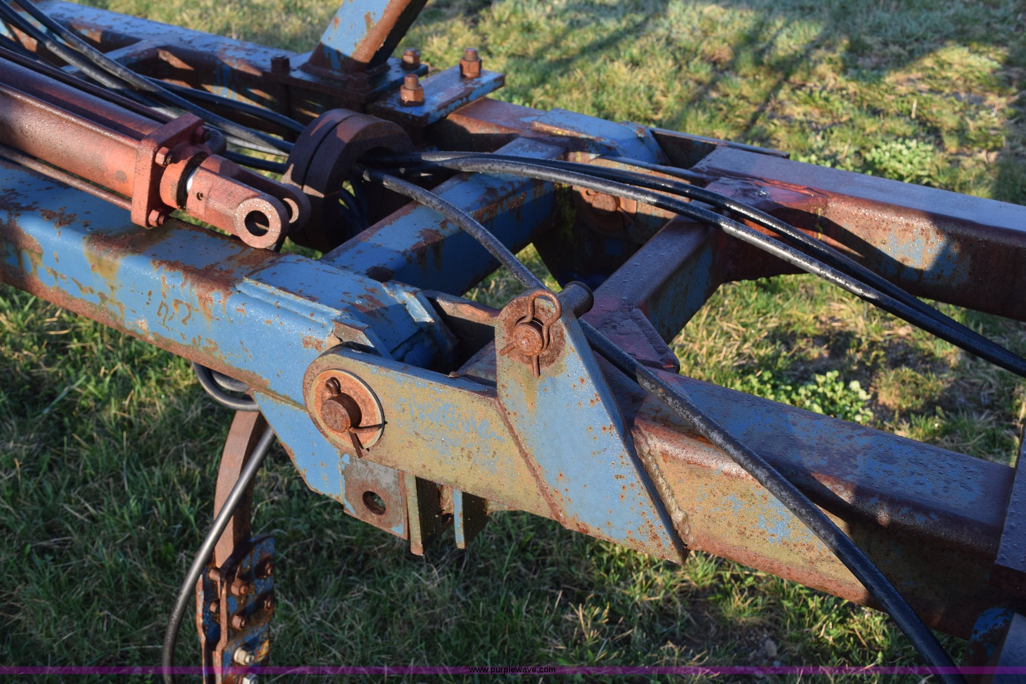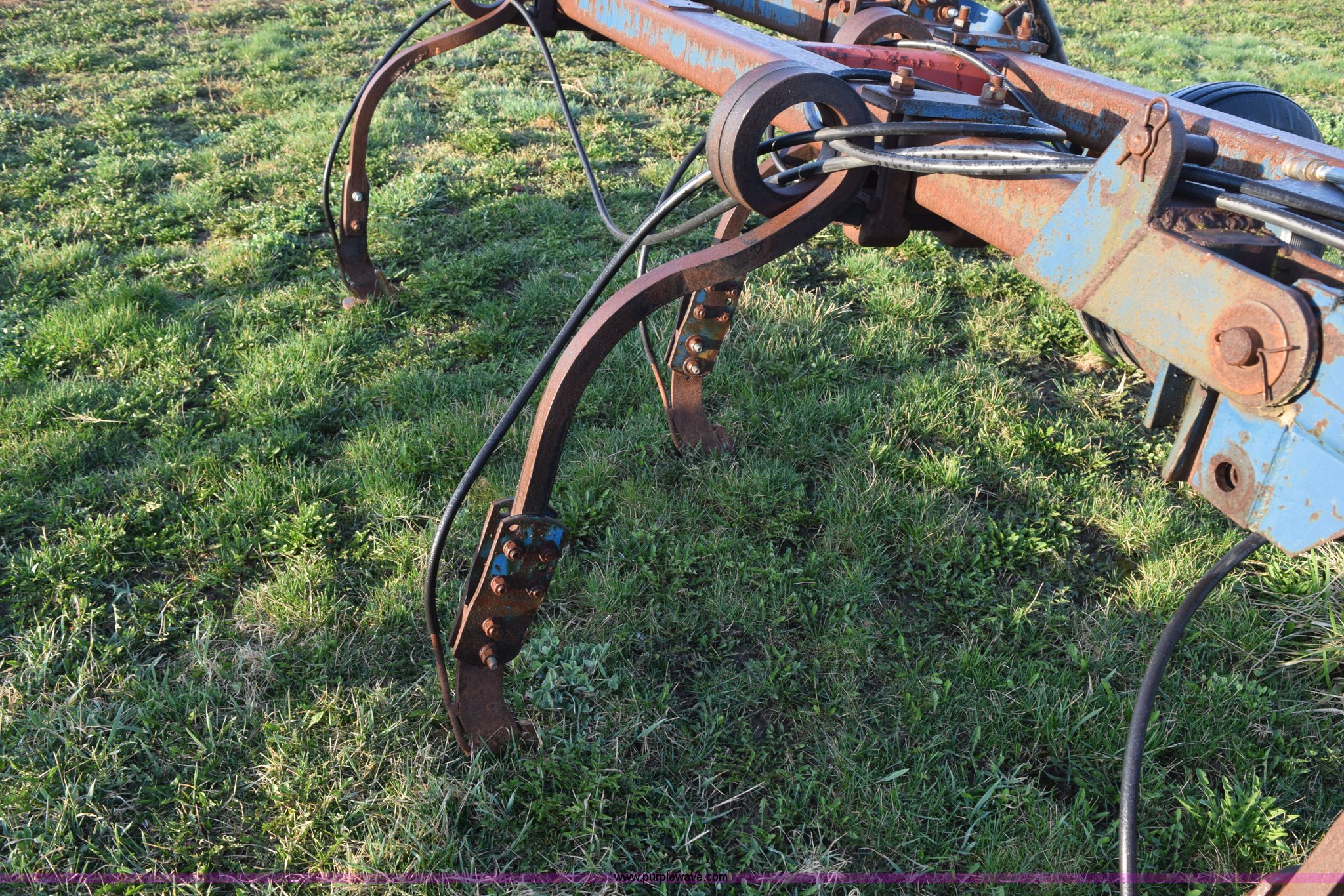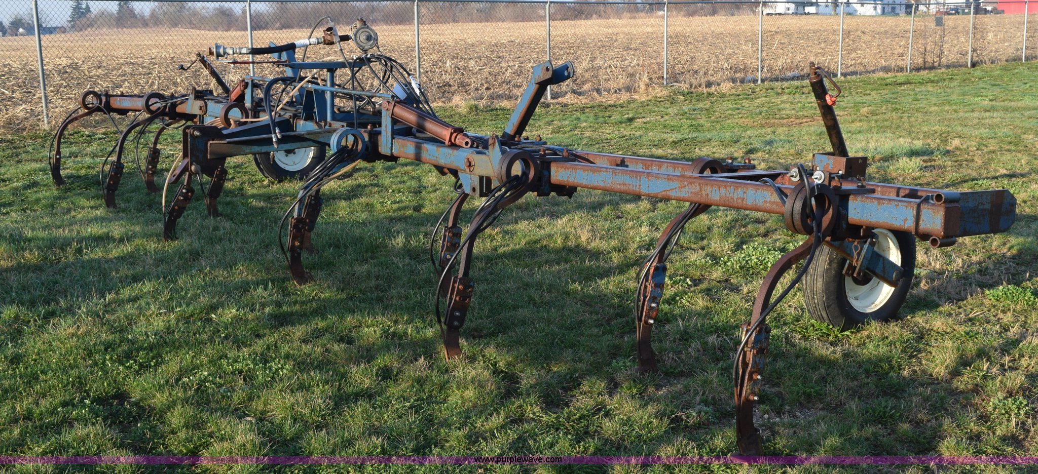 Purple Wave is selling a used Applicator Attach. in Michigan. This item is a Anhydrous applicator with the following: Approx. 27'W toolbar, 30" spacing, 11 shank, John Blue pump, Hydraulic fold, Three point, 7.60-15 tires, Unit# 6