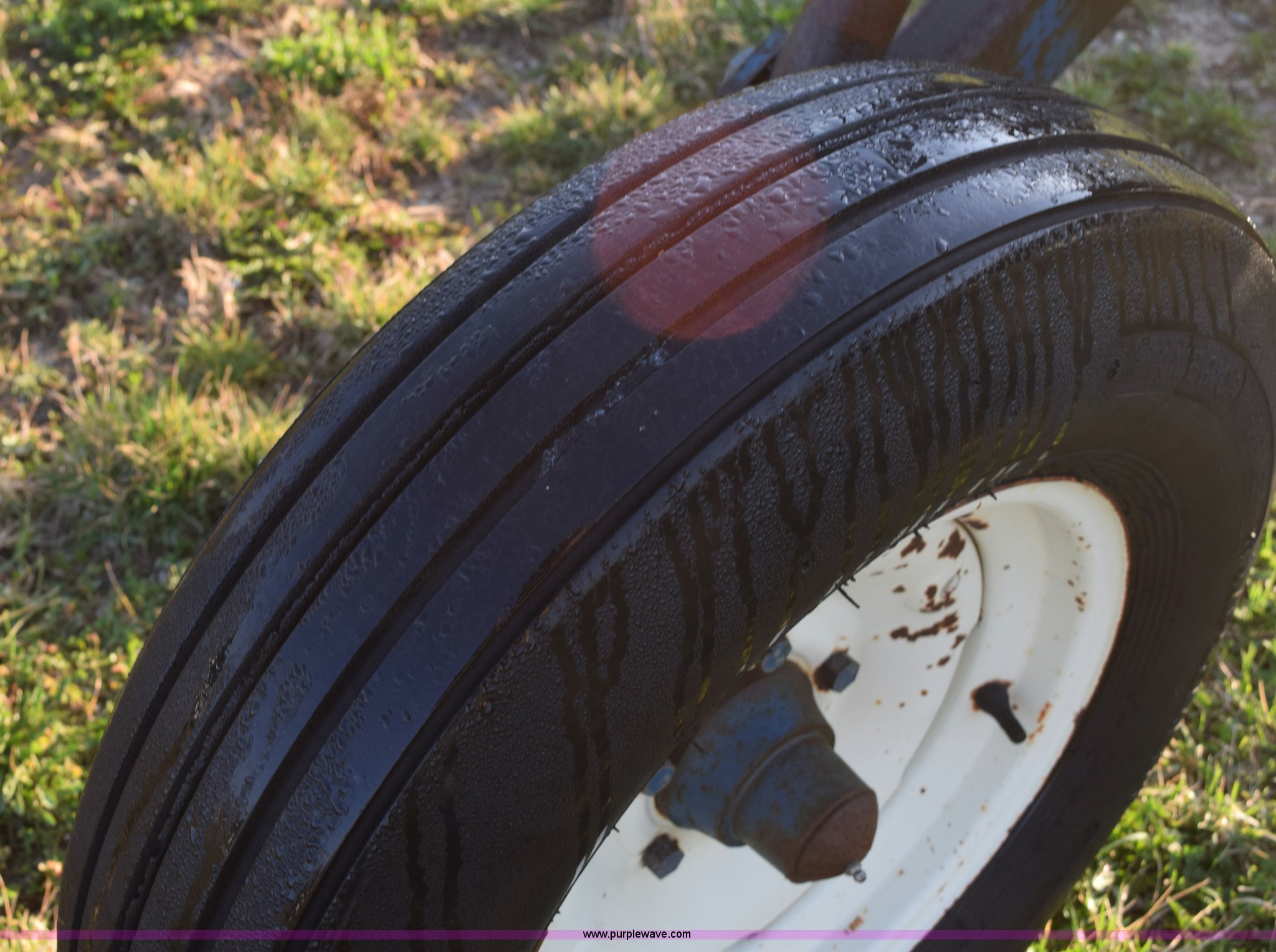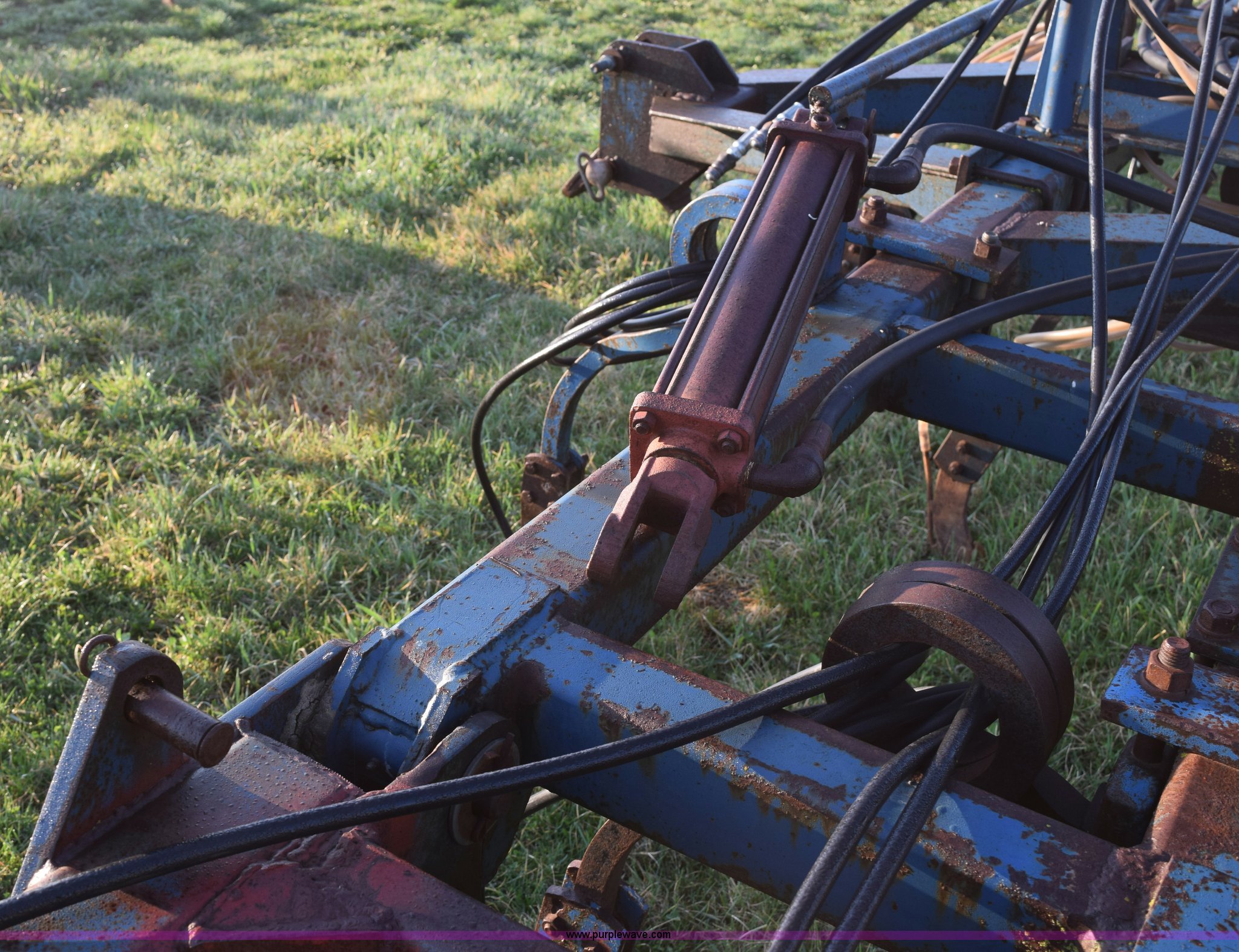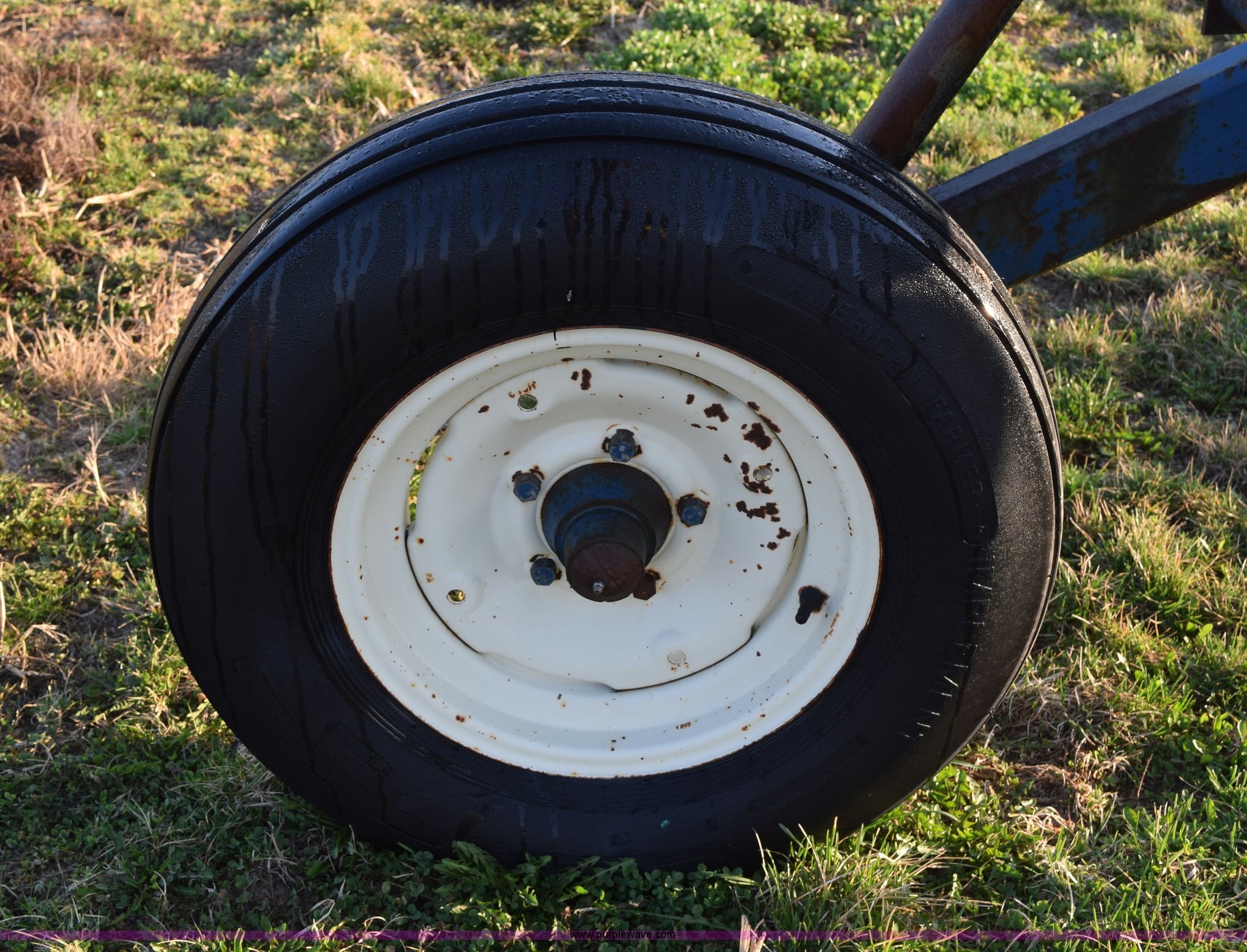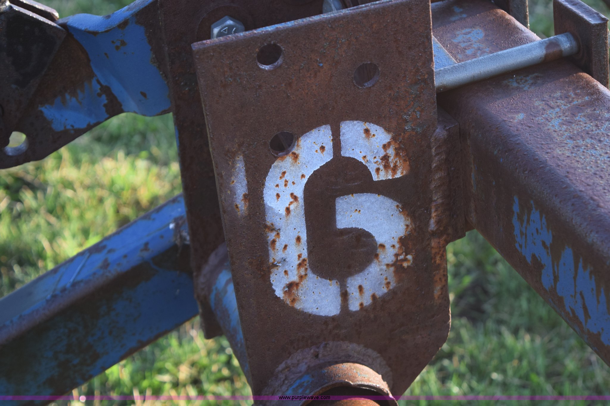 Purple Wave is selling a used Applicator Attach. in Michigan. This item is a Anhydrous applicator with the following: Approx. 27'W toolbar, 30" spacing, 11 shank, John Blue pump, Hydraulic fold, Three point, 7.60-15 tires, Unit# 6