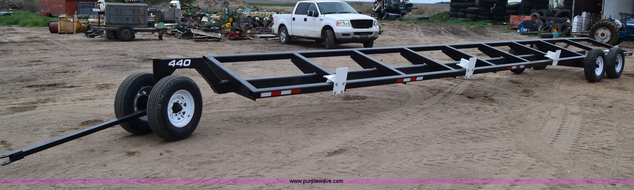 Purple Wave is selling a used Ag Equip. or Header Trailer in Kansas. This item is a Header trailer with the following: Model 440, 40'L x 54"W, 6" x 6" main center frame beam, 4" x 4" header frame stand, Pin hitch tow tongue, Gooseneck style steer dolly axle, ST235/80R16 tires, Unused