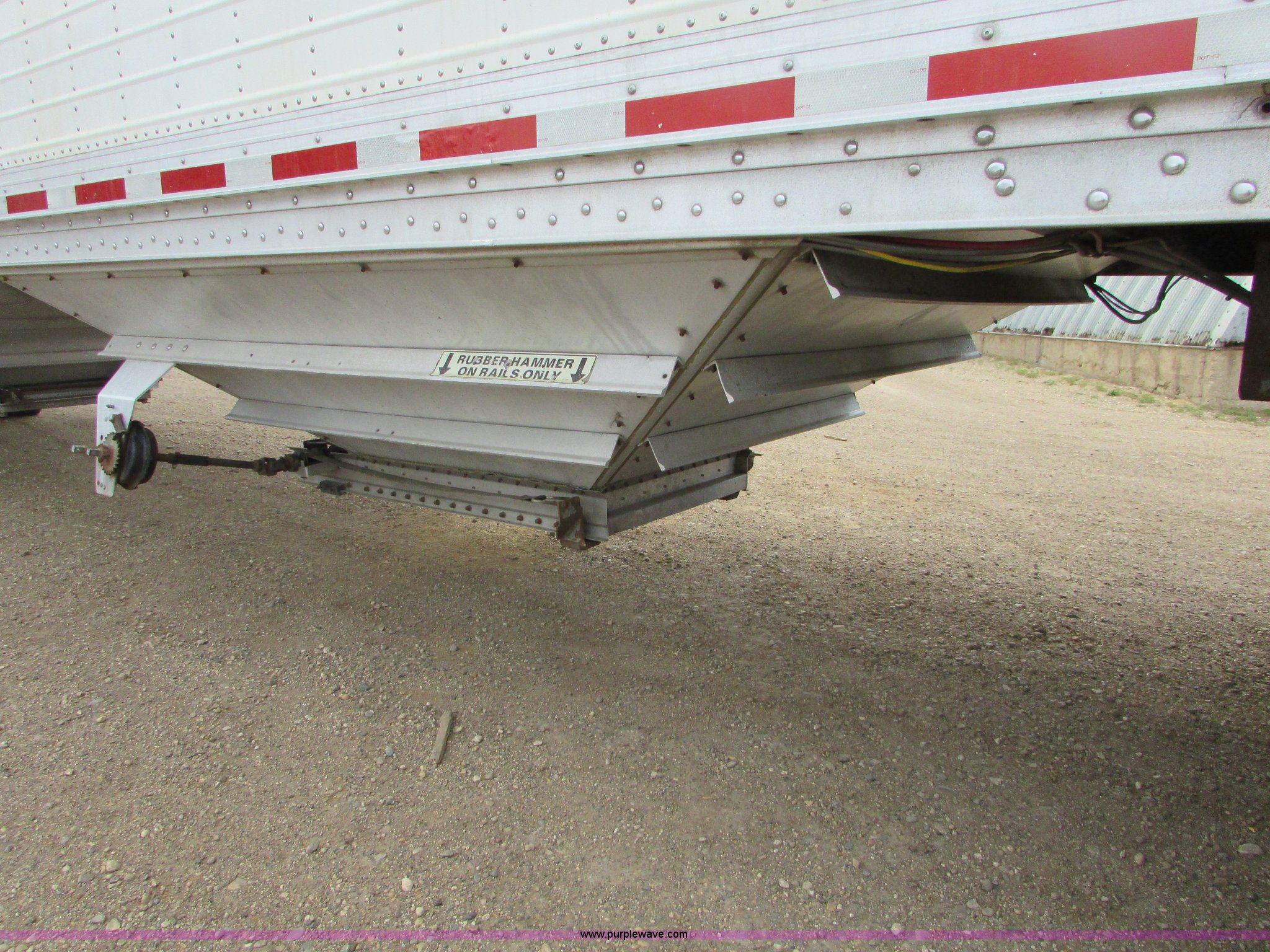 Purple Wave is selling a used Grain or Commodity Trailer in South Dakota. This item is a 2000 Wilson DWH-400C Commander double hopper grain trailer with the following: 45'L x 72"H side walls, Shur-Lok manual tarp, Manual gates, Front and rear access ladders, Air suspension, ABS, 11R24.5 tires, GVWR 65,000 lbs, GAWR 19,040 lbs
