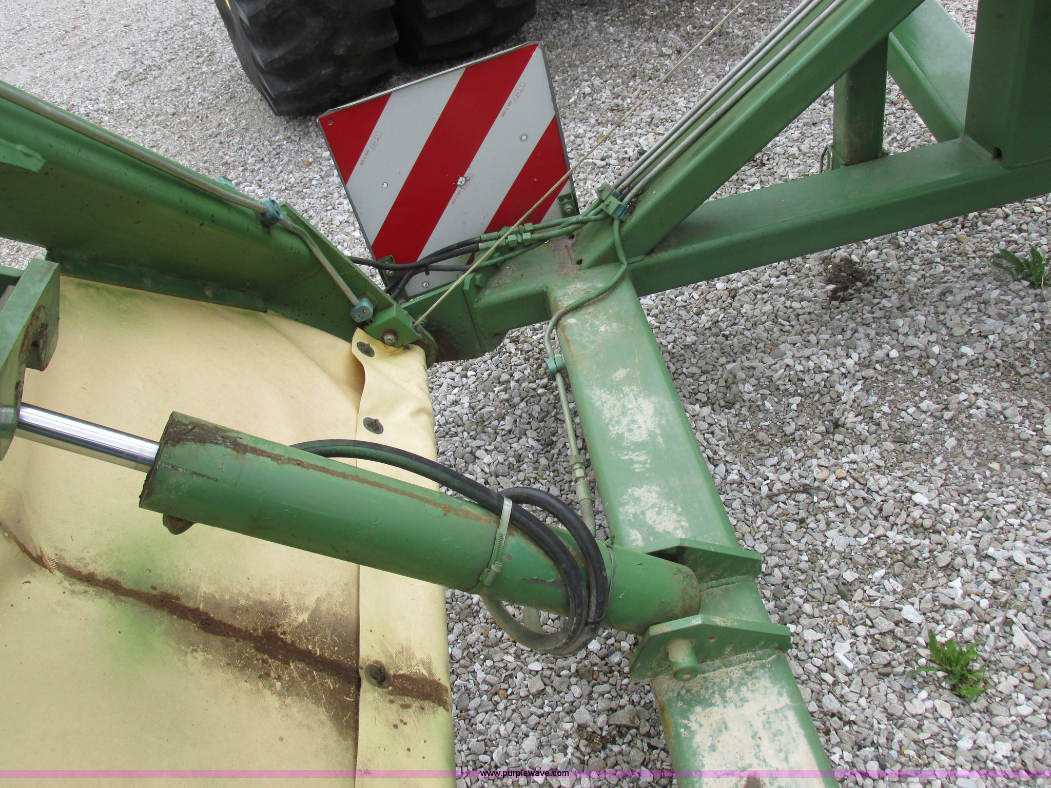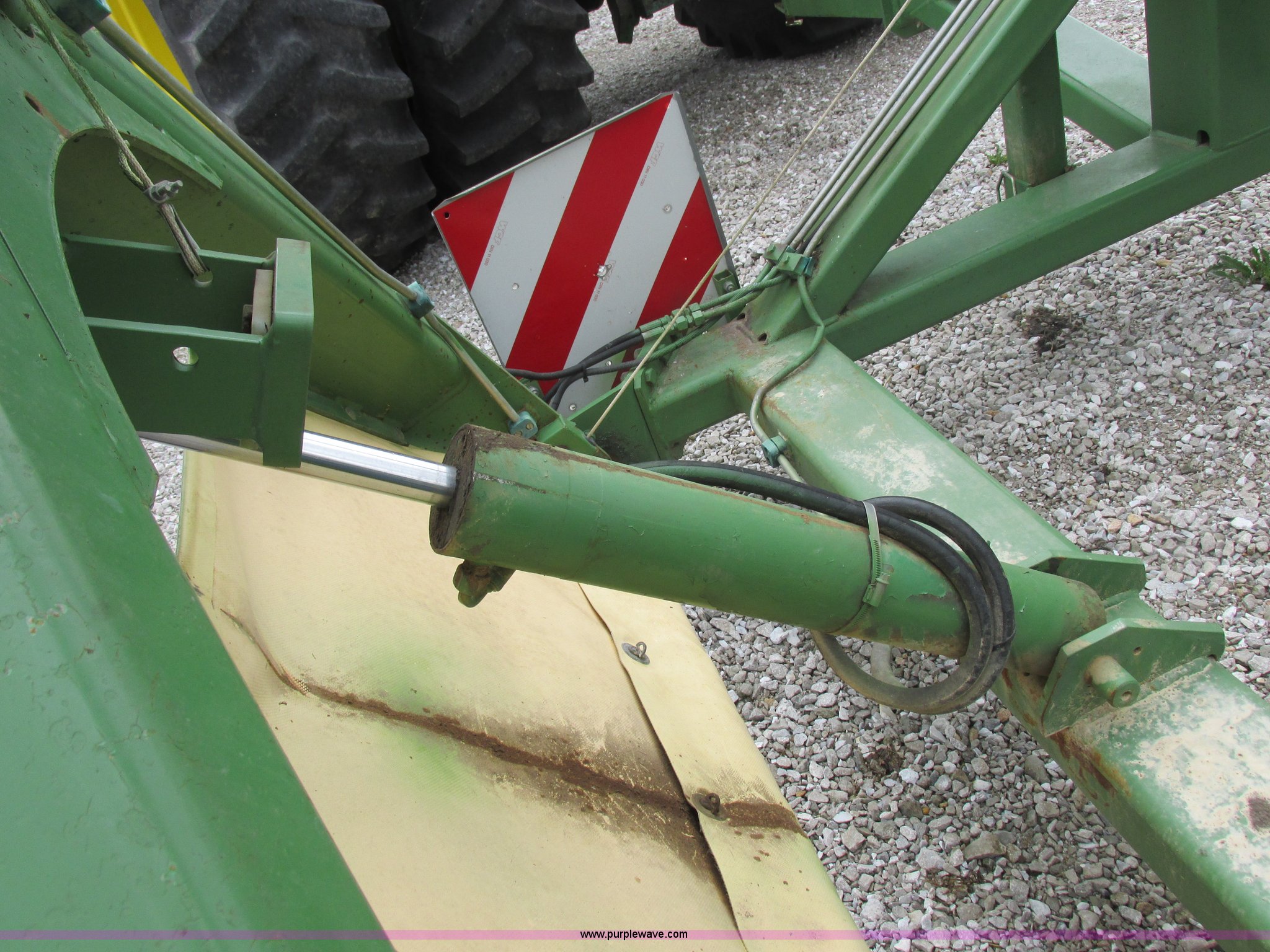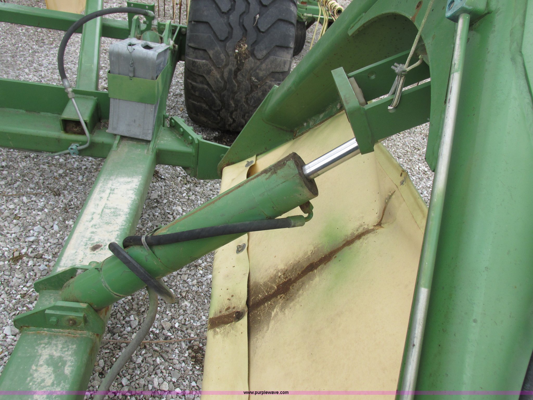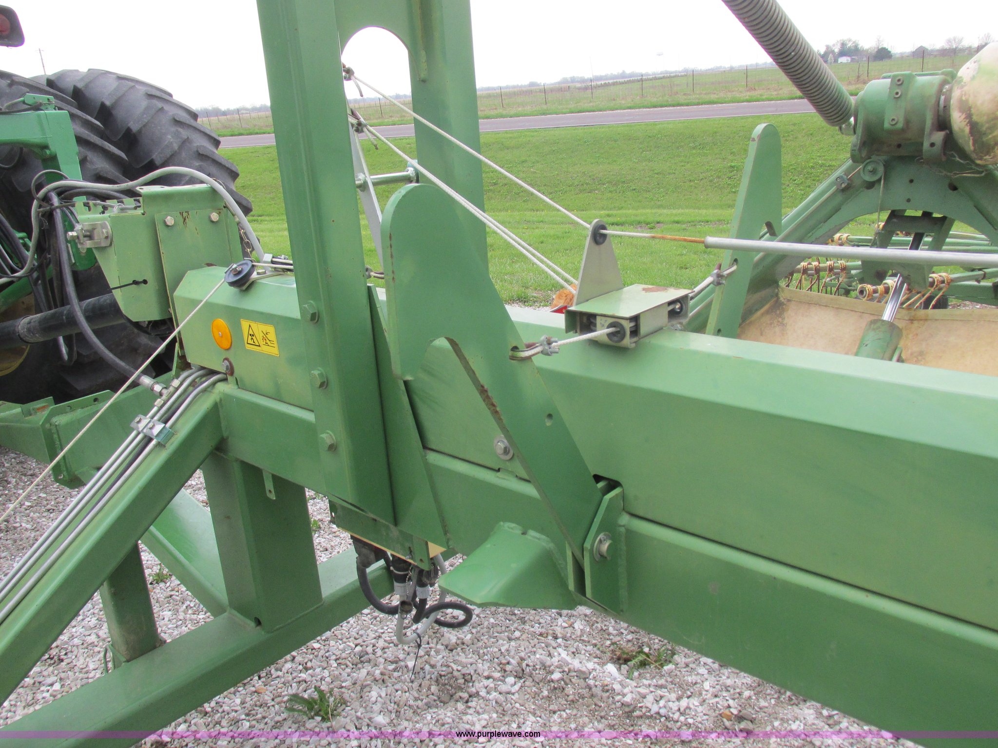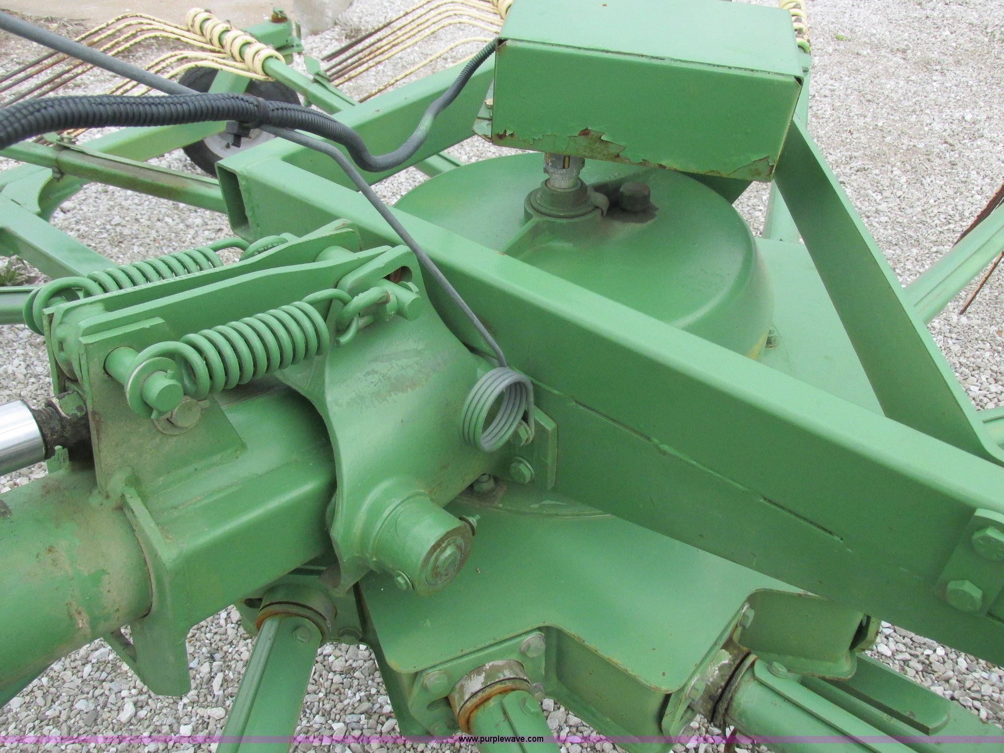 Purple Wave is selling a used Hay Rake in Missouri. This item is a Krone Swardro 1250 rotary hay rake with the following: Approx. 40' coverage path, Krone controller, Toggle switches, 540 PTO driven, Pin hitch, (4) hydraulic wheels, 500/50-17 wheels, 6.5x6.50-8 wheels