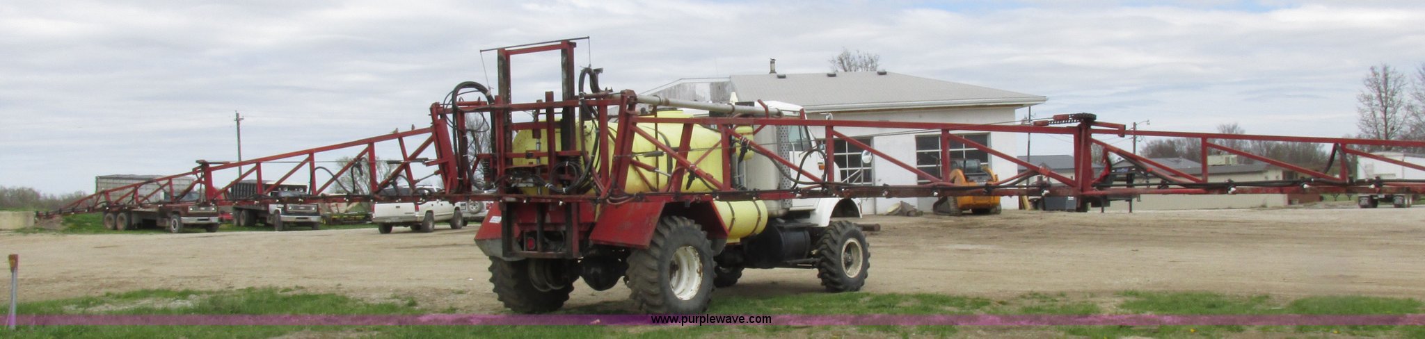 Purple Wave is selling a used Applicator Truck in Missouri. This item is a 1990 International 7100 self-propelled sprayer with the following: 120,120 miles on odometer, 922 hours on meter, International DT466 7.6L L6 diesel engine, Automatic transmission, Approx. 9.5'L x 8'H tank, Raven SCS450NM spray control system, Foam marker, Approx. 80'W boom, (7) boom sections, 20" nozzle spacing, Hydraulic boom fold, Hydraulic height adjust, 1,200 gallon tank, AC and heat, AM/FM/cassette, Air suspension seat, GPS, Dual fuel tanks, 25 and 300 gallon capacities, Spring suspension, 14.5-20 tires, 16.9R24 tires, Additional sprayer components and motor included, Interior/exterior cosmetic damage