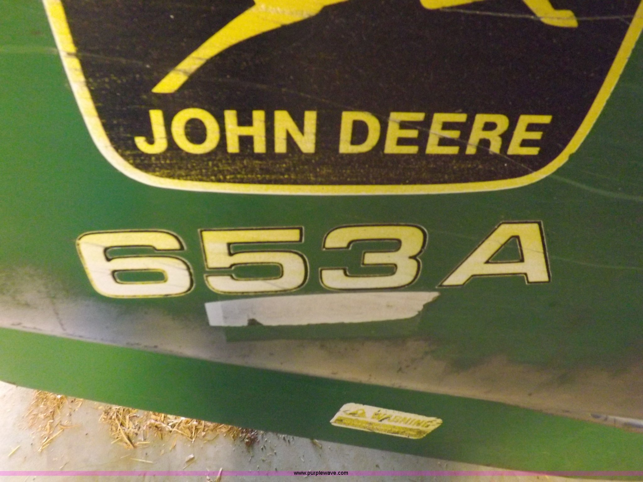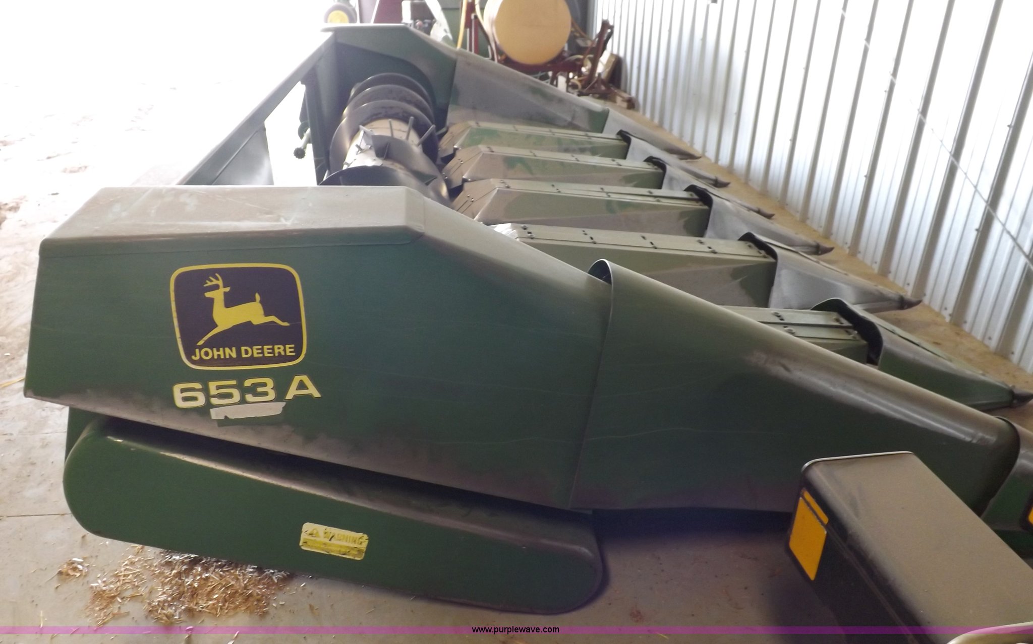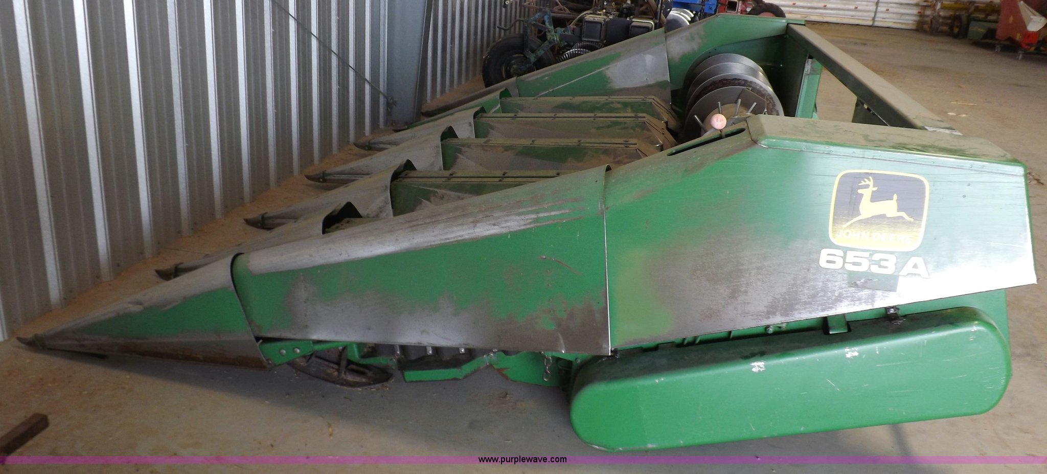 Purple Wave is selling a used Platform or Stripper Head in Kansas. This item is a John Deere 653A row crop head with the following: 15'W, Six row, 30" spacing, Serial 428912