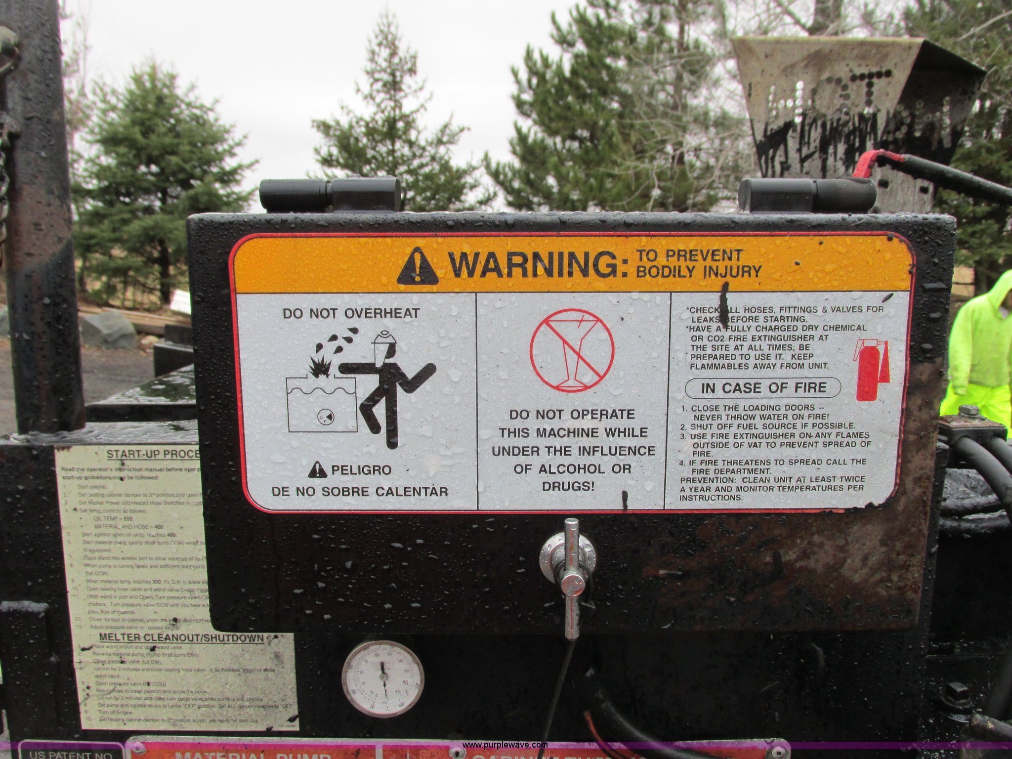 Purple Wave is selling a used Pot Hole Patcher in Minnesota. This item is a 2005 Cimline 110DHRC Magnum series crack fill machine with the following: 716 hours on meter, Suzuki four cylinder diesel engine, Glow plugs, 110 gallon tank, Side pour spout, Electric heated wand, Hydraulic pump wand dispenser, Hoses, Pintle hitch, 235/85R16 tires, Heat transfer fluid replaced within the last 10 hours, Serial 05110215