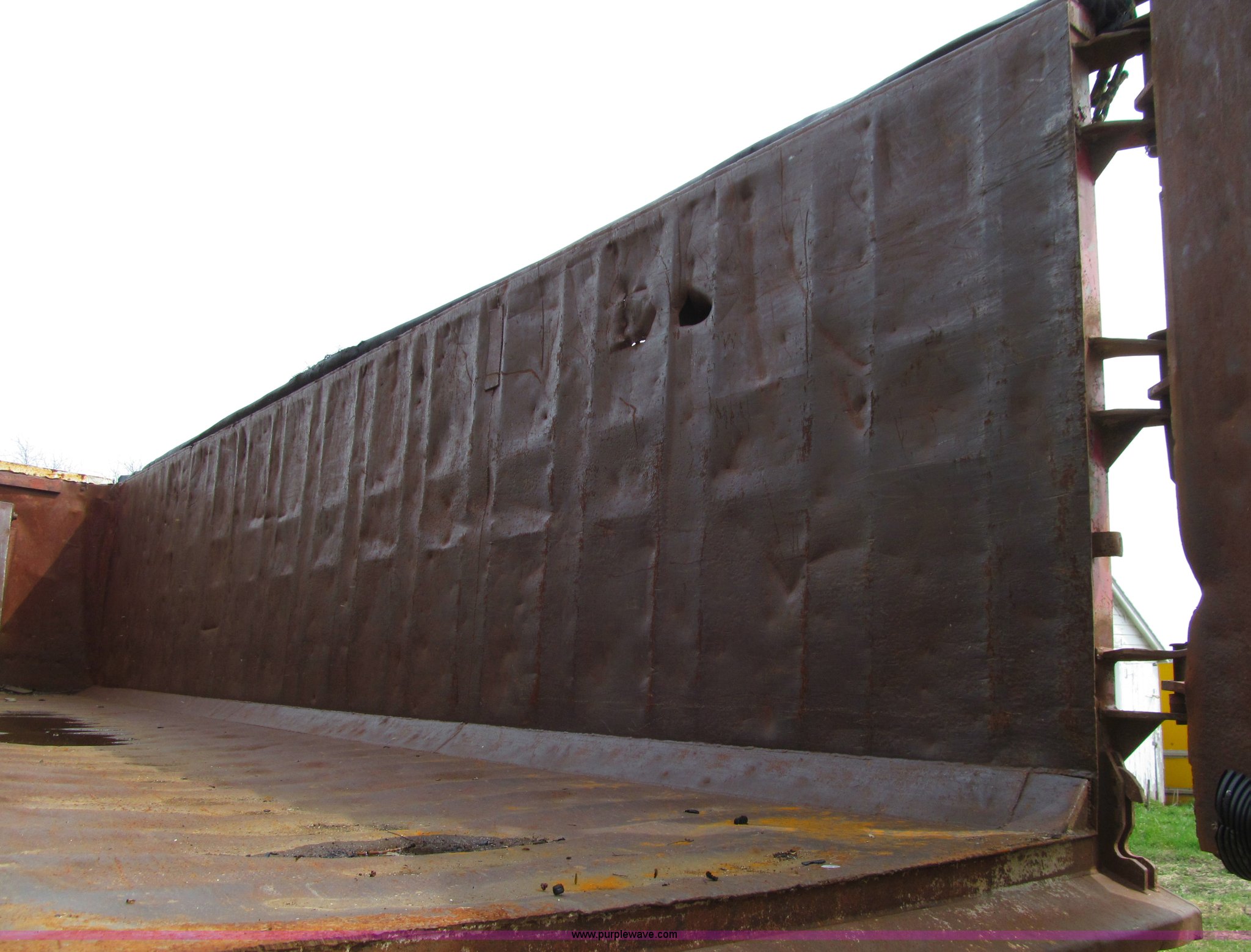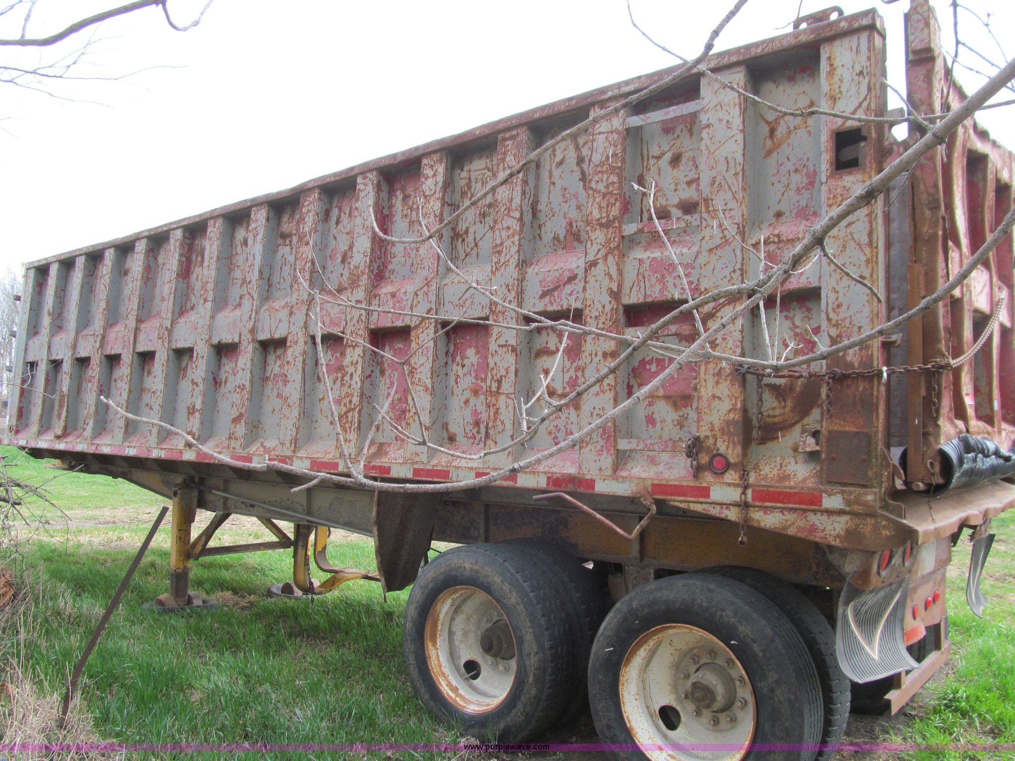 Purple Wave is selling a used End Dump Rock Trailer in Iowa. This item is a 1995 Borco end dump trailer with the following: Model BT1-B264, 30.5'L x 96"W, 68"H side walls, Four stage single ram hoist, Rollover tarp, Rear swing door, Hand actuated release, Steel construction, Spring suspension, Air brakes, Front dolly, 285/75R24.5 tires