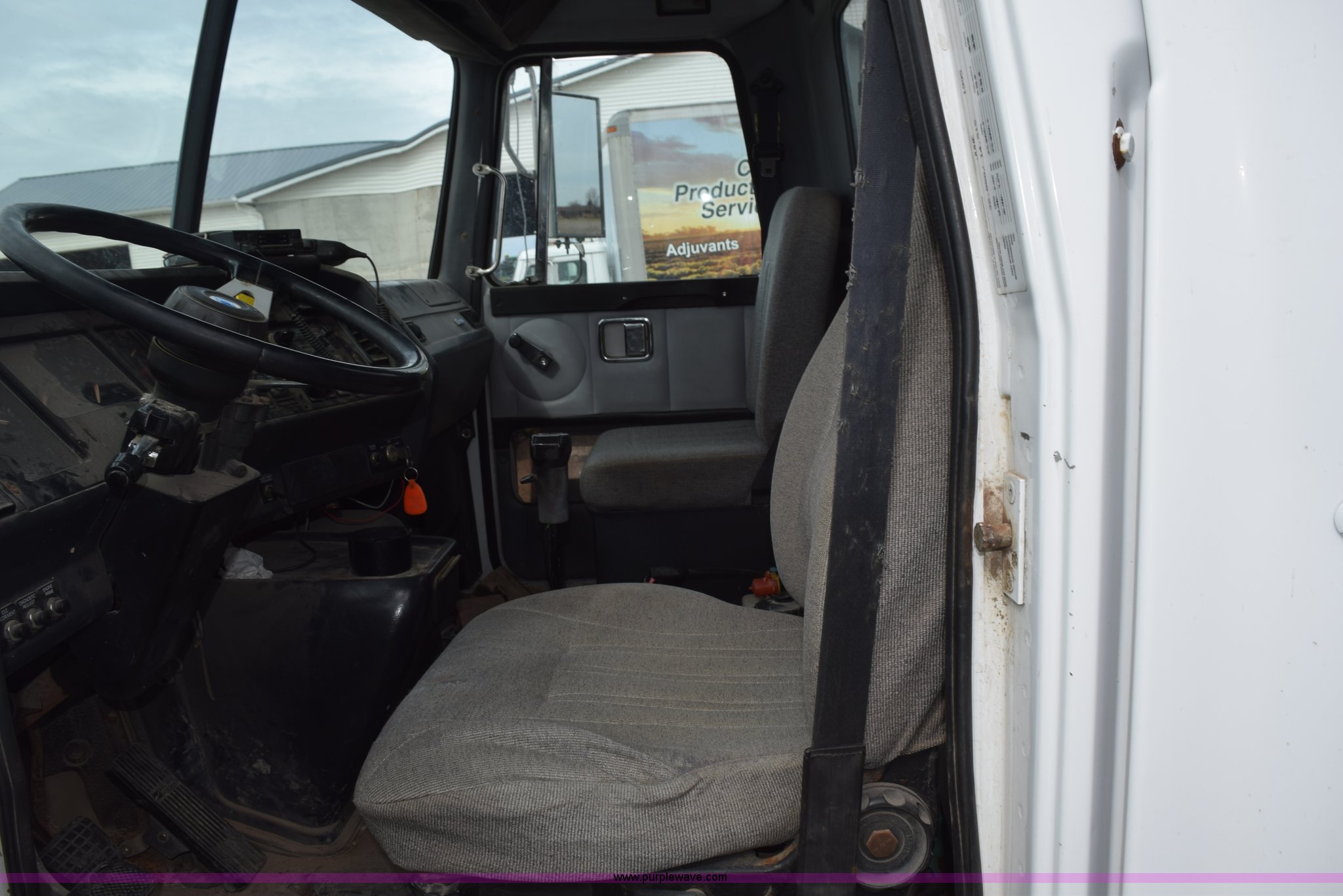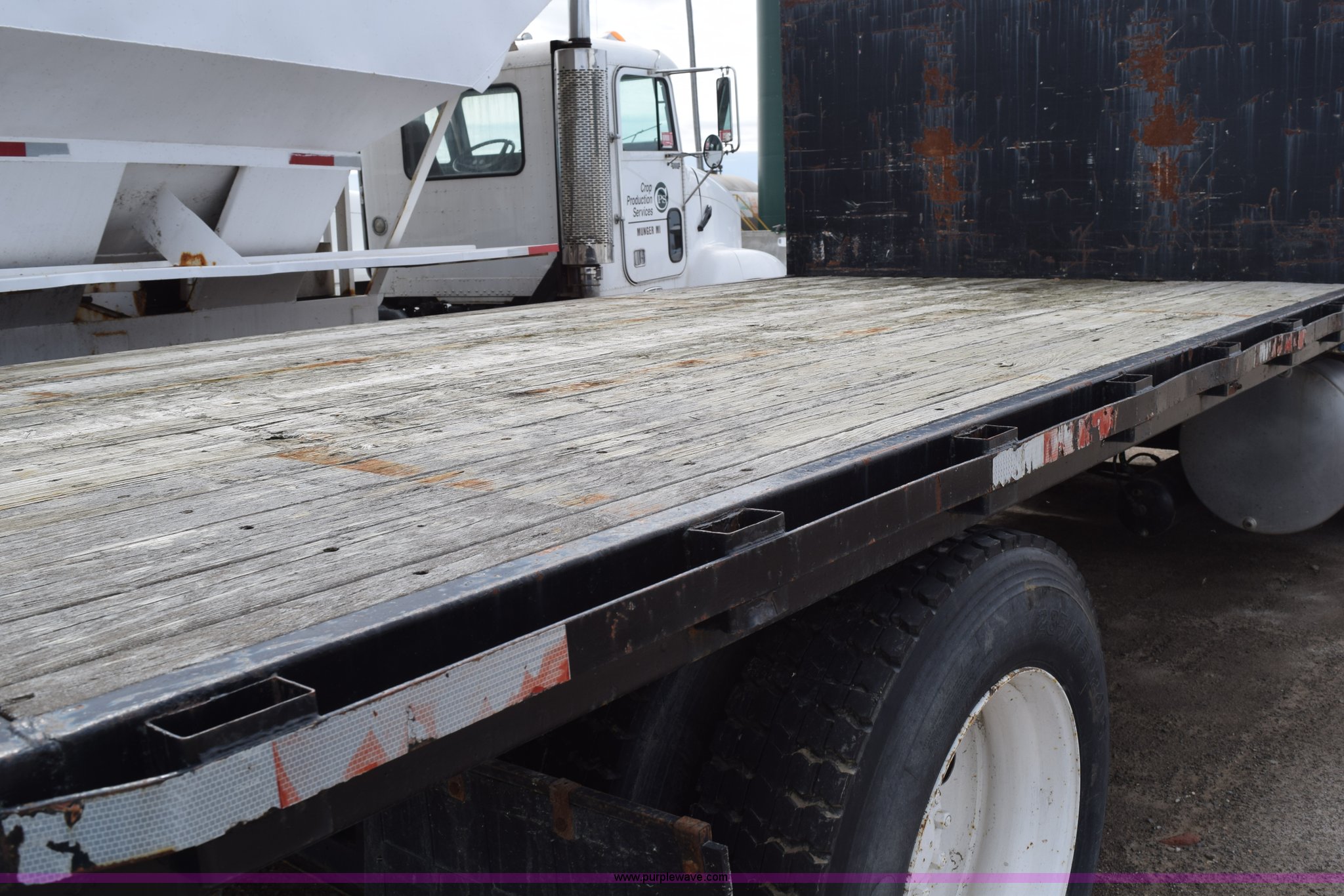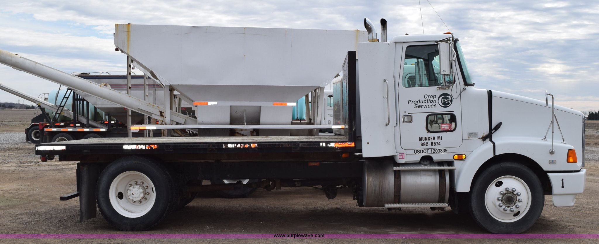 1995 Volvo WCA flatbed truck. 501,021 miles on odometer, Cummins M11 10.8L L6 diesel engine, Eaton Fuller manual transmission, AC and heat, Cruise, AM/FM/cassette, Heated mirrors, Air suspension seat, Air ride cab, 14'L x 8'W flatbed Metal frame with wood deck, Stake side pockets, Block heater, Dual 100 gallon fuel tanks, Pin hitch, Air suspension, Air brakes, 176" wheelbase, 285/75R24.5 tires, GVWR 32,000 lbs, FAWR 12,000 lbs, RAWR 20,000 lbs, Hood will not open, Unit# 40179. Title distribution may be delayed up to 30 days from verification of funds. 4V1VBAPE3SN723176. Crop Production Services. 107 S. Farley Road. Munger, MI 48747