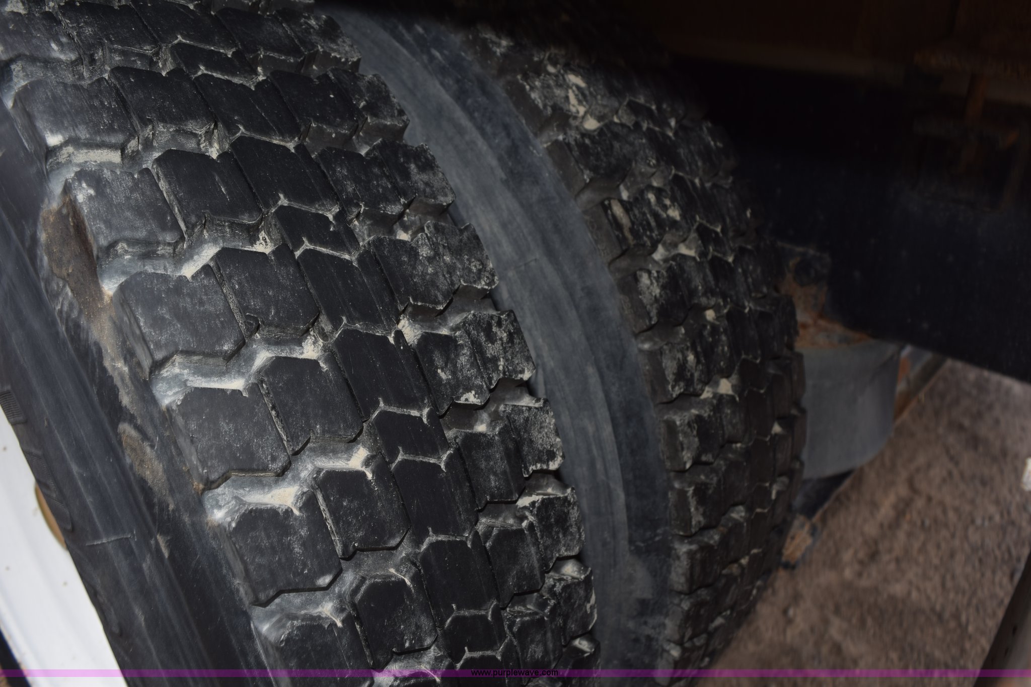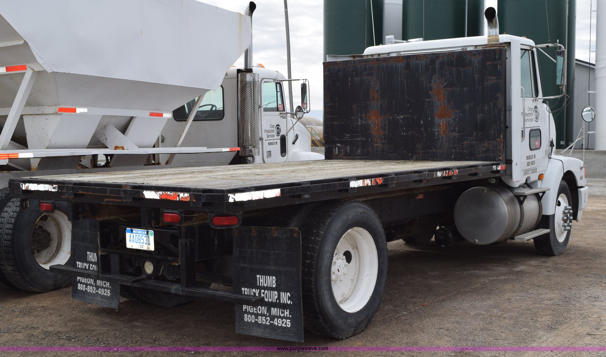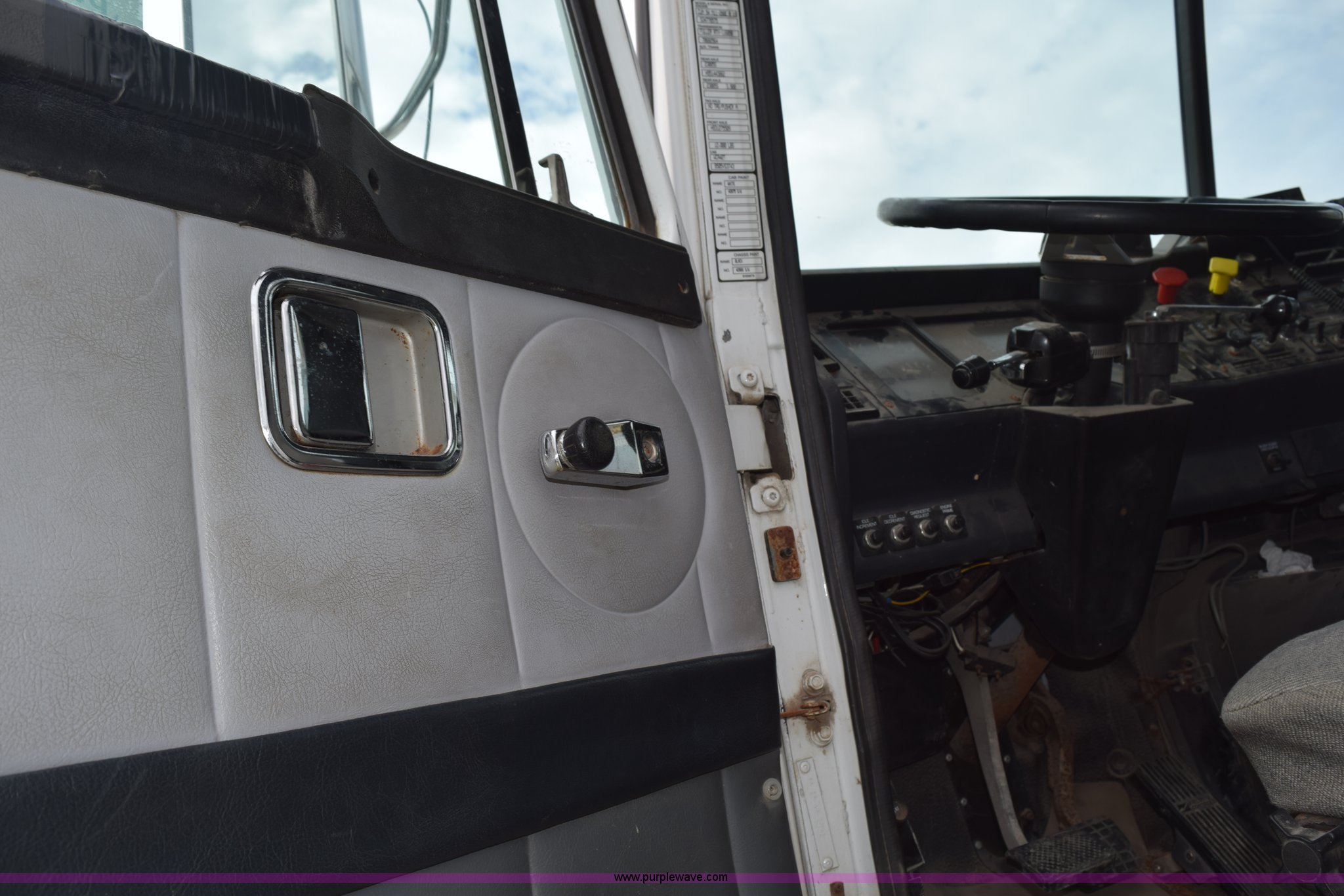 1995 Volvo WCA flatbed truck. 501,021 miles on odometer, Cummins M11 10.8L L6 diesel engine, Eaton Fuller manual transmission, AC and heat, Cruise, AM/FM/cassette, Heated mirrors, Air suspension seat, Air ride cab, 14'L x 8'W flatbed Metal frame with wood deck, Stake side pockets, Block heater, Dual 100 gallon fuel tanks, Pin hitch, Air suspension, Air brakes, 176" wheelbase, 285/75R24.5 tires, GVWR 32,000 lbs, FAWR 12,000 lbs, RAWR 20,000 lbs, Hood will not open, Unit# 40179. Title distribution may be delayed up to 30 days from verification of funds. 4V1VBAPE3SN723176. Crop Production Services. 107 S. Farley Road. Munger, MI 48747