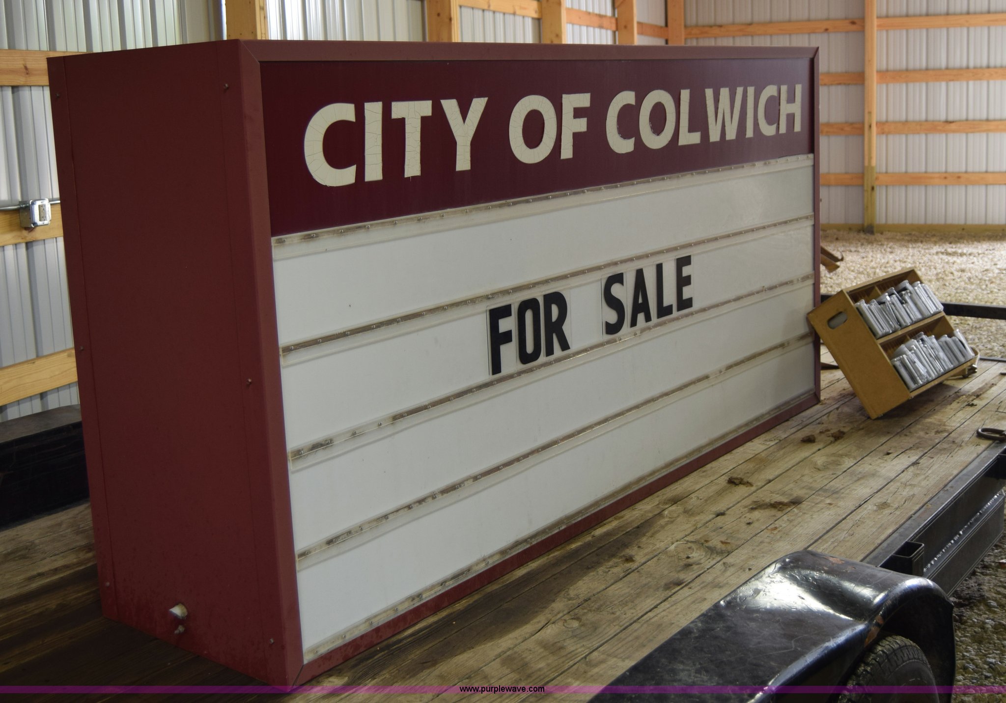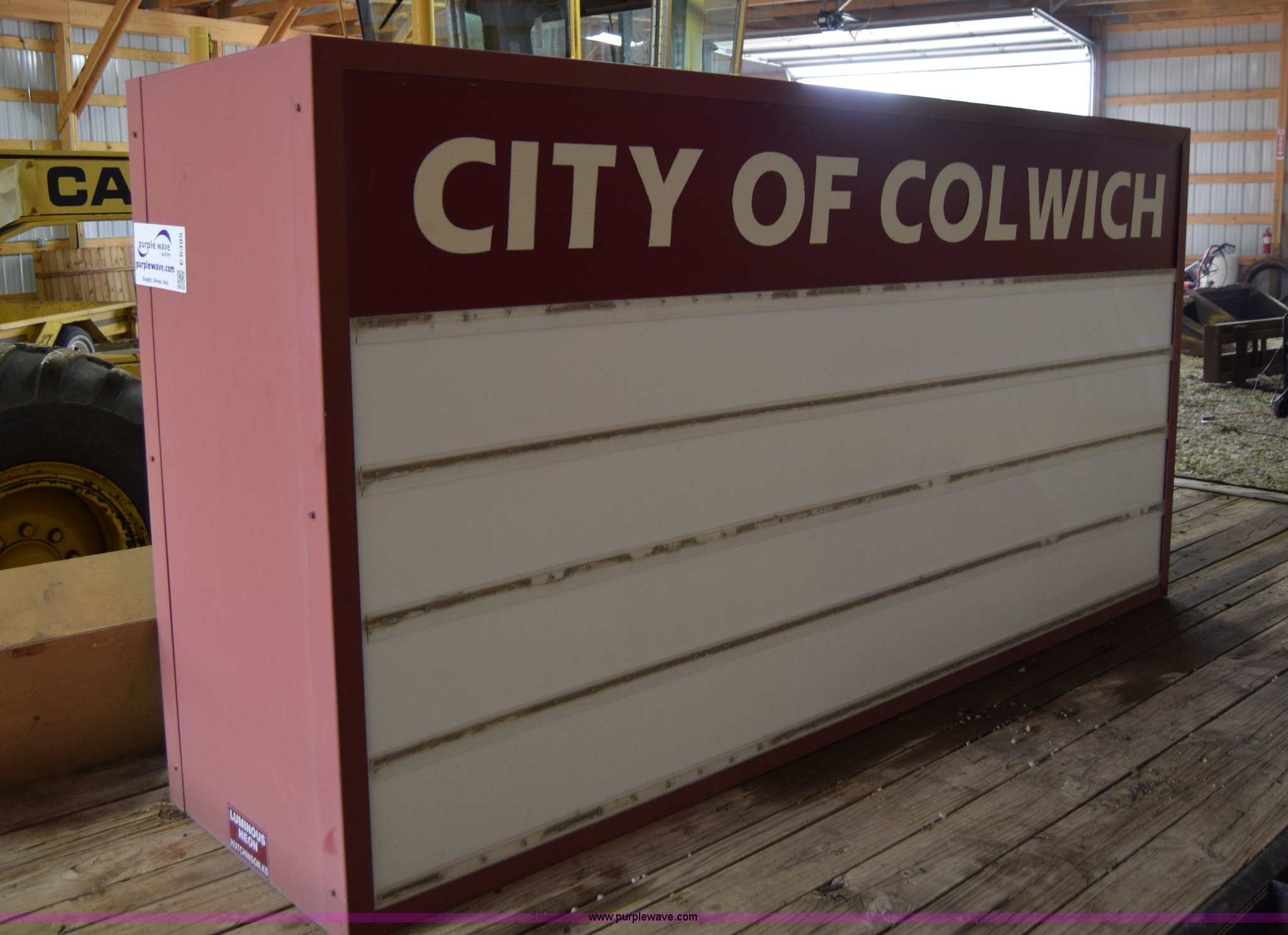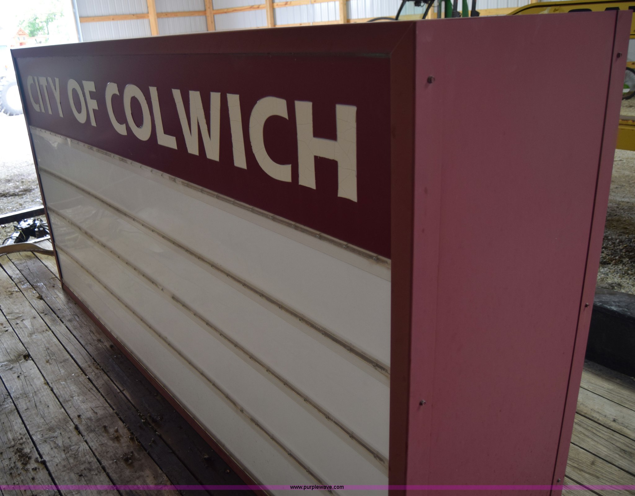 Light up sign. 8'L x 2'W x 4'H, (2) sets of letters included. City of Colwich. 115 N 3rd. Colwich, KS 67030