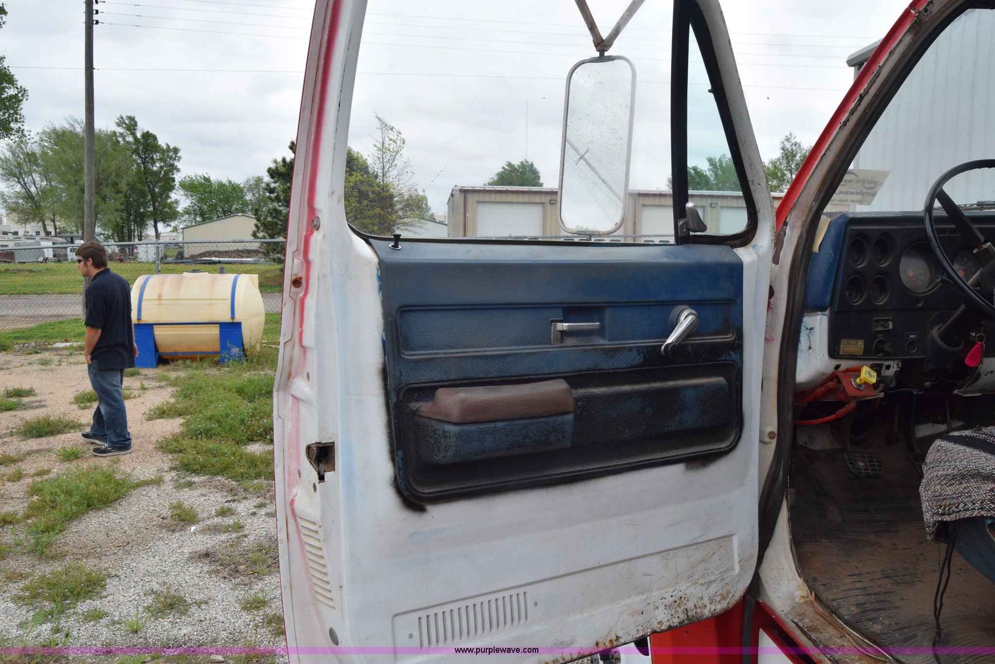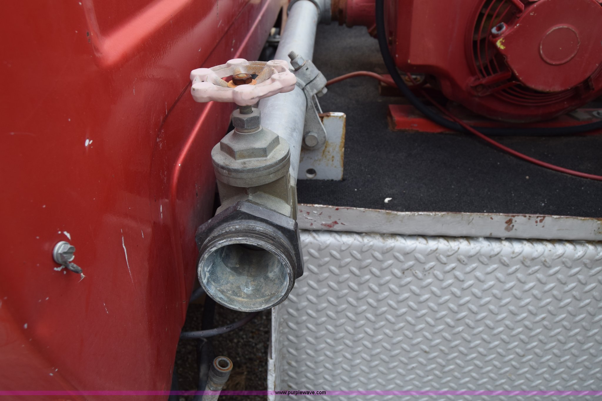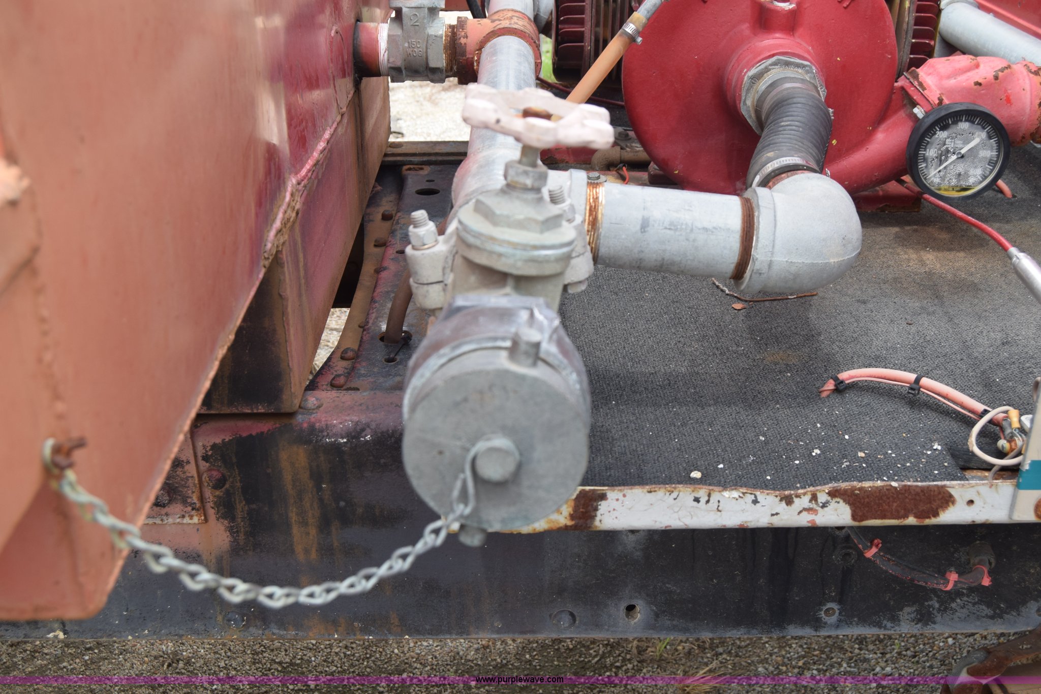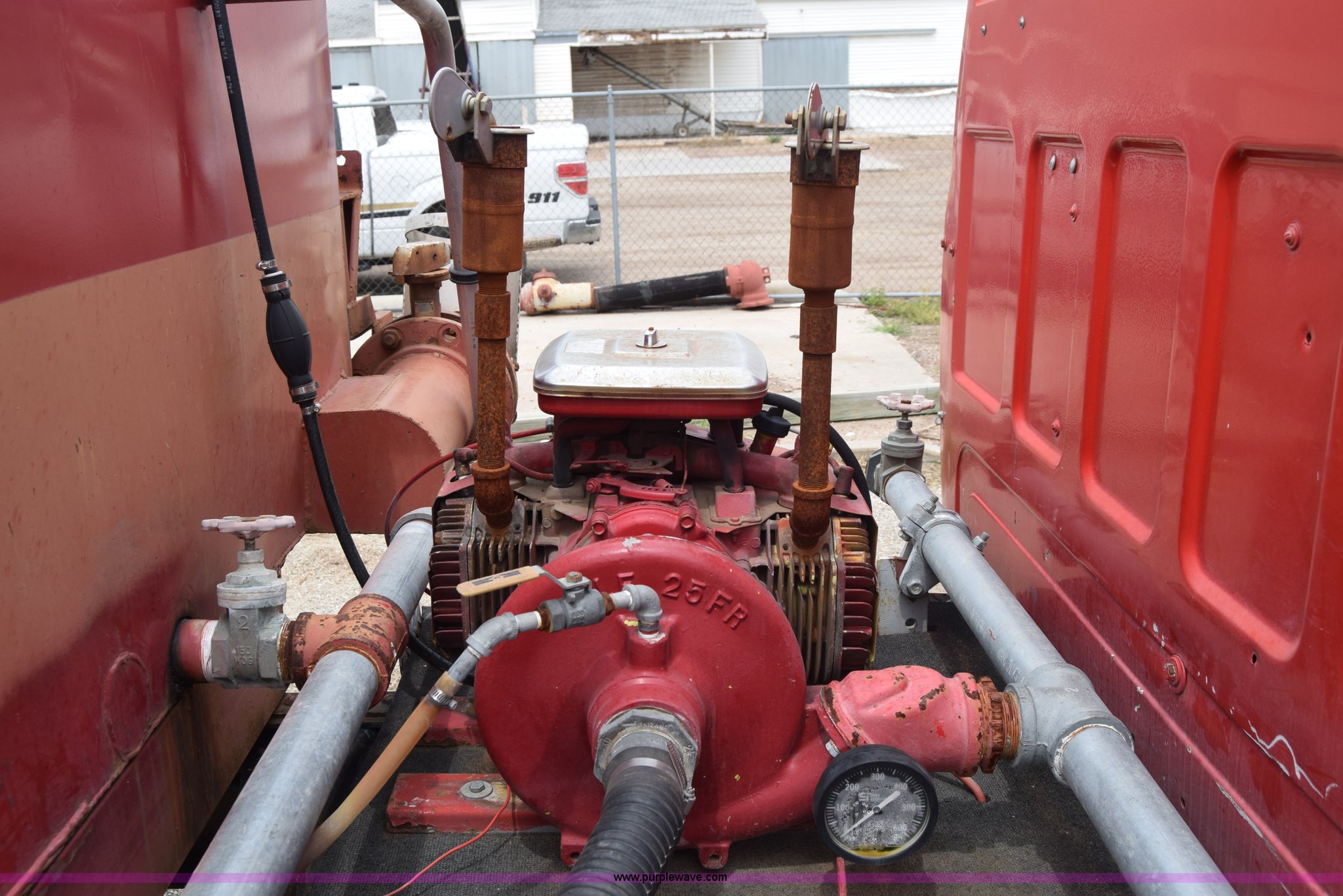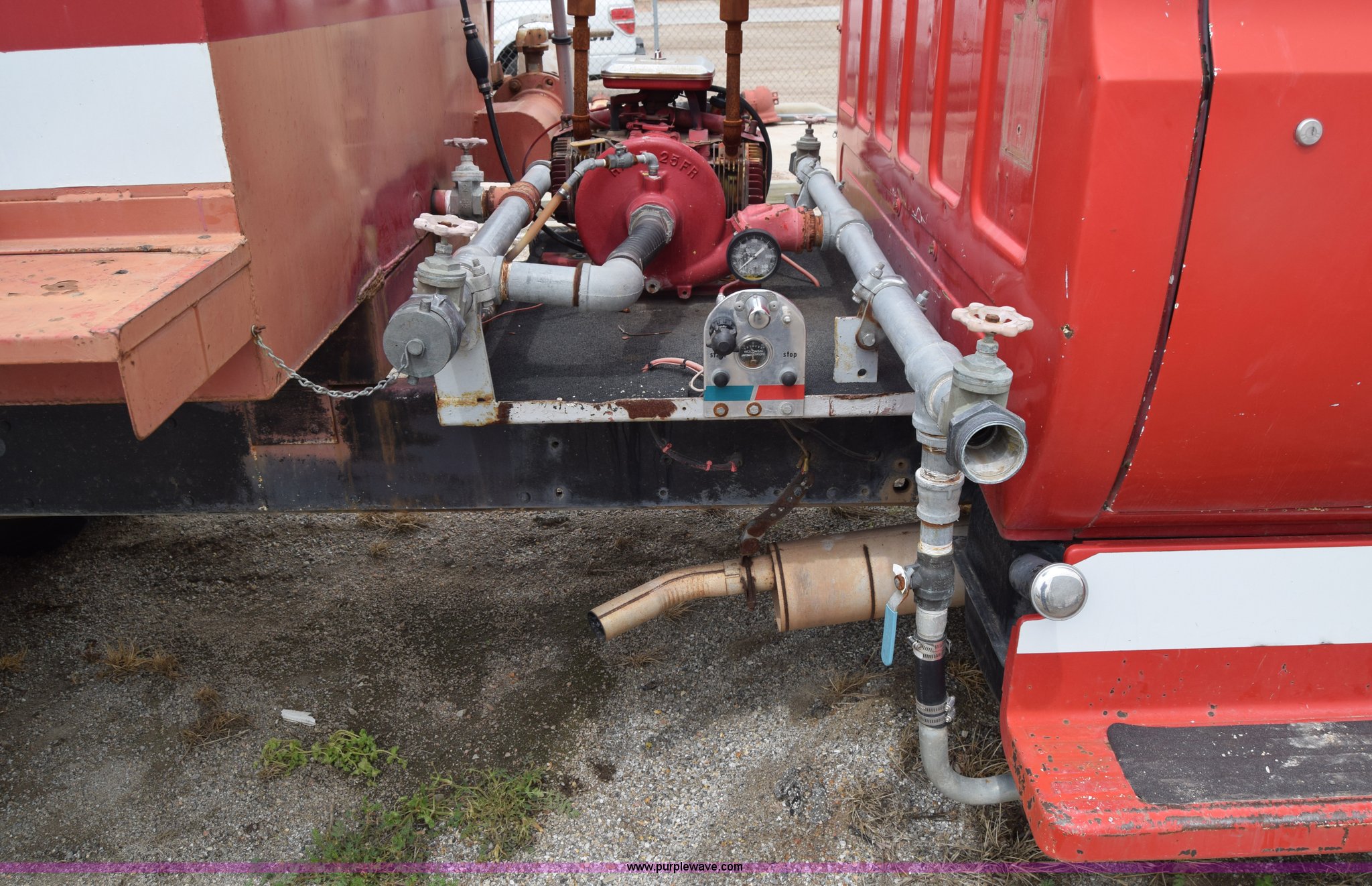 Purple Wave is selling a used Tank Truck or Water Truck in Kansas. This item is a 1975 Chevrolet C65 water truck with the following: 87,958 miles on odometer, 6.5L V8 OHV 16V gas engine, Five speed manual transmission, Heat, Manual windows and locks, Cloth interior, 10'L x 6'W water tank, Front operator's station, Hale pump, Model 25FR-B42, Wisconsin gas engine, Non-operational, Fire hoses, 9.00-20 tires, 10R22.5 tires