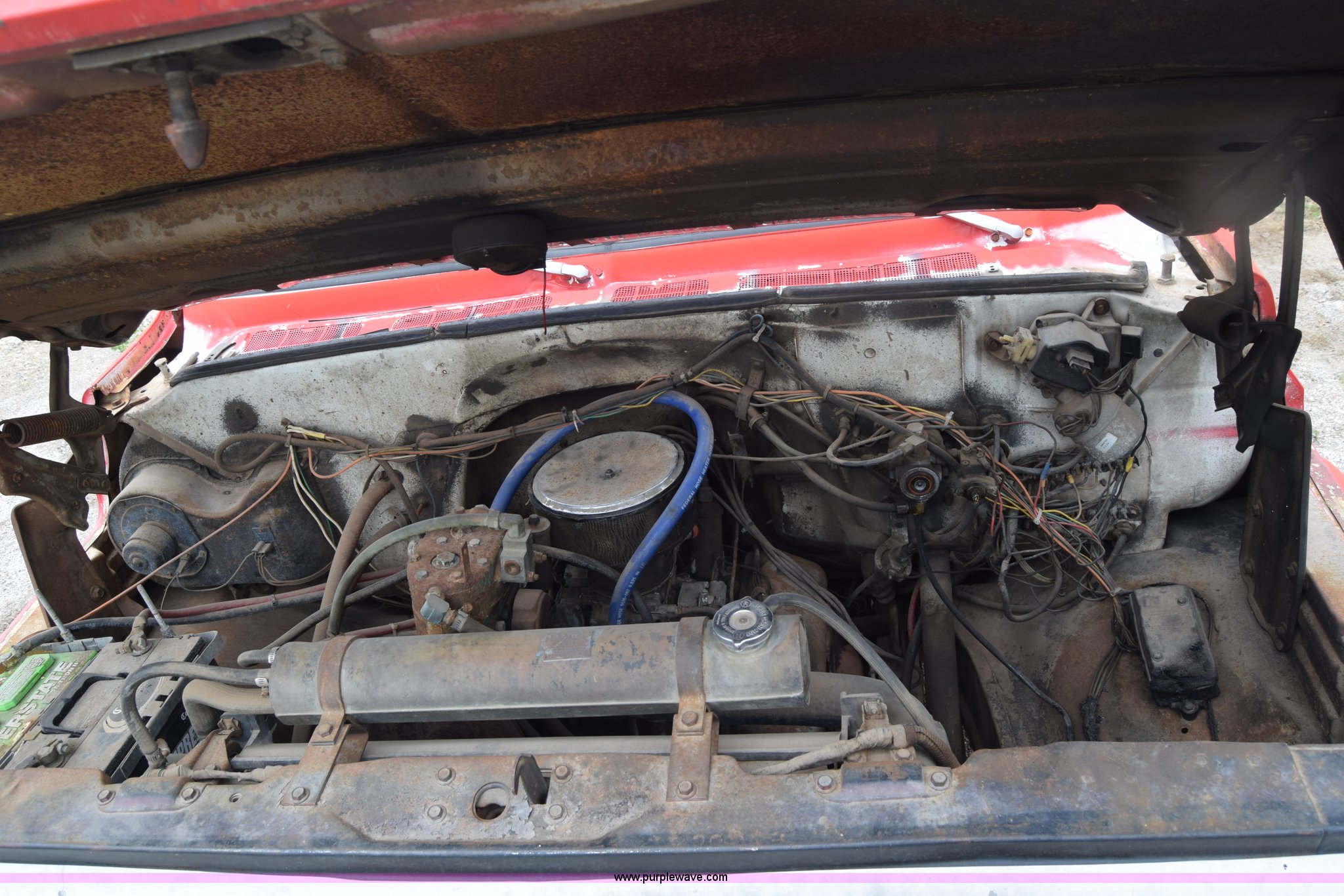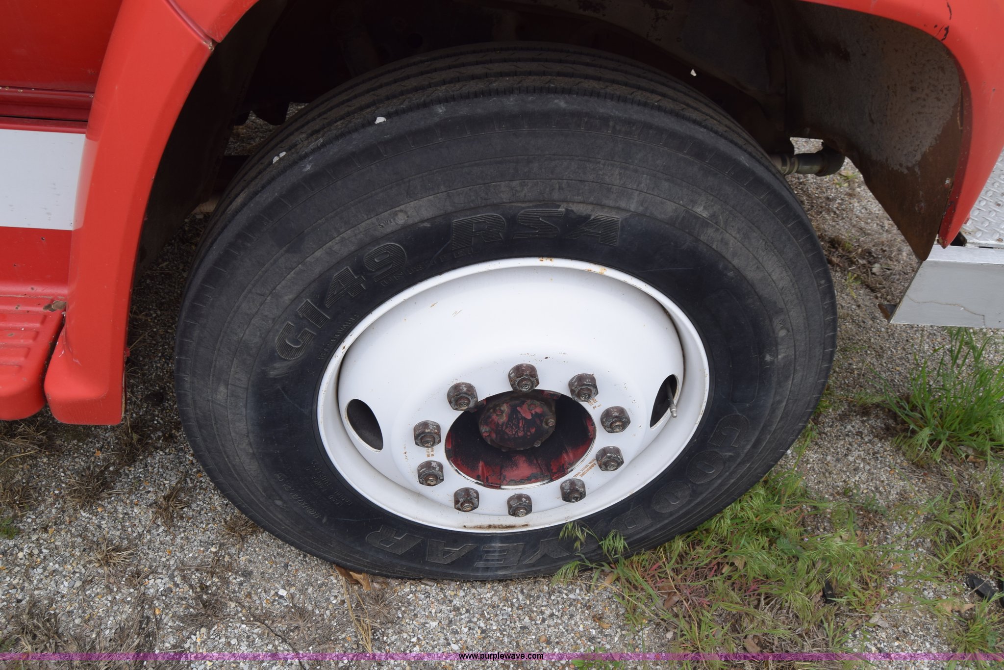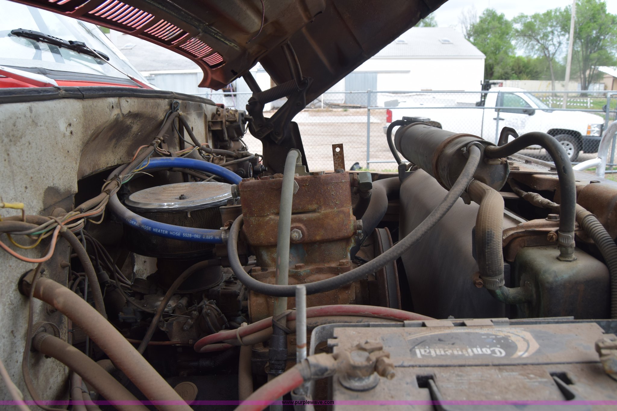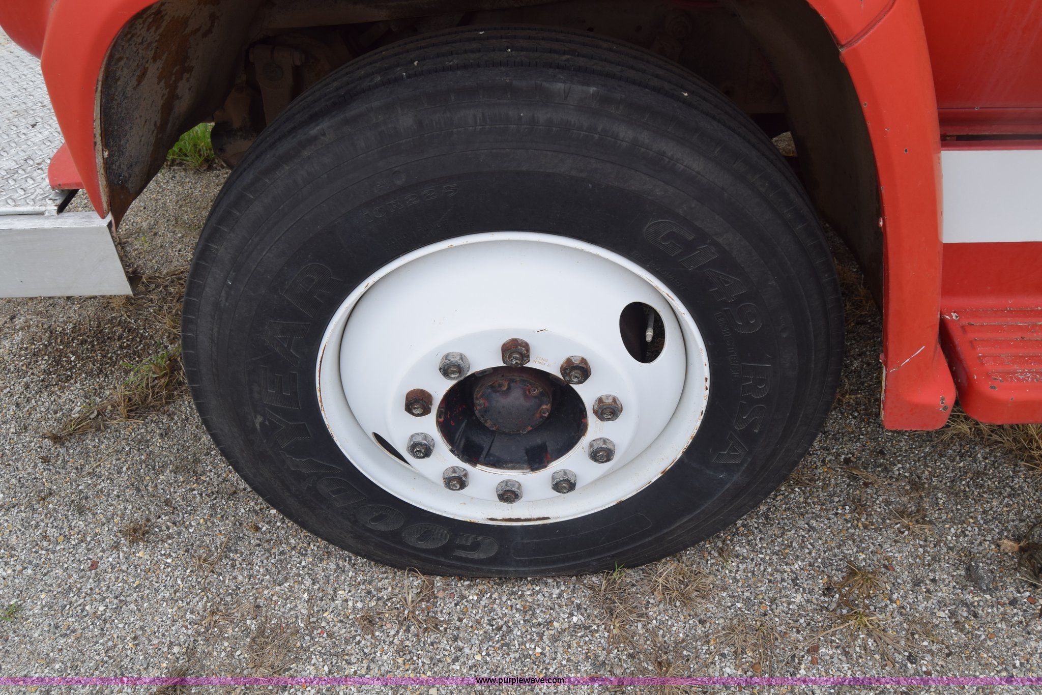 Purple Wave is selling a used Tank Truck or Water Truck in Kansas. This item is a 1975 Chevrolet C65 water truck with the following: 87,958 miles on odometer, 6.5L V8 OHV 16V gas engine, Five speed manual transmission, Heat, Manual windows and locks, Cloth interior, 10'L x 6'W water tank, Front operator's station, Hale pump, Model 25FR-B42, Wisconsin gas engine, Non-operational, Fire hoses, 9.00-20 tires, 10R22.5 tires