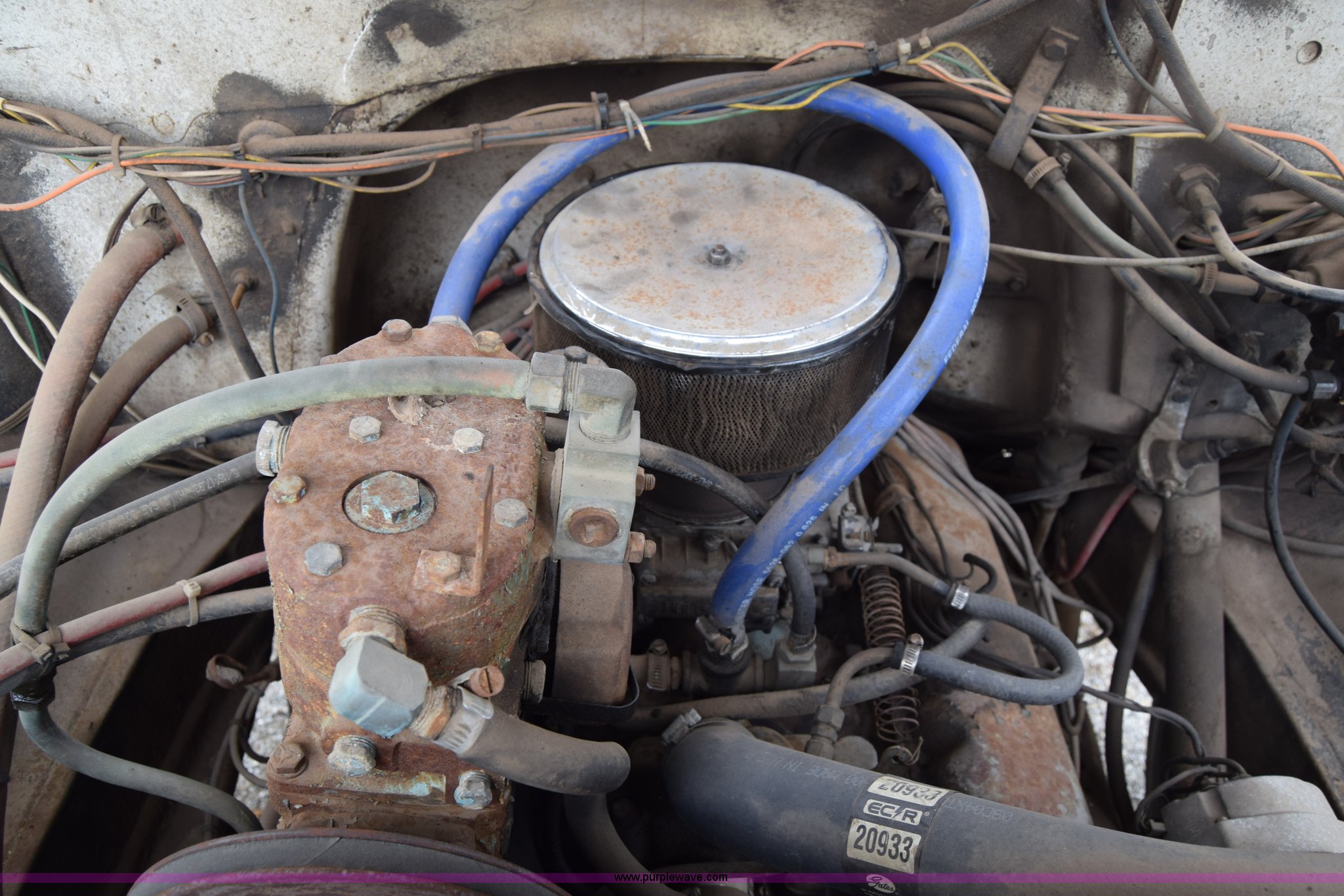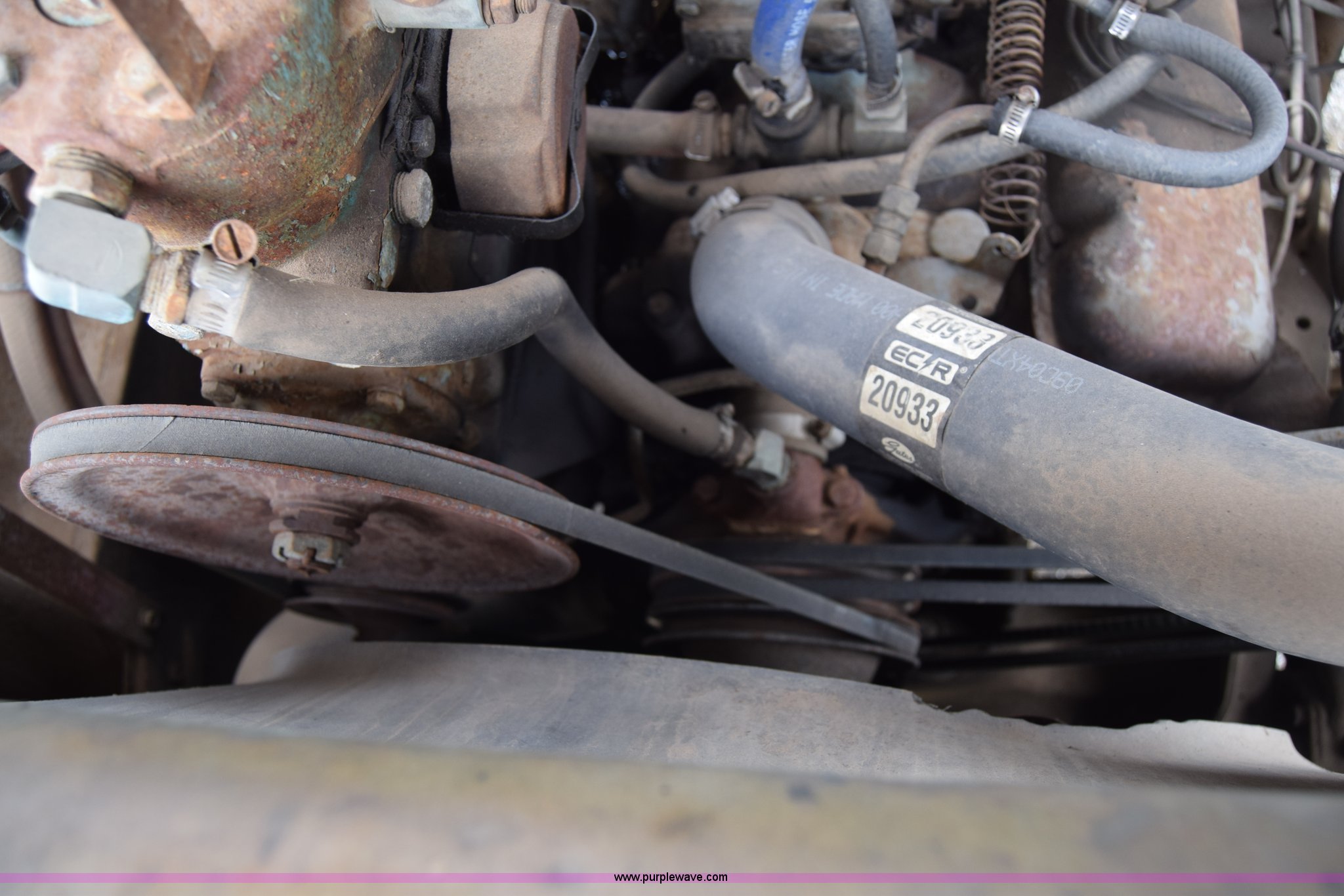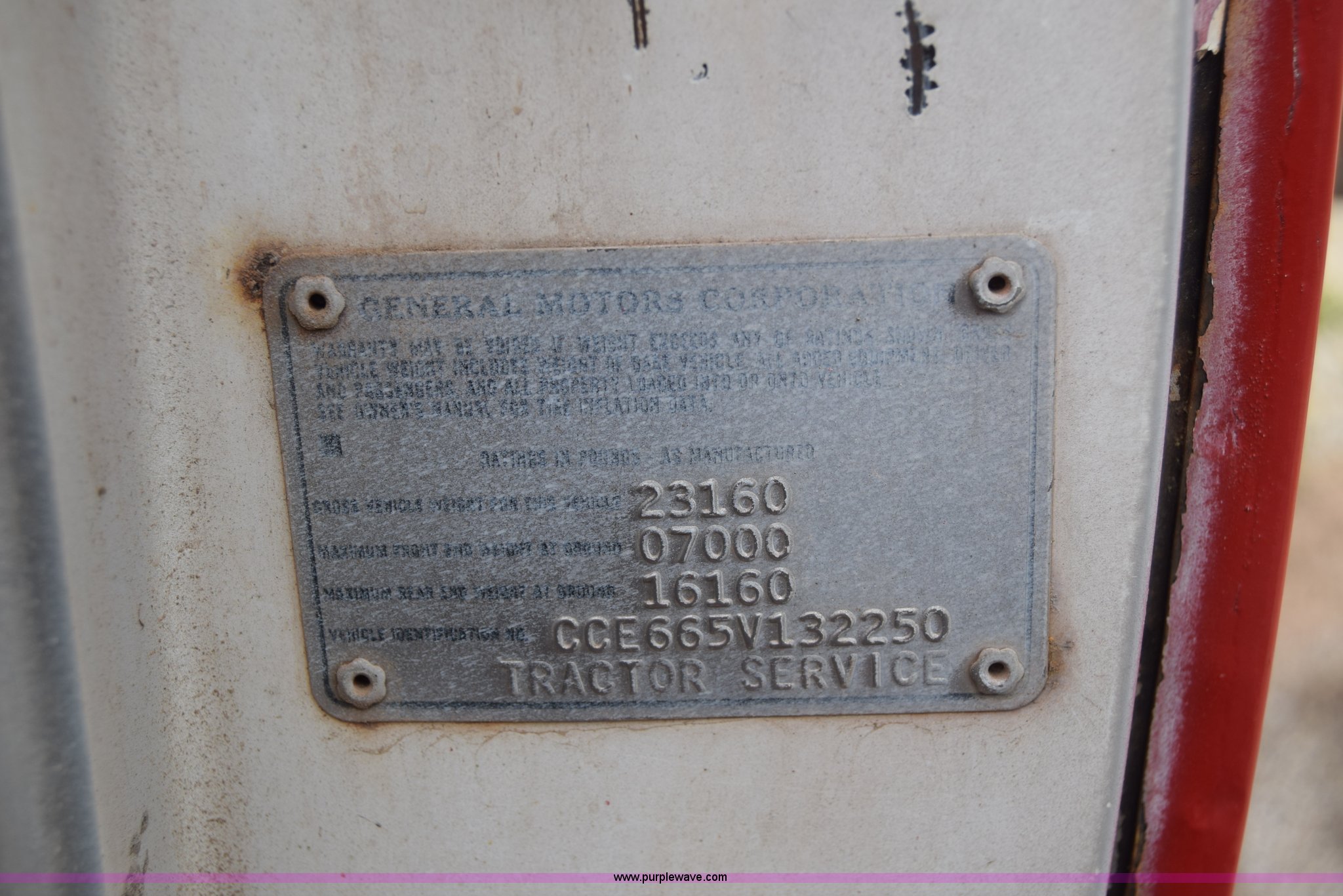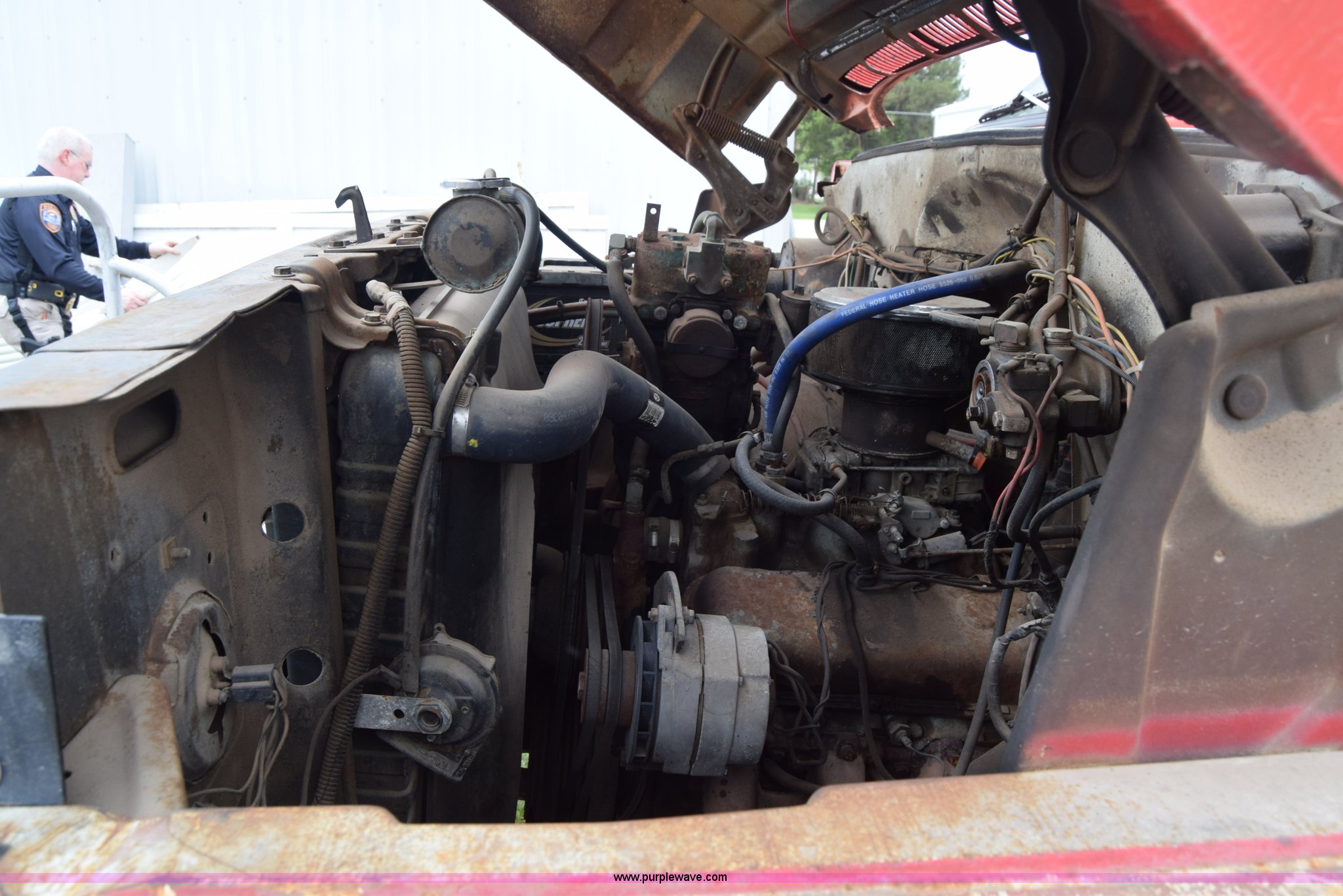 1975 Chevrolet C65 water truck. 87,958 miles on odometer, 6.5L V8 OHV 16V gas engine, Five speed manual transmission, Heat, Manual windows and locks, Cloth interior, 10'L x 6'W water tank, Front operator's station, Hale pump Model 25FR-B42, Wisconsin gas engine, Non-operational, Fire hoses, 9.00-20 tires, 10R22.5 tires. CCE665V132250. City of Colwich. 115 N 3rd. Colwich, KS 67030