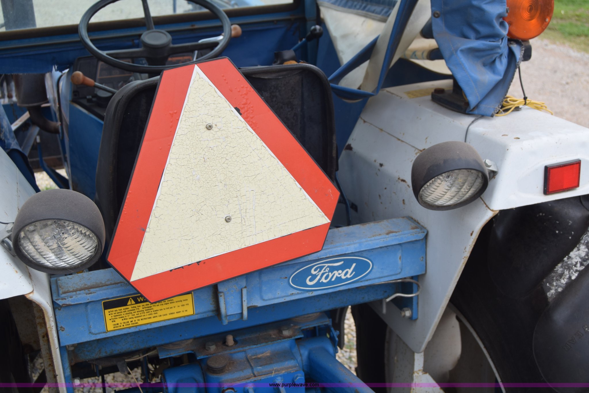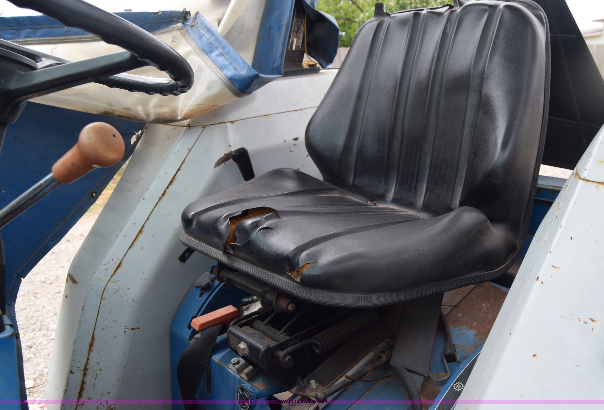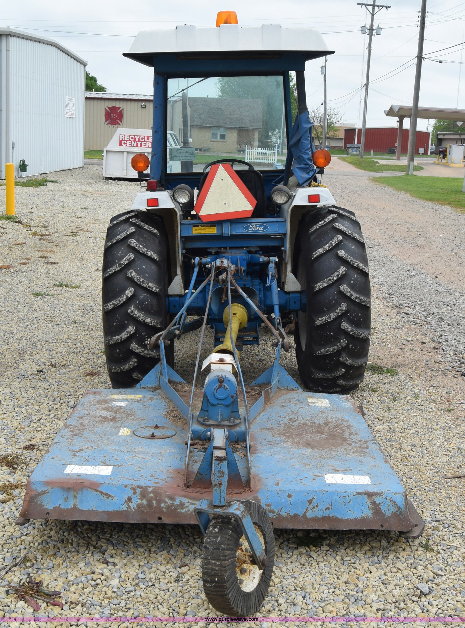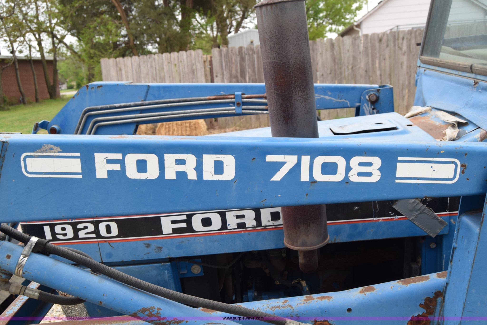 Purple Wave is selling a used Tractor in Kansas. This item is a Ford 1920 tractor with the following: 3,095 hours on meter, Shibaura N844 four cylinder diesel engine, 32 HP, Manual transmission, 12F-4R gears, Canopy, Spring suspension seat, Ford 7108 loader, 60"W bucket, Two-lever control, Ford 951A mower, 5'W cut, 540 PTO, Three point blade, 6'W x 14"H, Three point, Draw bar, 540 PTO, 9.8 gallon fuel tank, 69.9" wheelbase, 8-16 front tires, 14.9-24 rear tires, 3,069 lbs. base operating weight, Dents, Scratches, Seat torn