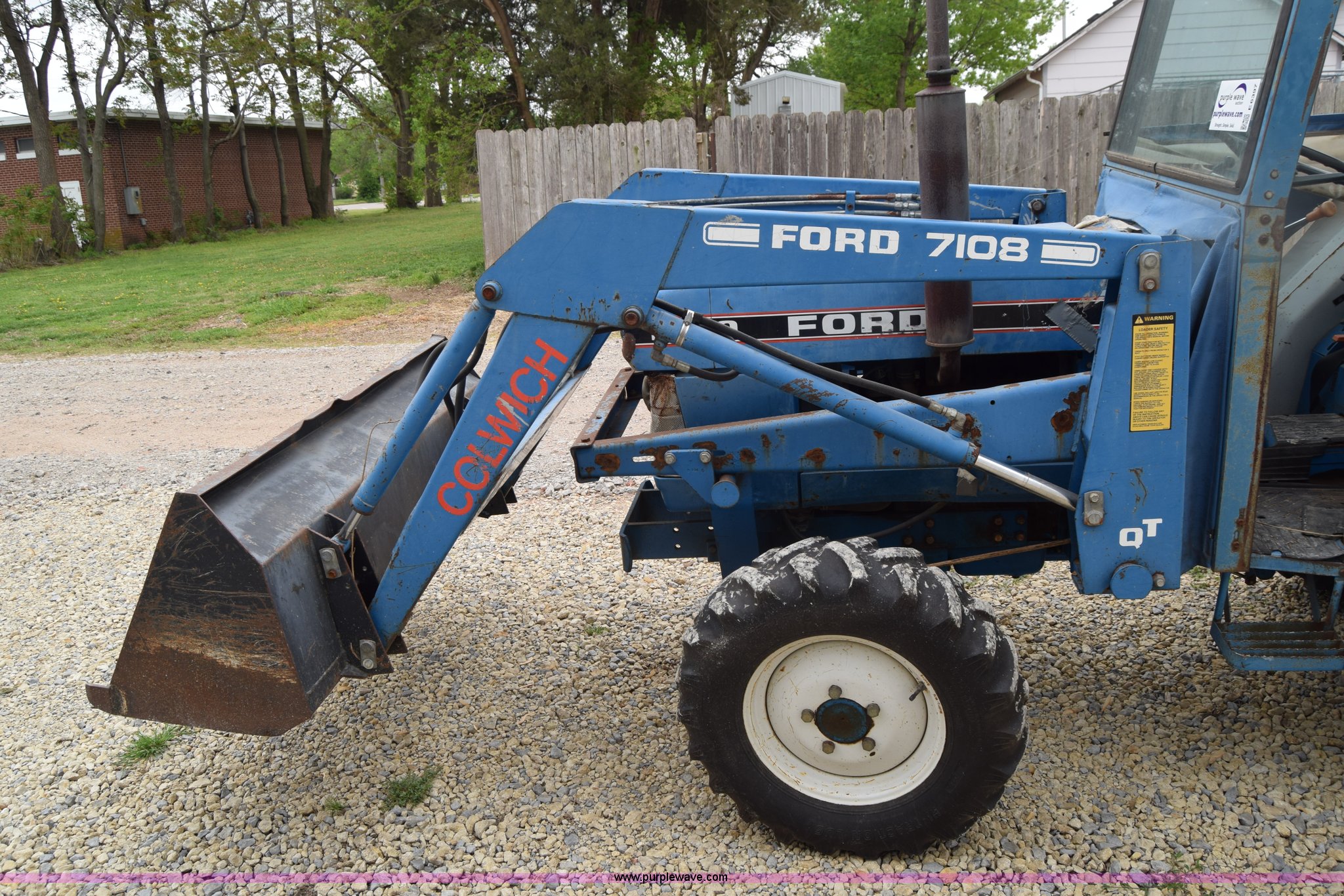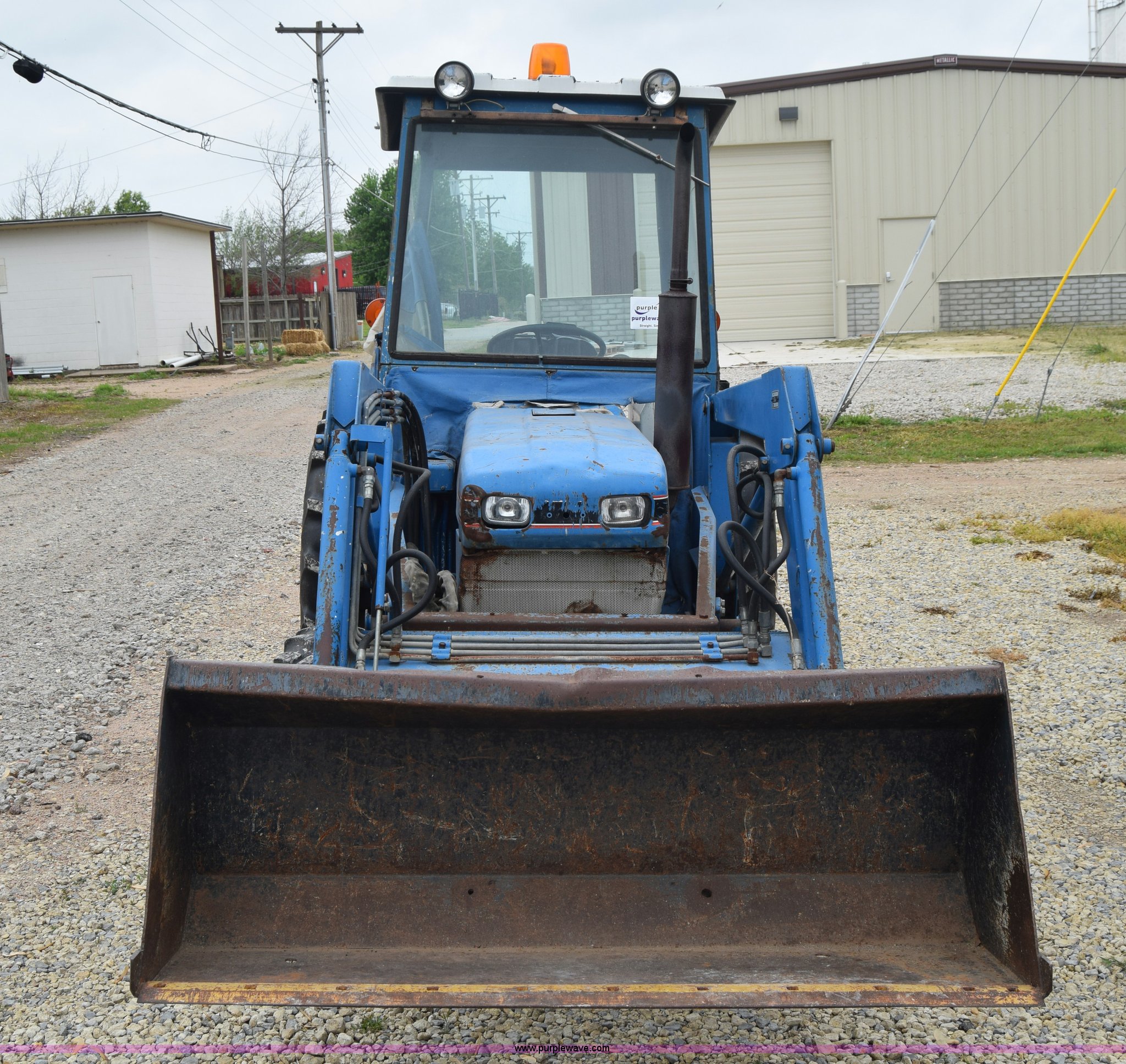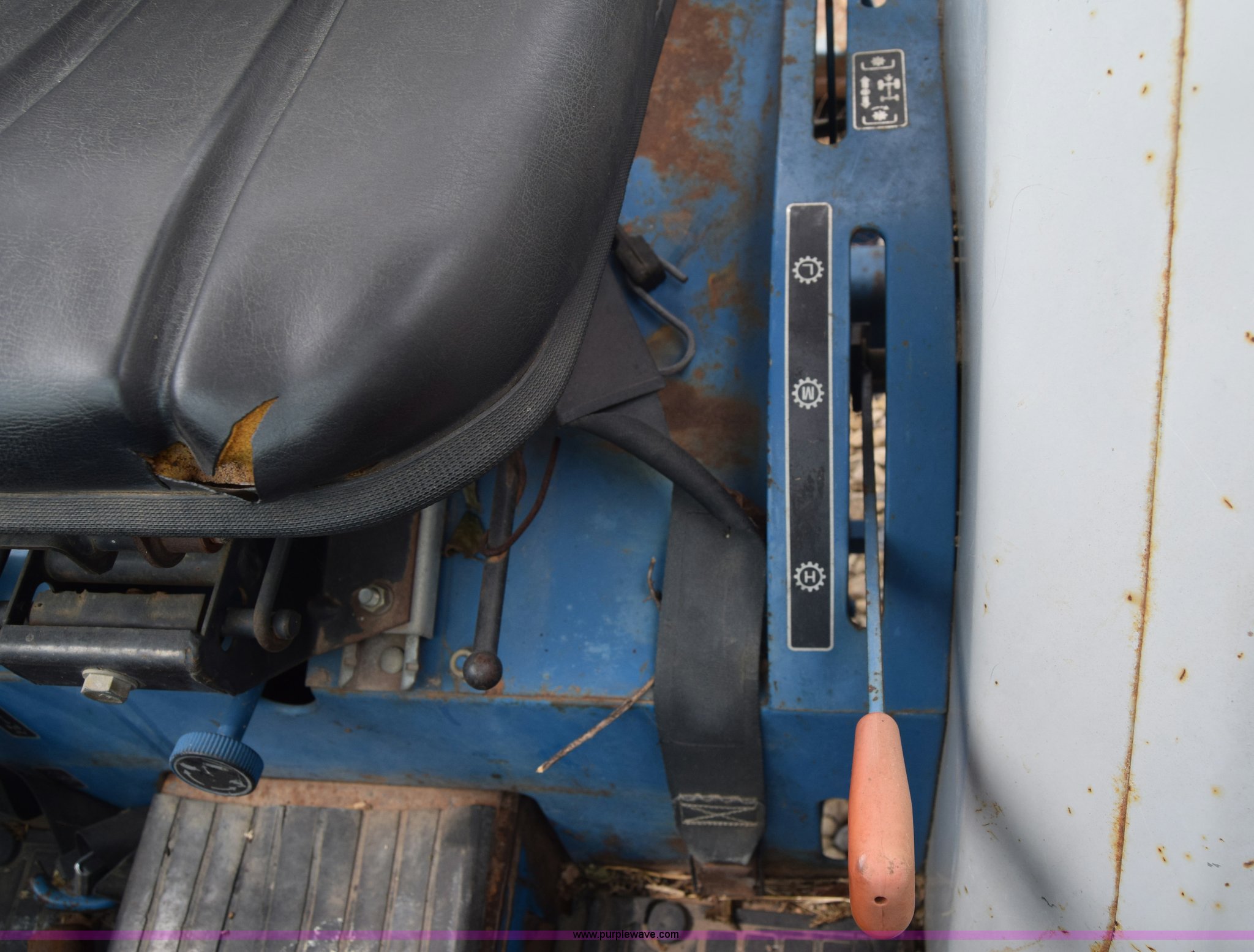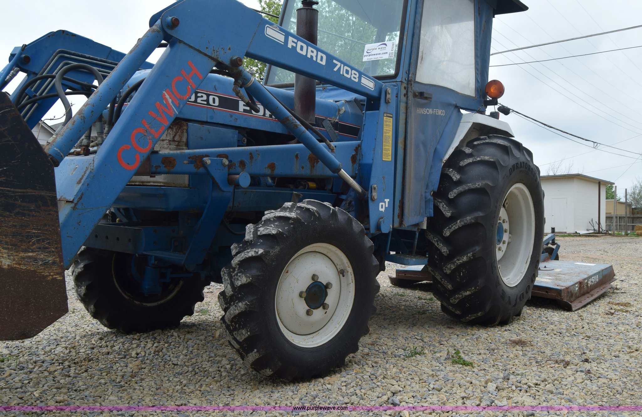 Purple Wave is selling a used Tractor in Kansas. This item is a Ford 1920 tractor with the following: 3,095 hours on meter, Shibaura N844 four cylinder diesel engine, 32 HP, Manual transmission, 12F-4R gears, Canopy, Spring suspension seat, Ford 7108 loader, 60"W bucket, Two-lever control, Ford 951A mower, 5'W cut, 540 PTO, Three point blade, 6'W x 14"H, Three point, Draw bar, 540 PTO, 9.8 gallon fuel tank, 69.9" wheelbase, 8-16 front tires, 14.9-24 rear tires, 3,069 lbs. base operating weight, Dents, Scratches, Seat torn