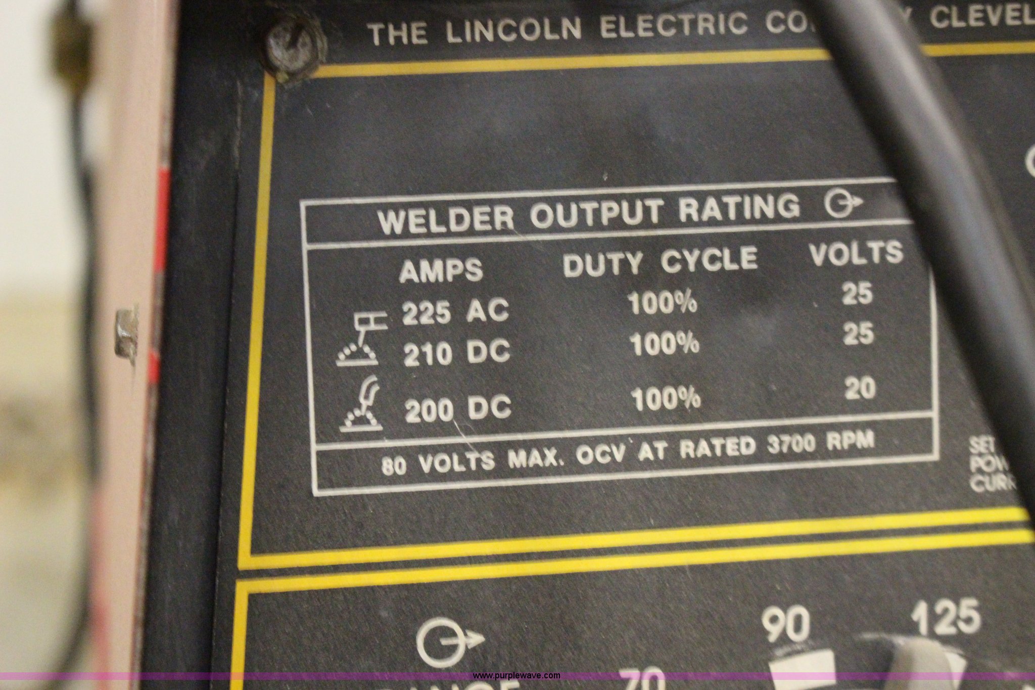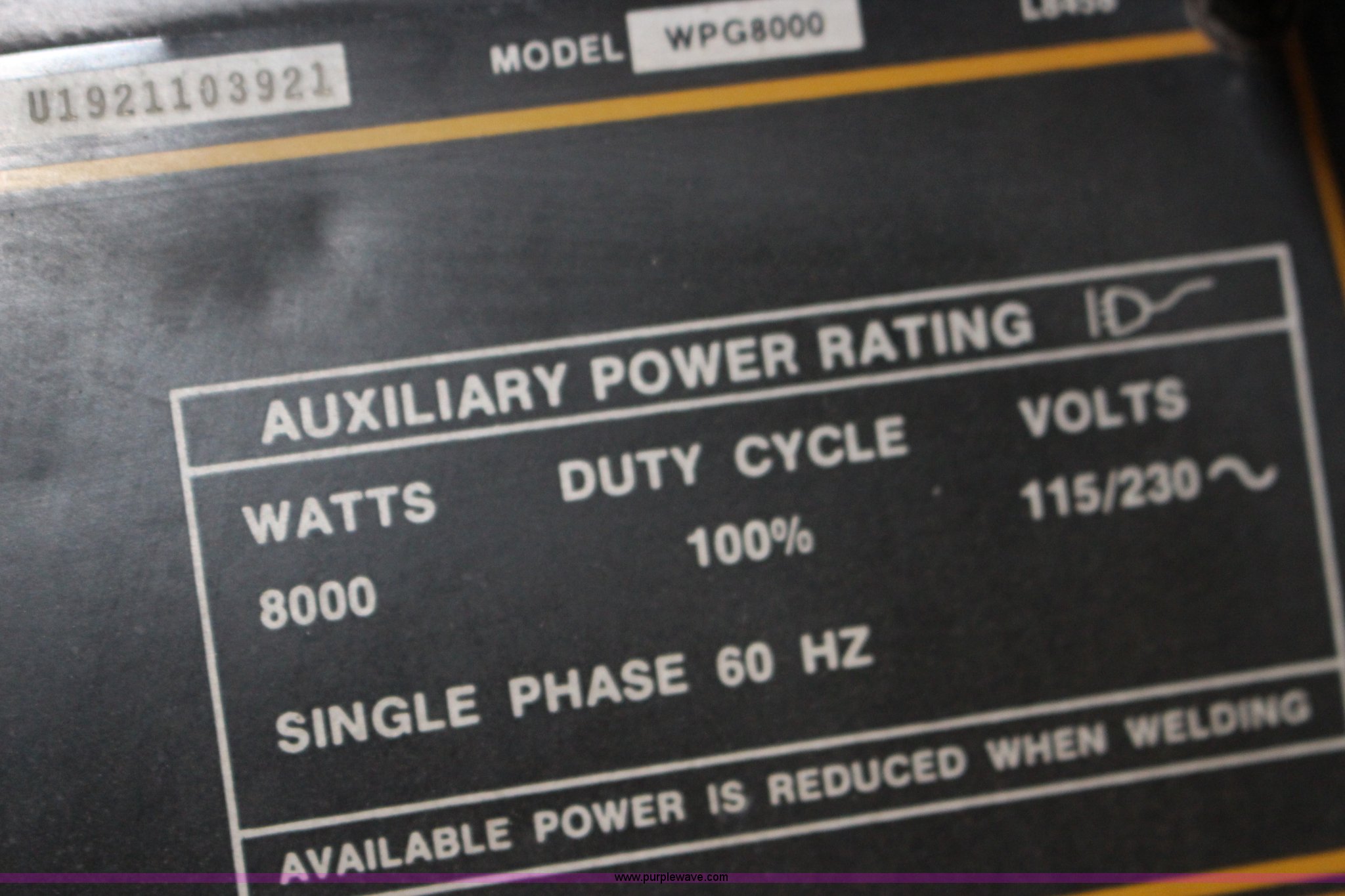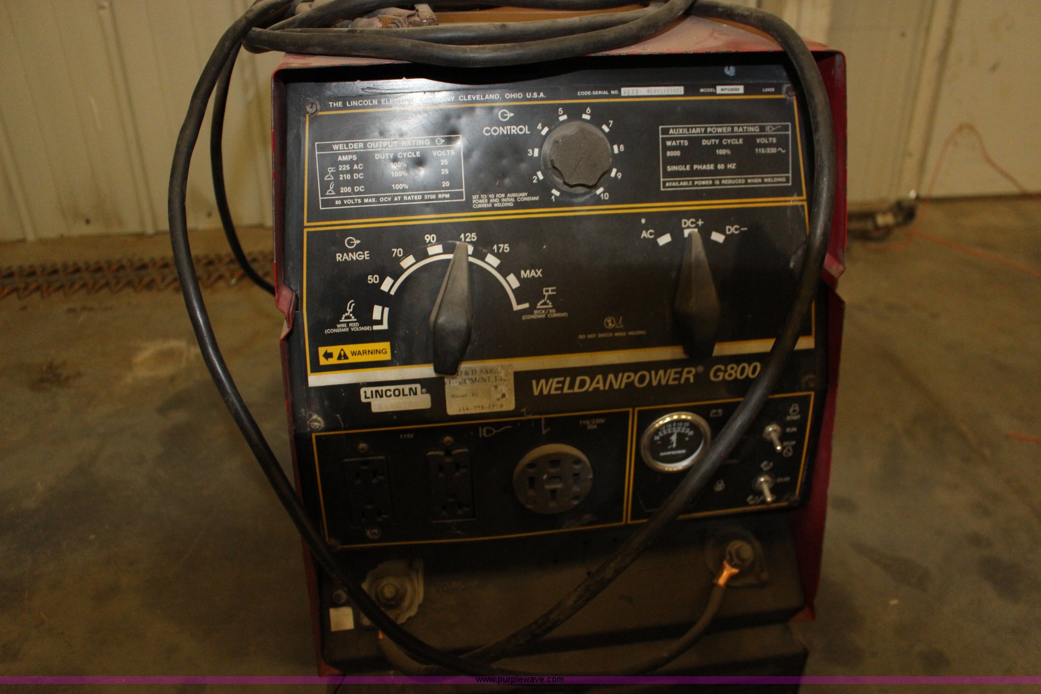 Purple Wave is selling a used Welder (Manual) in Kansas. This item is a Lincoln G8000 welder/generator with the following: Vanguard V-twin gas engine, 16 HP, 100 percent duty cycle, 8,000 watts, (4) 110V outlets, Four wire 220V outlet, Leads included