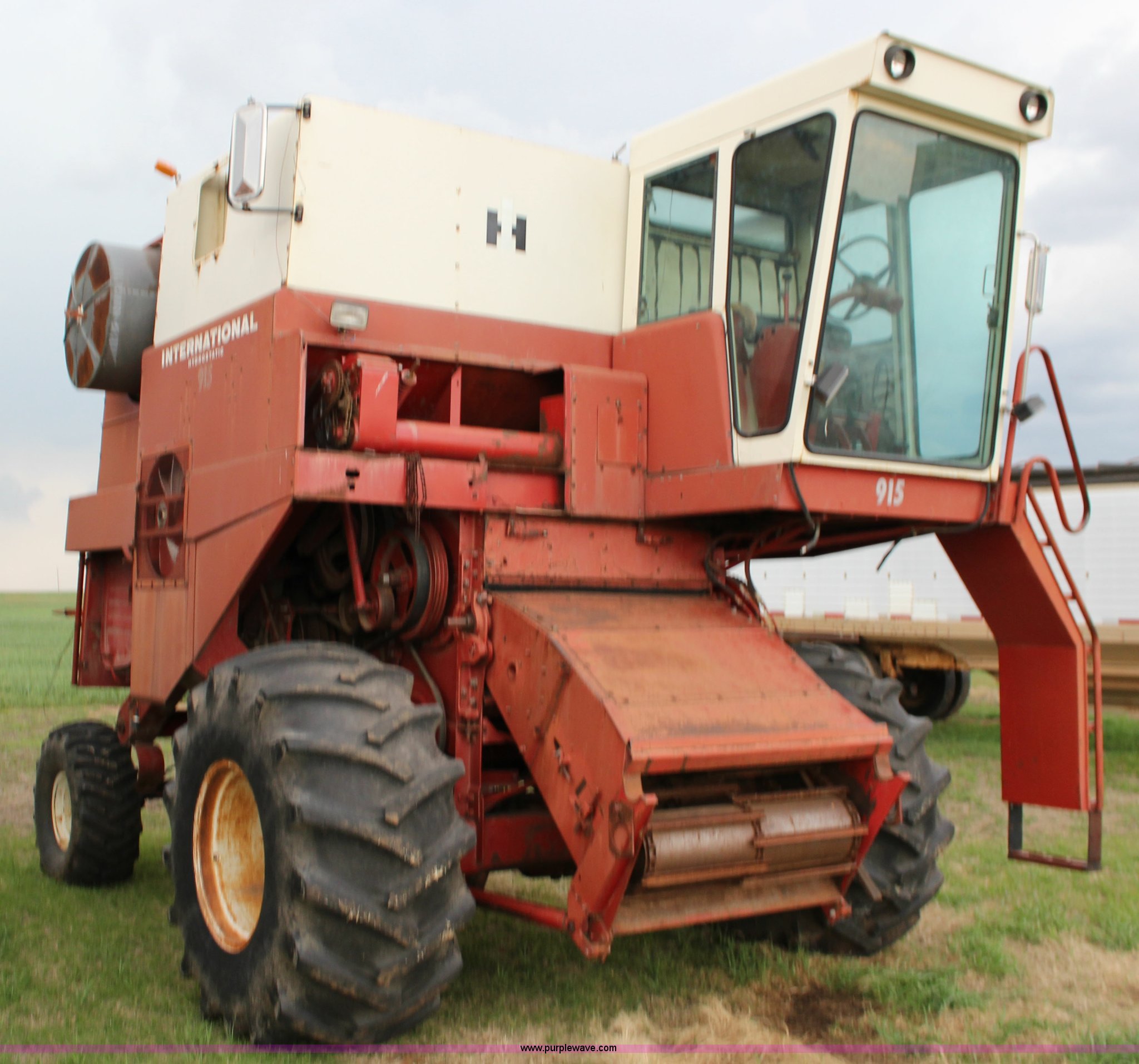 Purple Wave is selling a used Combine in Kansas. This item is a International 915 Turbo combine with the following: Unknown hours on meter, International Turbo six cylinder diesel engine, Hydrostatic transmission, AC and heat, Non-operational AC, AM/FM, Work lights, 28L-26 front tires, 13.50-16.1 rear tires
